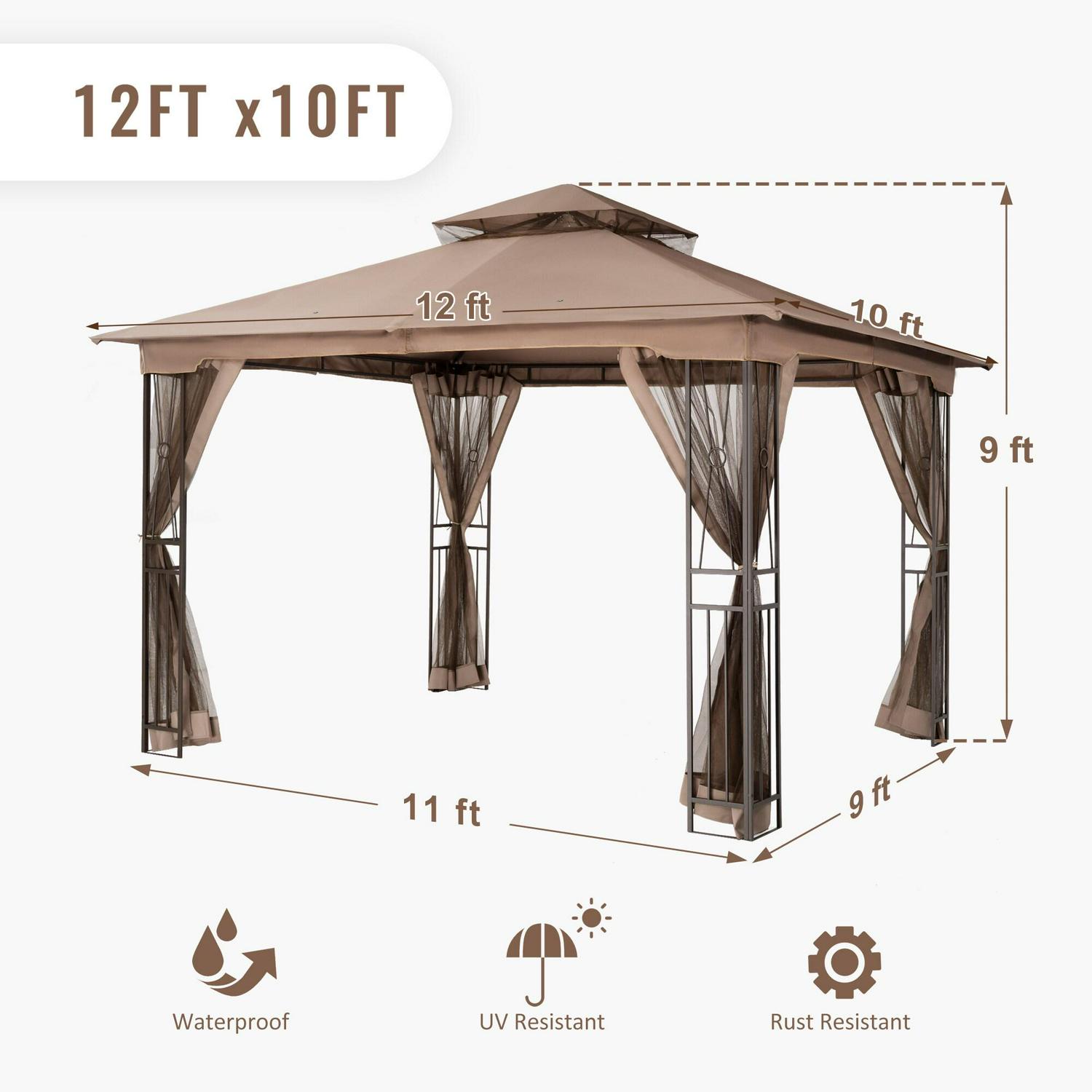 12-ft x 10-ft Khaki Metal Rectangle Gazebo
