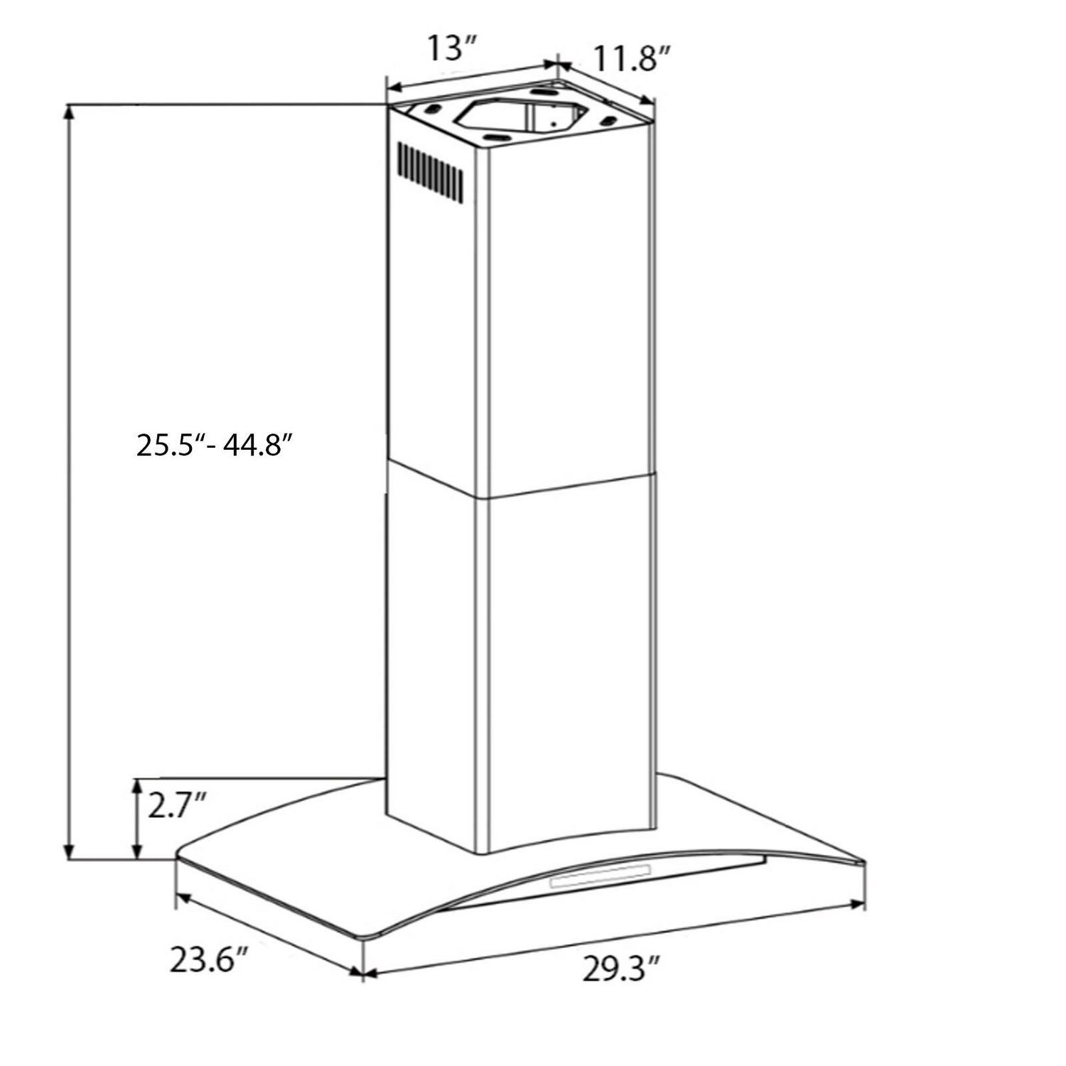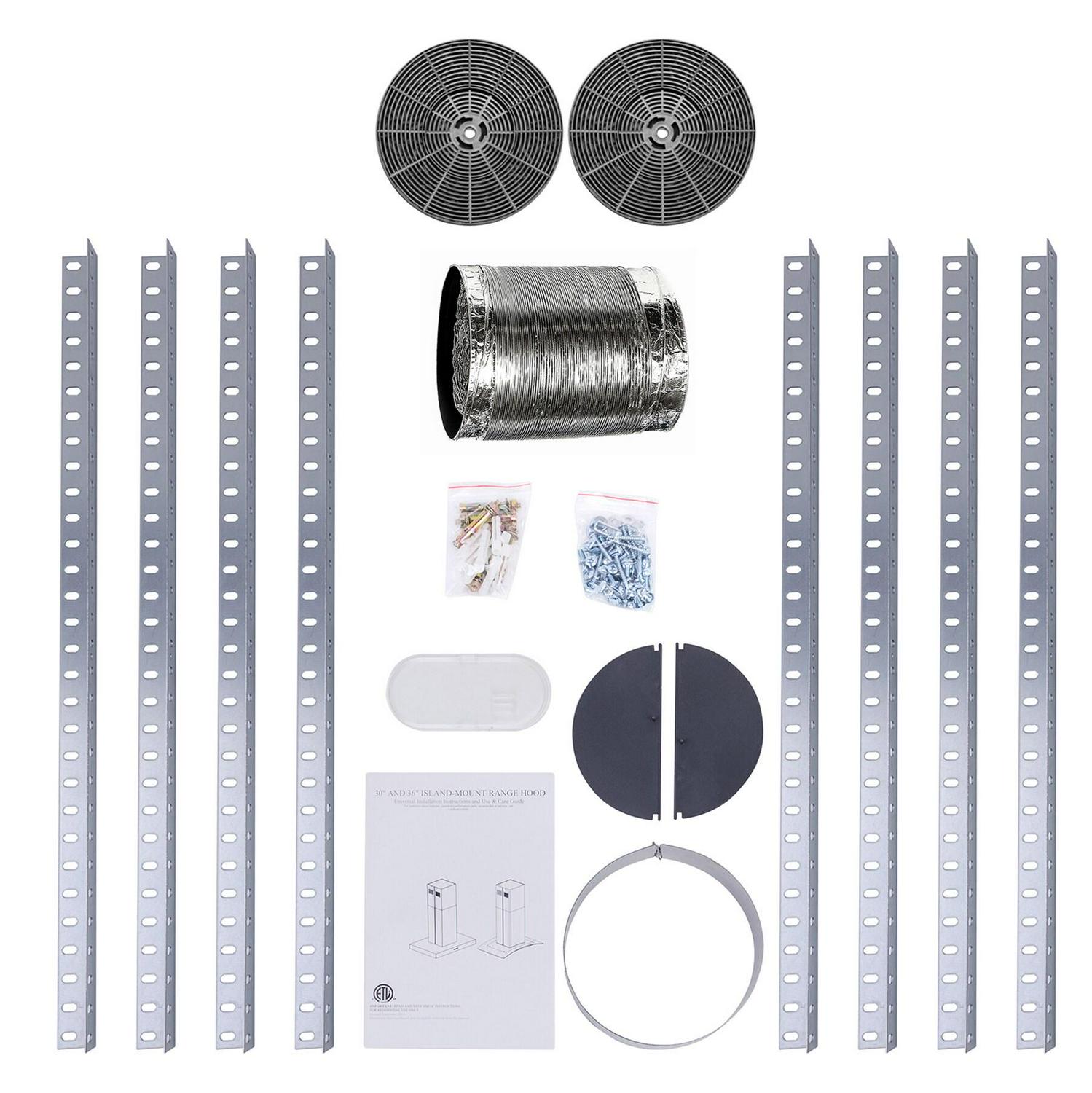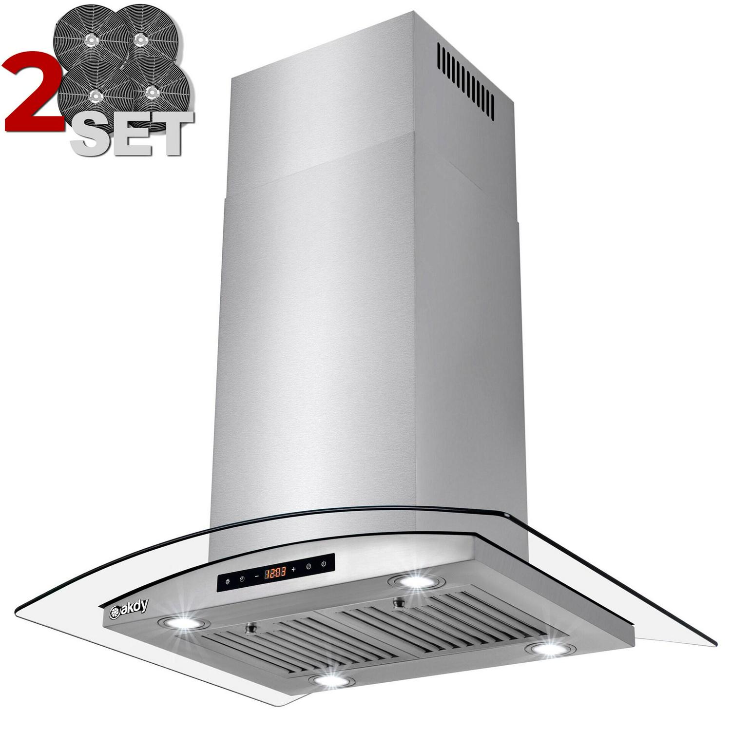 AKDY Island Range Hoods 30-in 343-CFM Convertible Stainless Steel Island Range Hood with Charcoal Filter