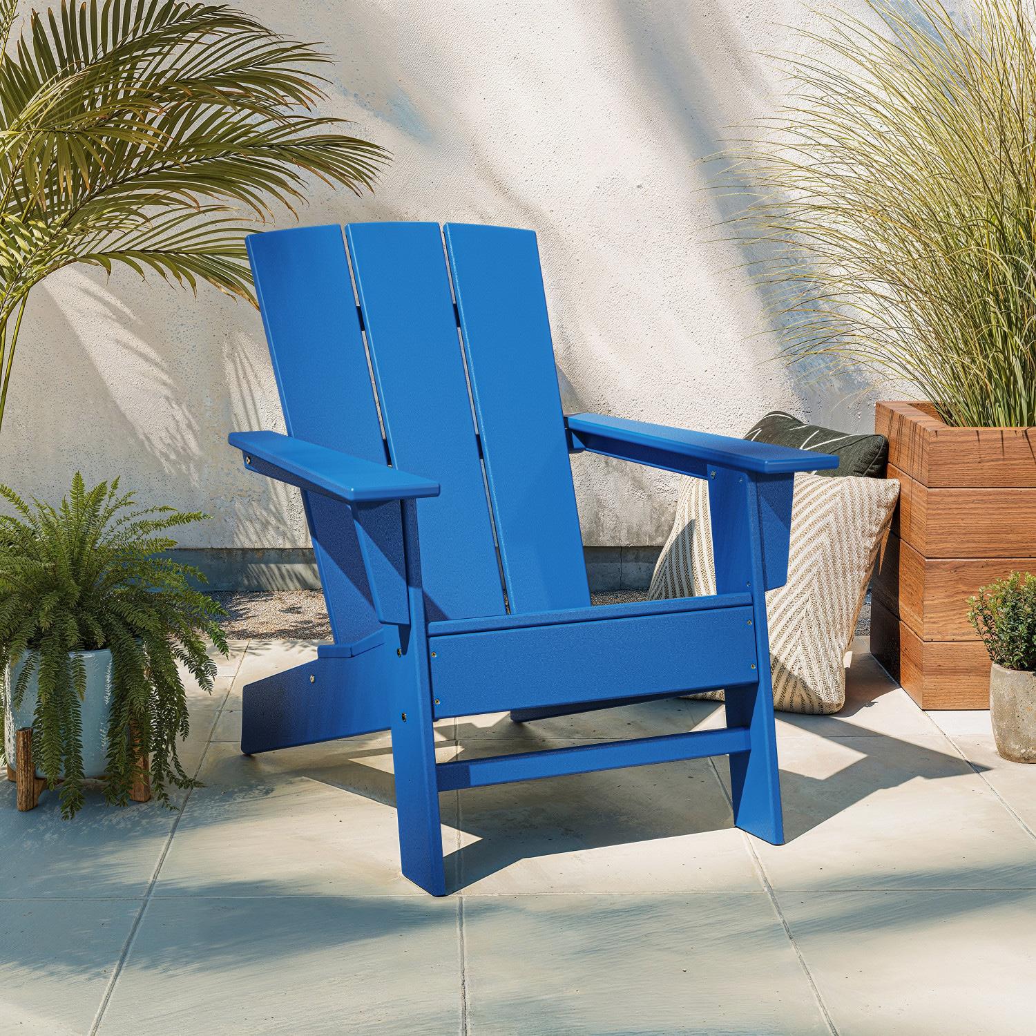 allen + roth by POLYWOOD Oakport Pacific Blue HDPE Frame Stationary Adirondack Chair with Slat Seat