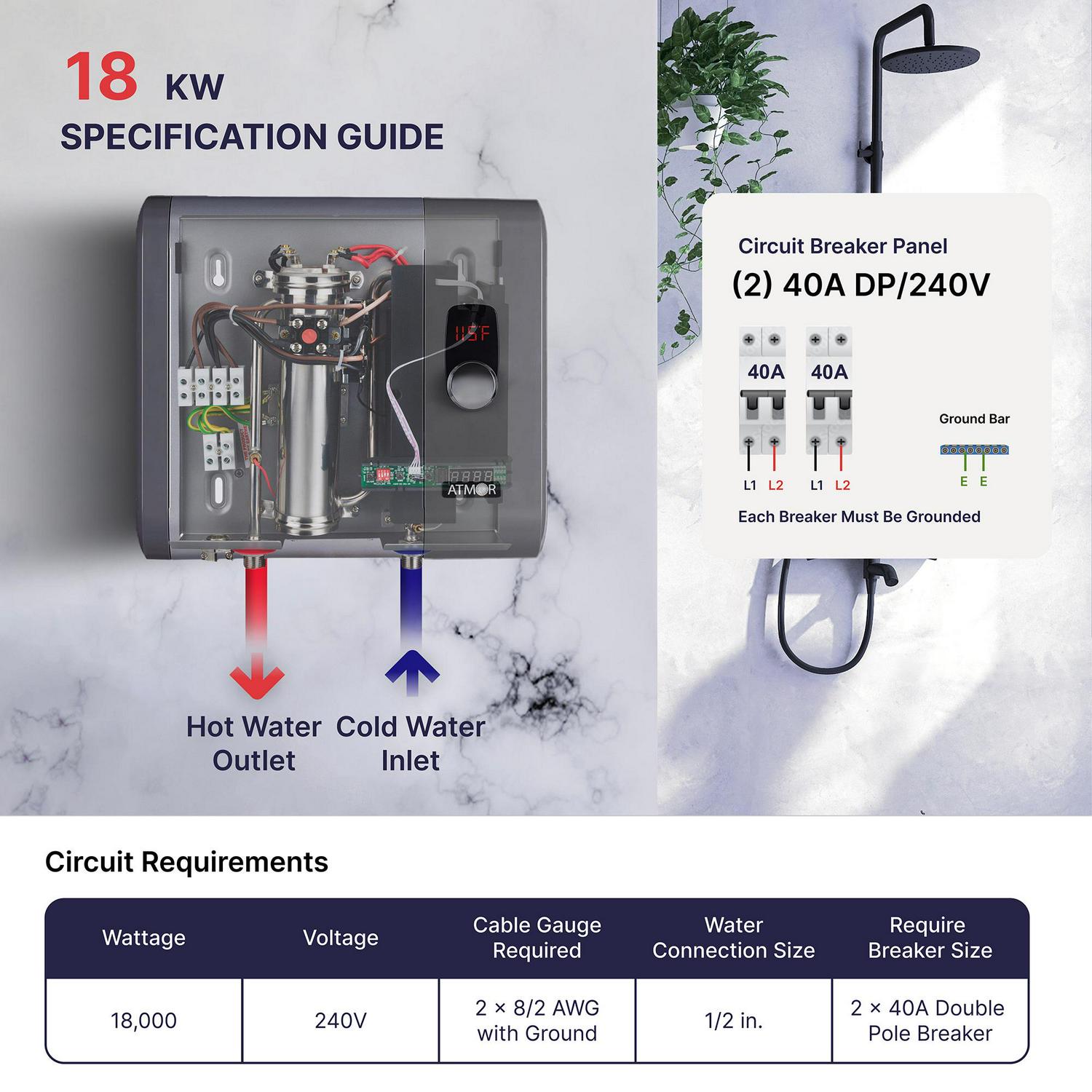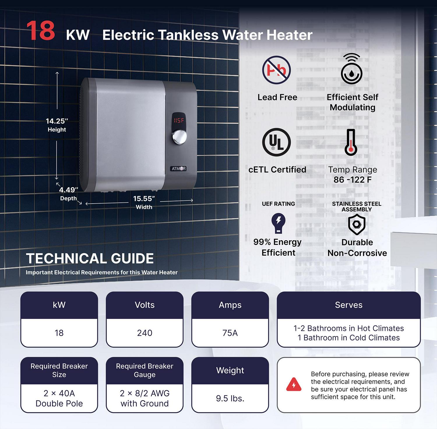 Atmor 912 240-Volt 18-kW 3.73-GPM Tankless Electric Water Heater