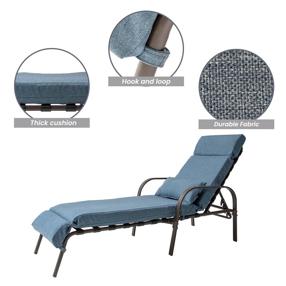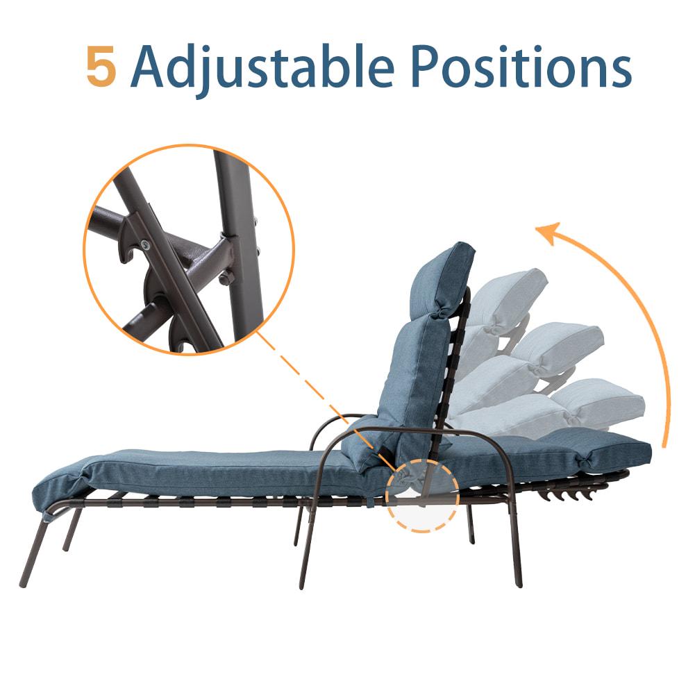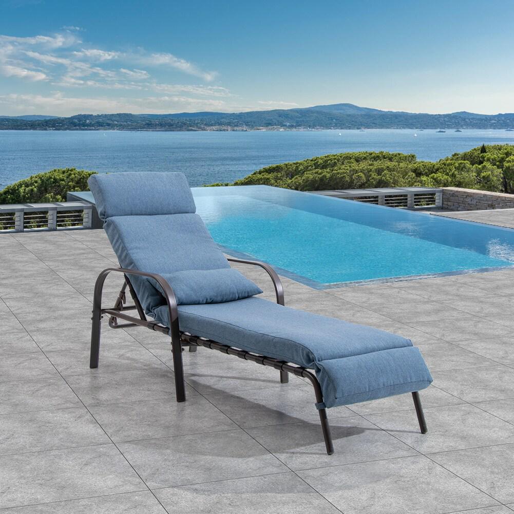 Crestlive Products Patio chaise lounge Steel Frame In Brown Powder Coated Steel Frame Stationary Chaise Lounge Chair with Blue Sling Seat