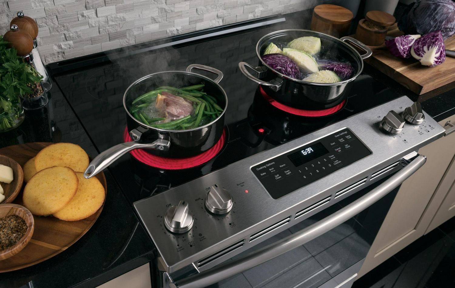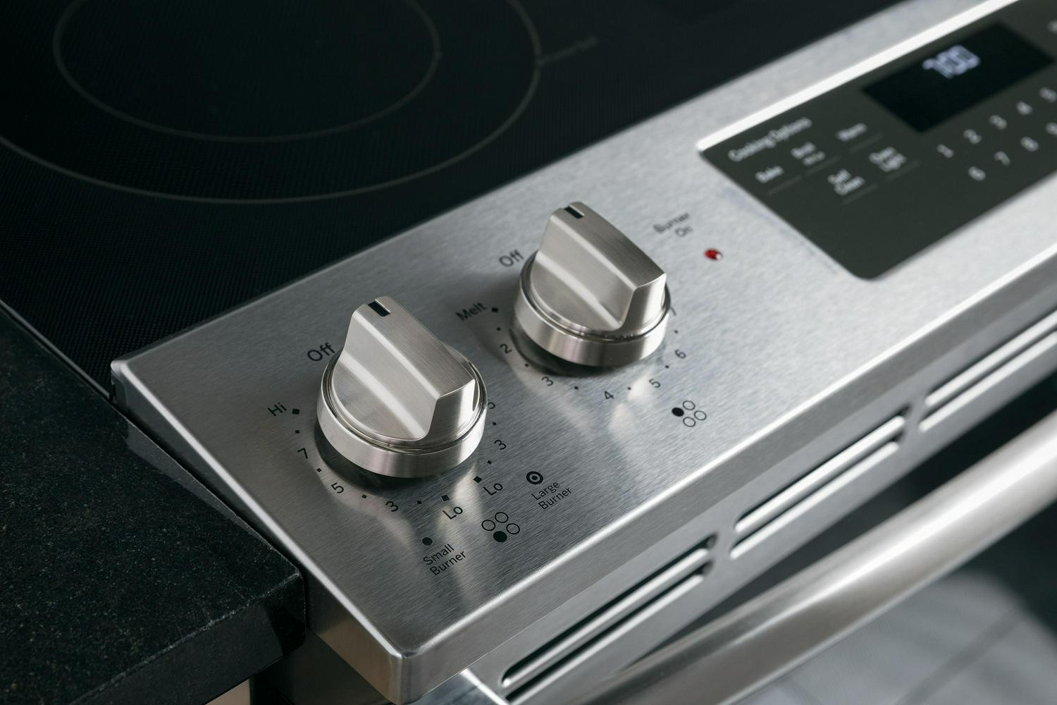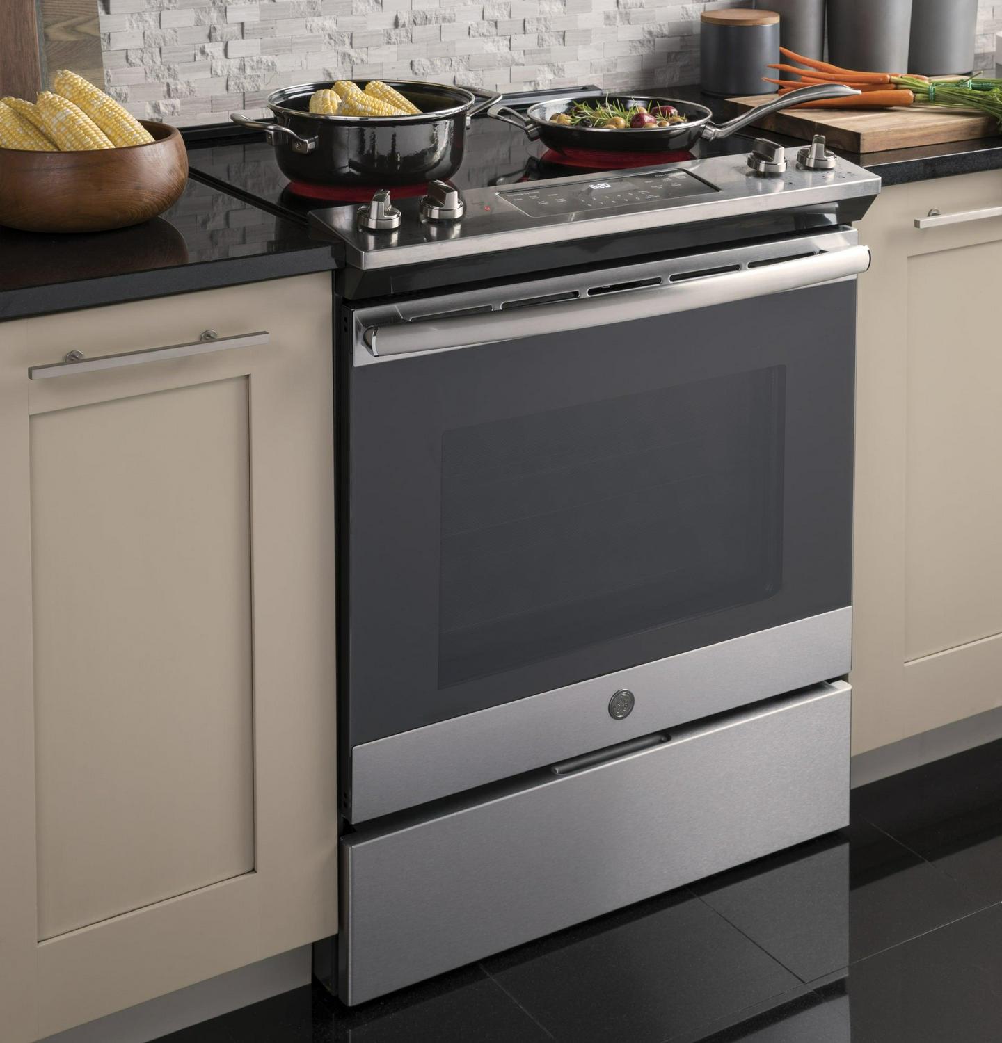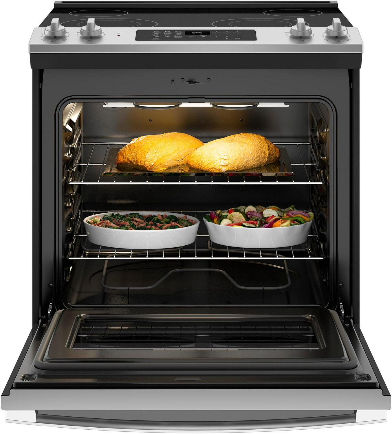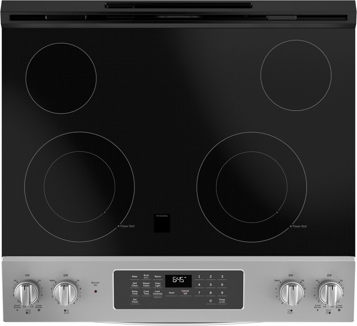 GE 30-in Glass Top 4 Burners 5.3-cu ft Self-Cleaning Slide-in Electric Range (Stainless Steel)