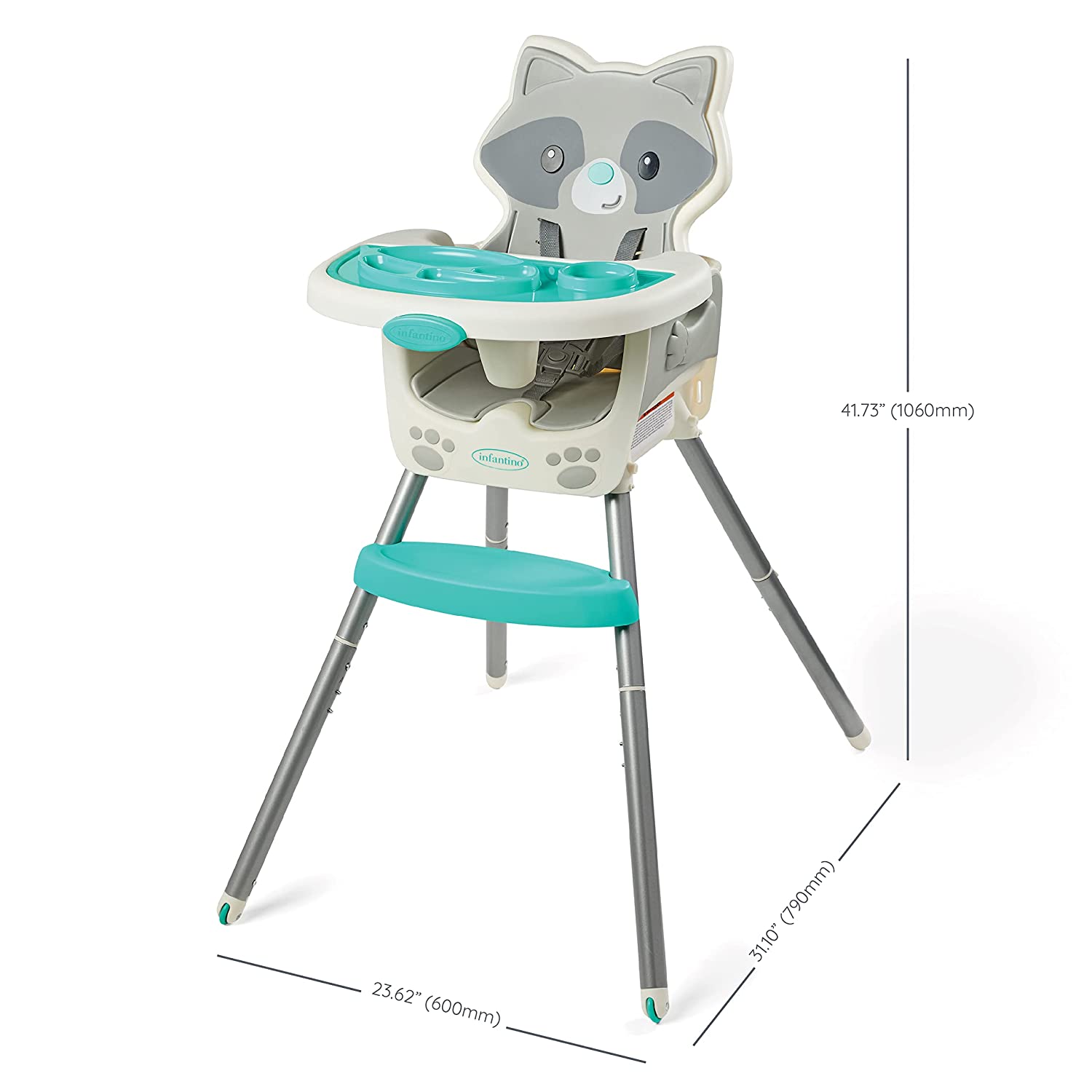 Infantino Grow-with-Me 4-in-1 Convertible High Chair, Raccoon-Theme, Space-Saving Design, Booster and Toddler Chair, for Infants Toddlers 3M-36M