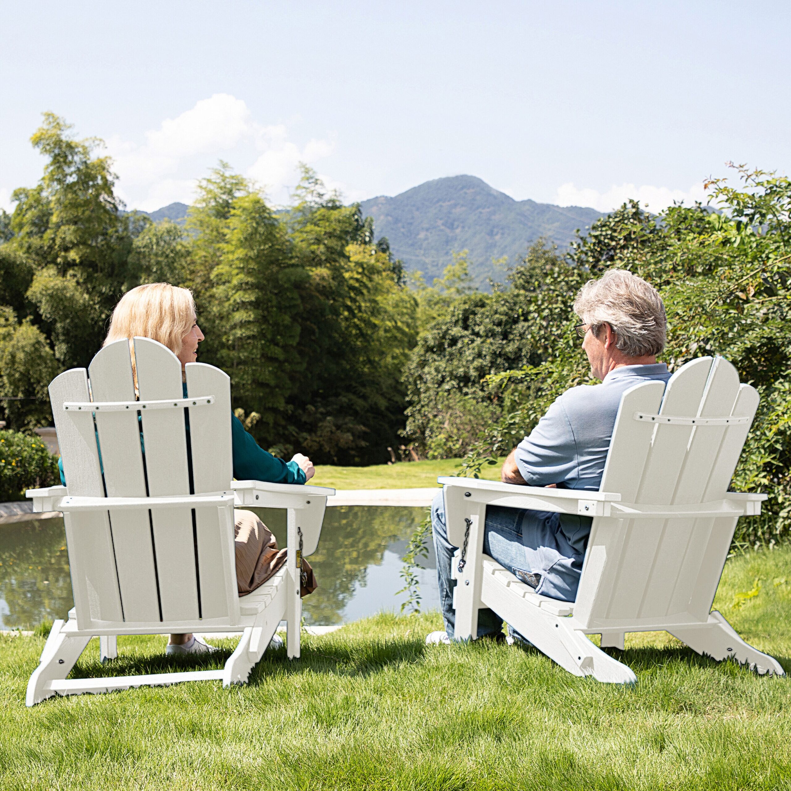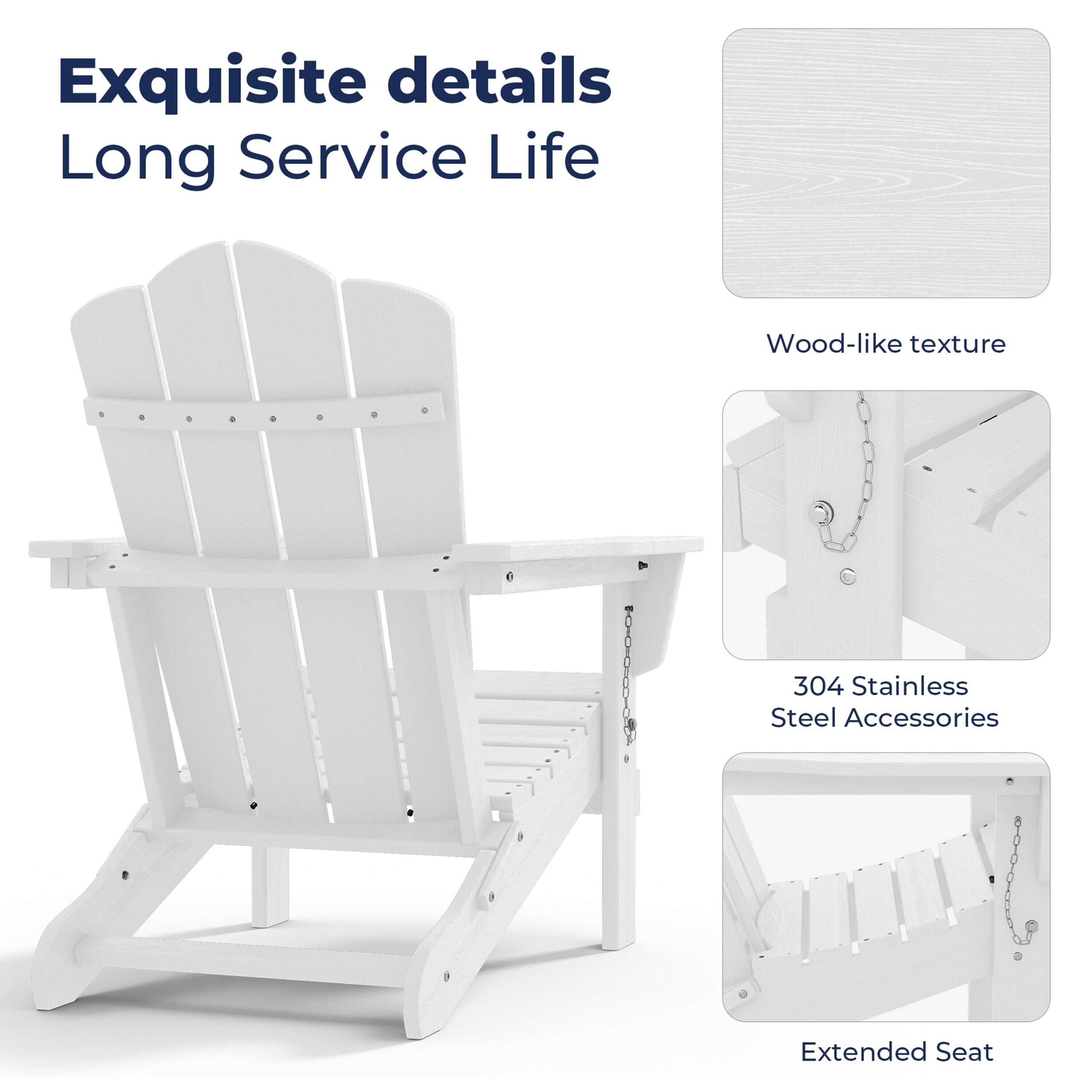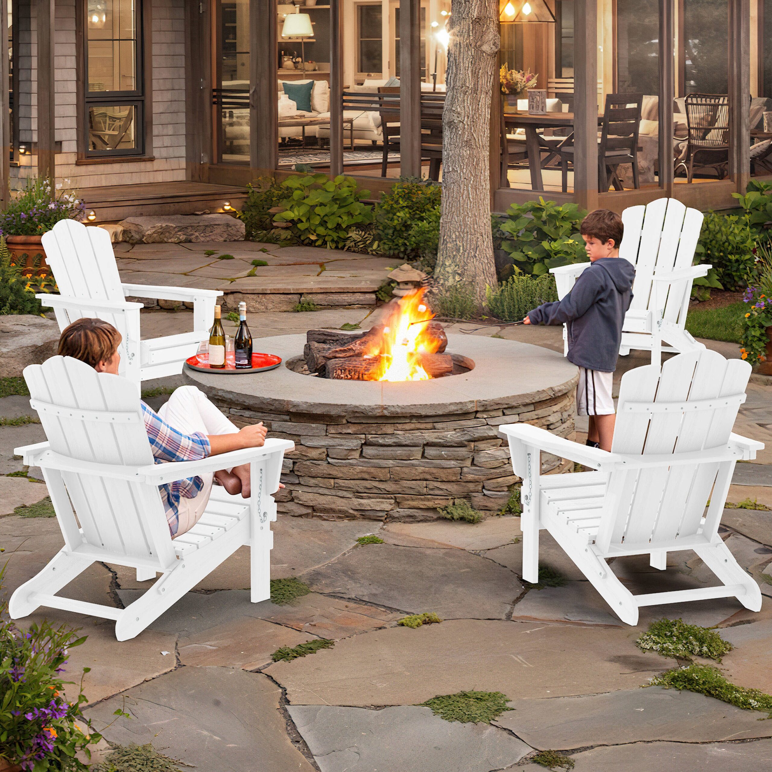JEAREY Folding Adirondack Chair Stackable White Hdpe Frame Stationary Adirondack Chair with White Slat Seat