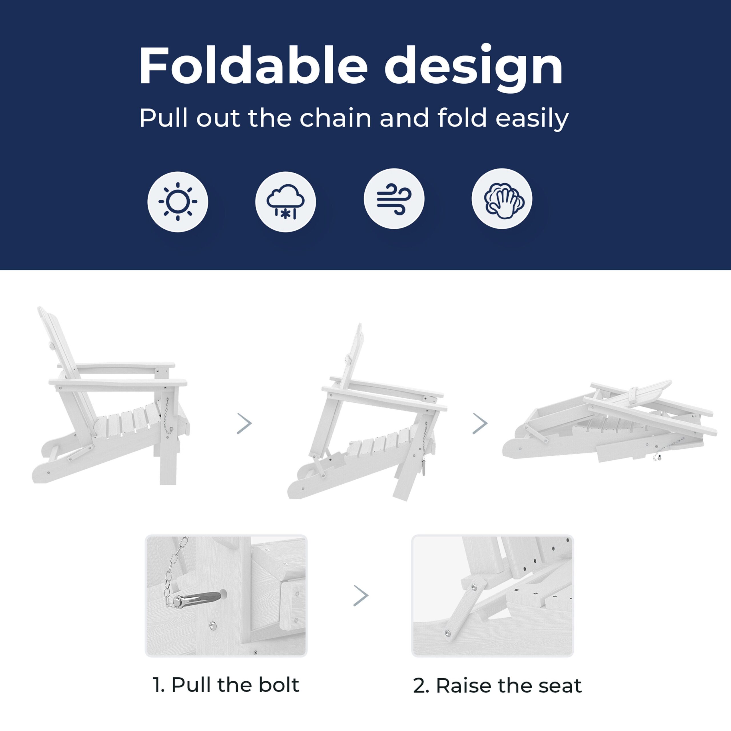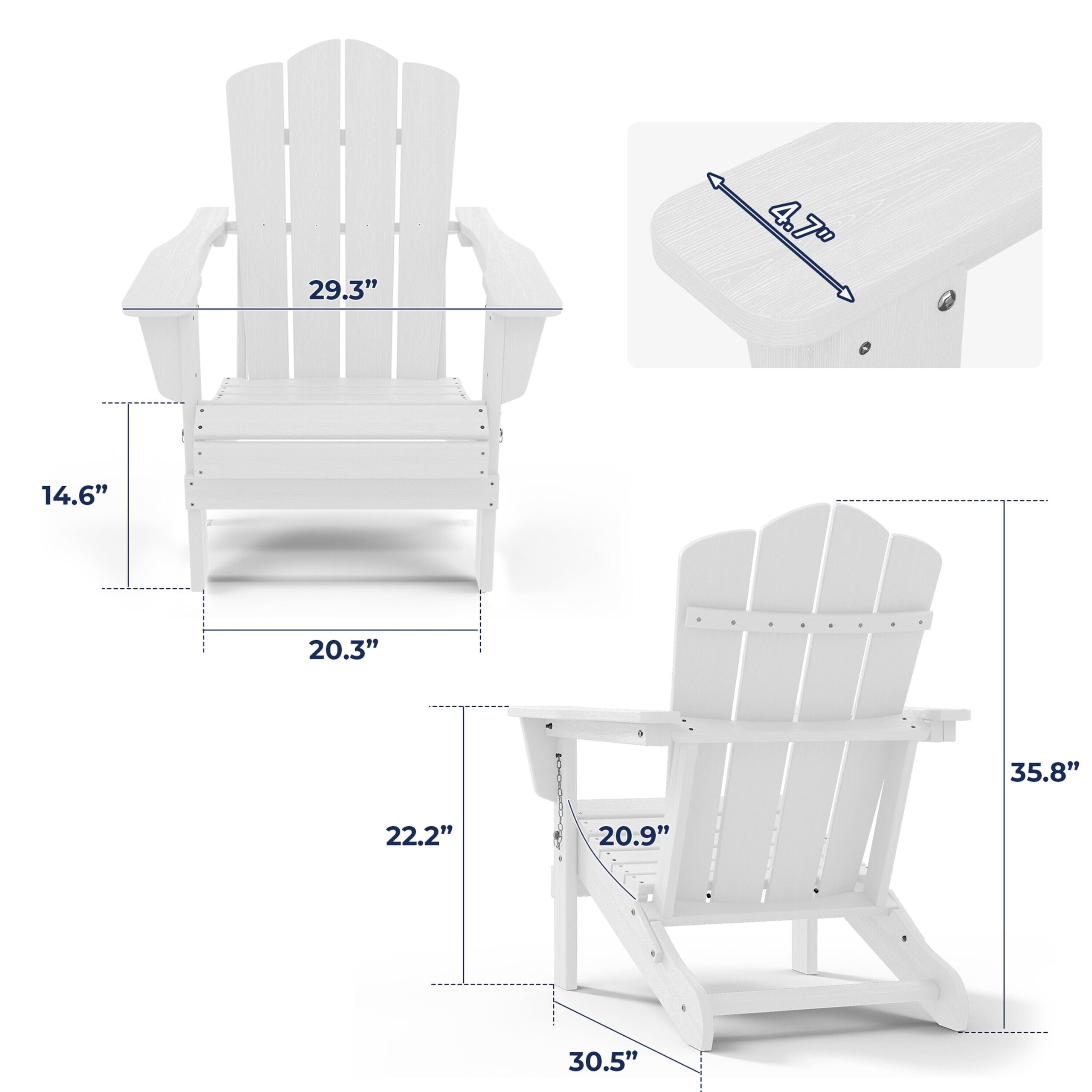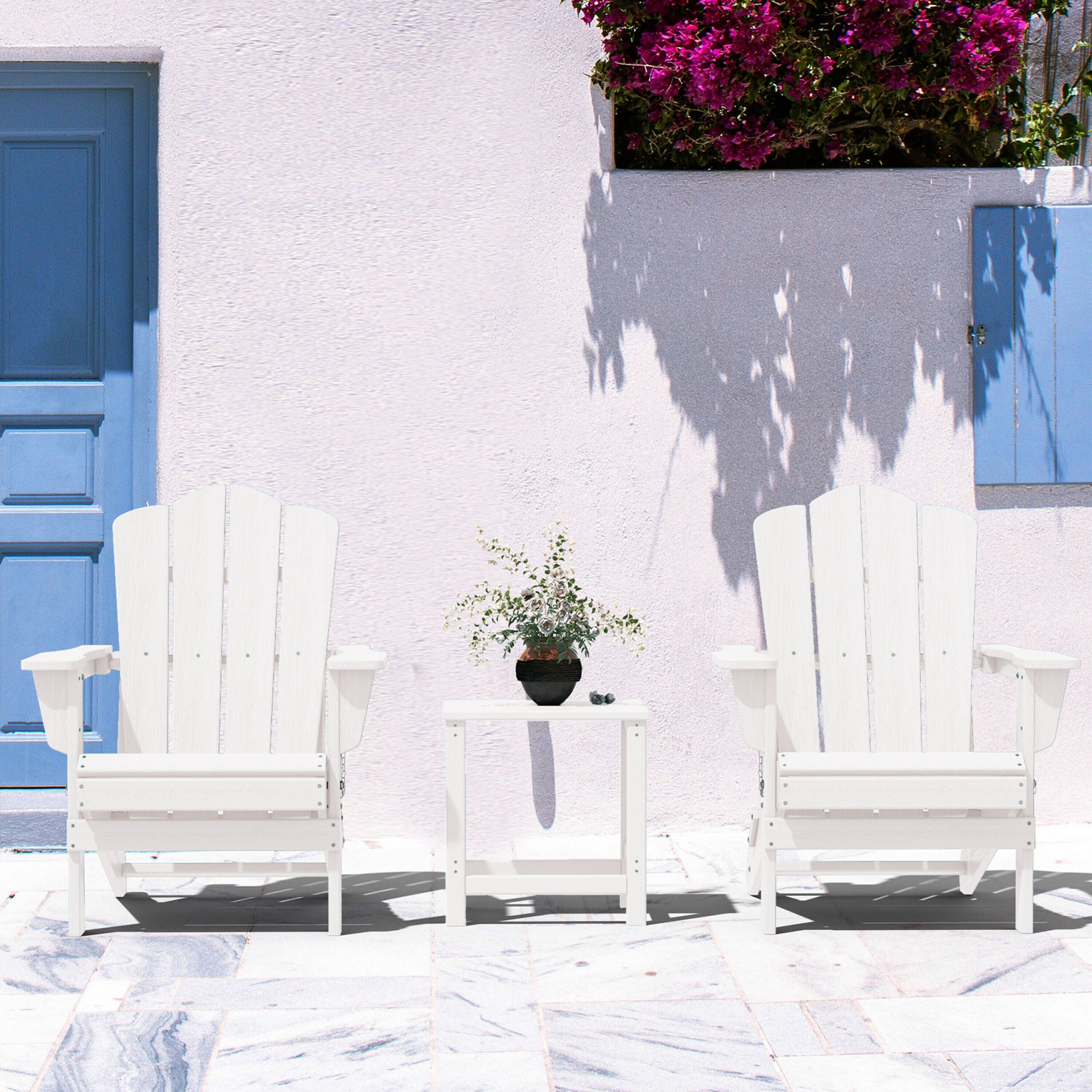 JEAREY Folding Adirondack Chair Stackable White Hdpe Frame Stationary Adirondack Chair with White Slat Seat