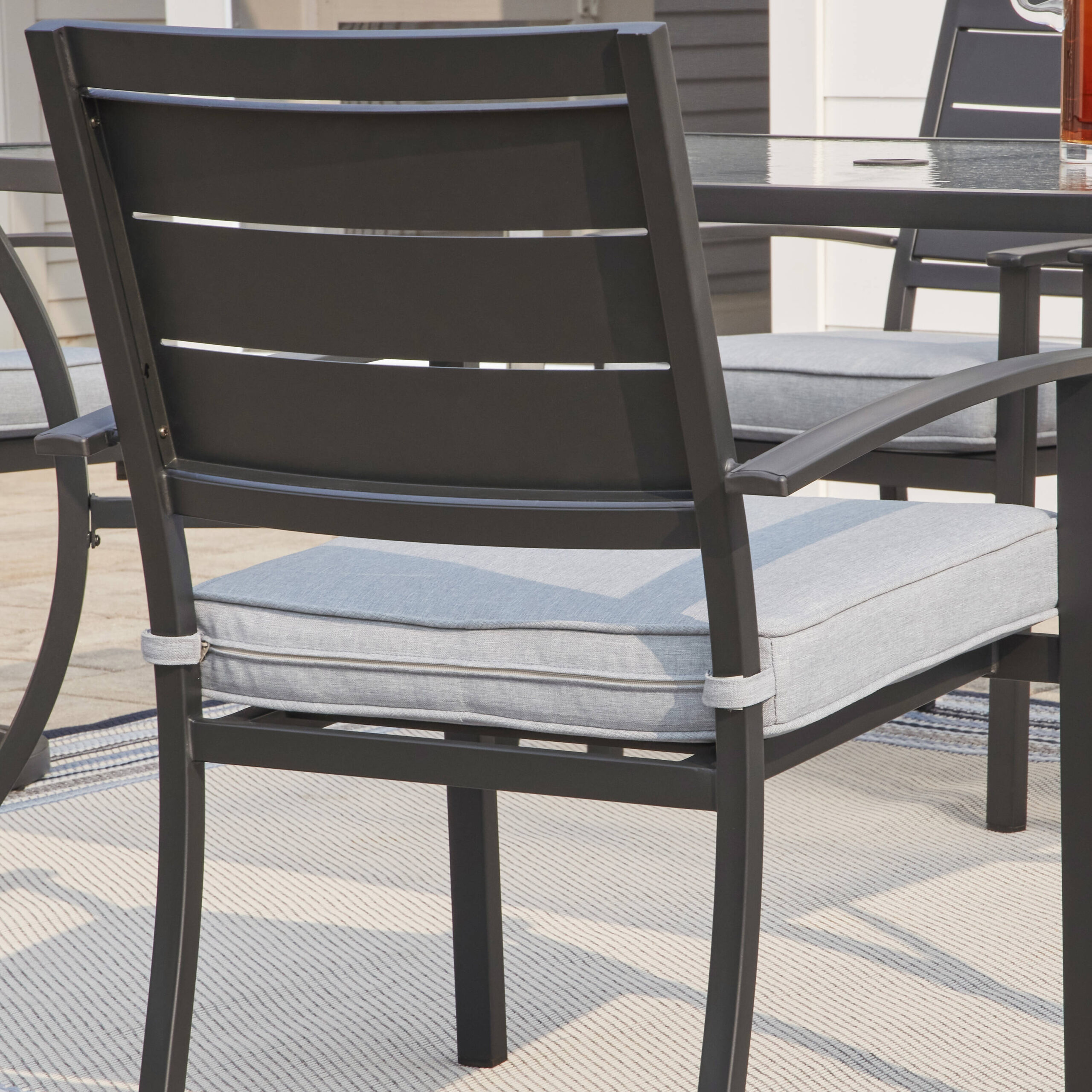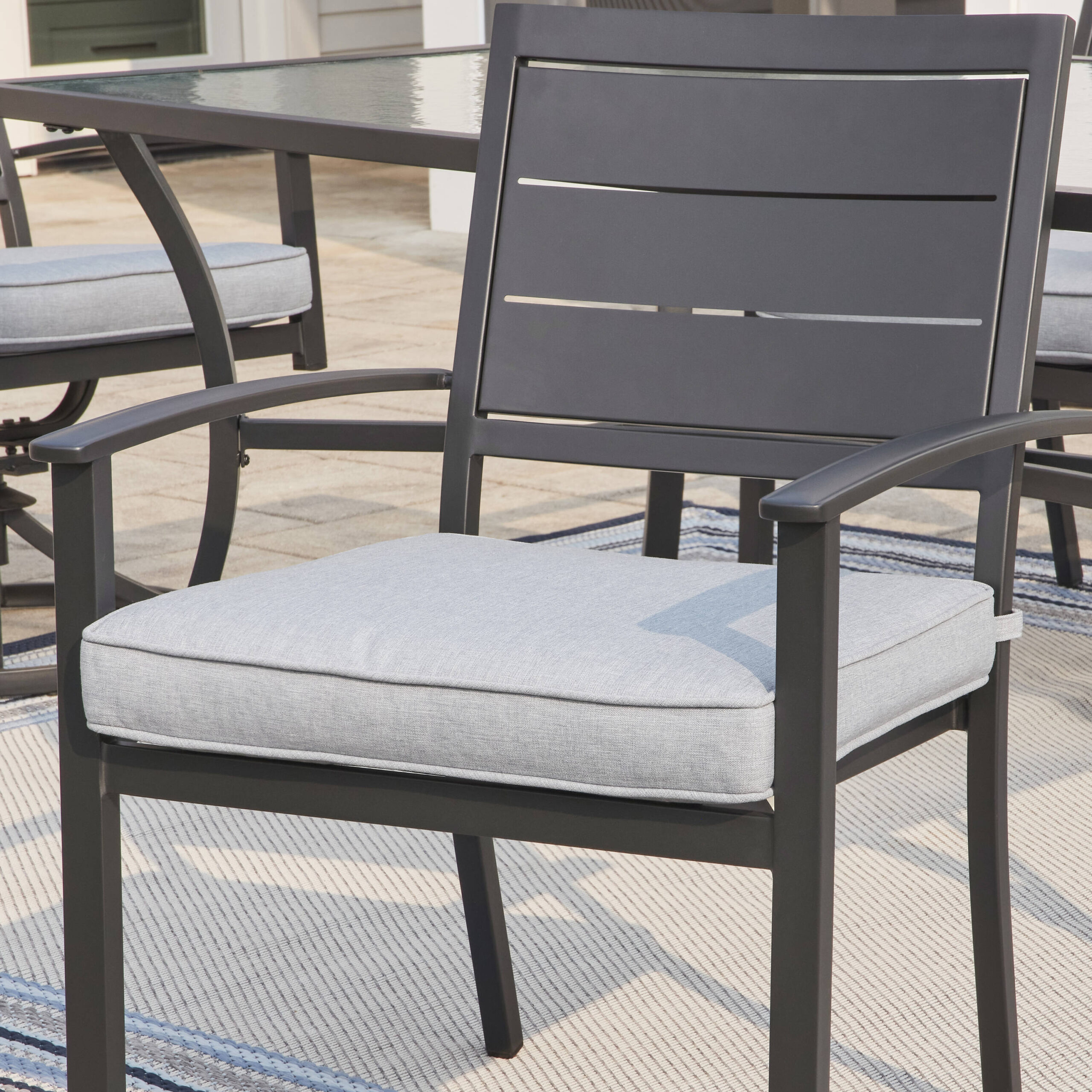 Style Selections Skybrook Set of 4 Stackable Black Steel Frame Stationary Dining Chair with Blue Cushioned Seat