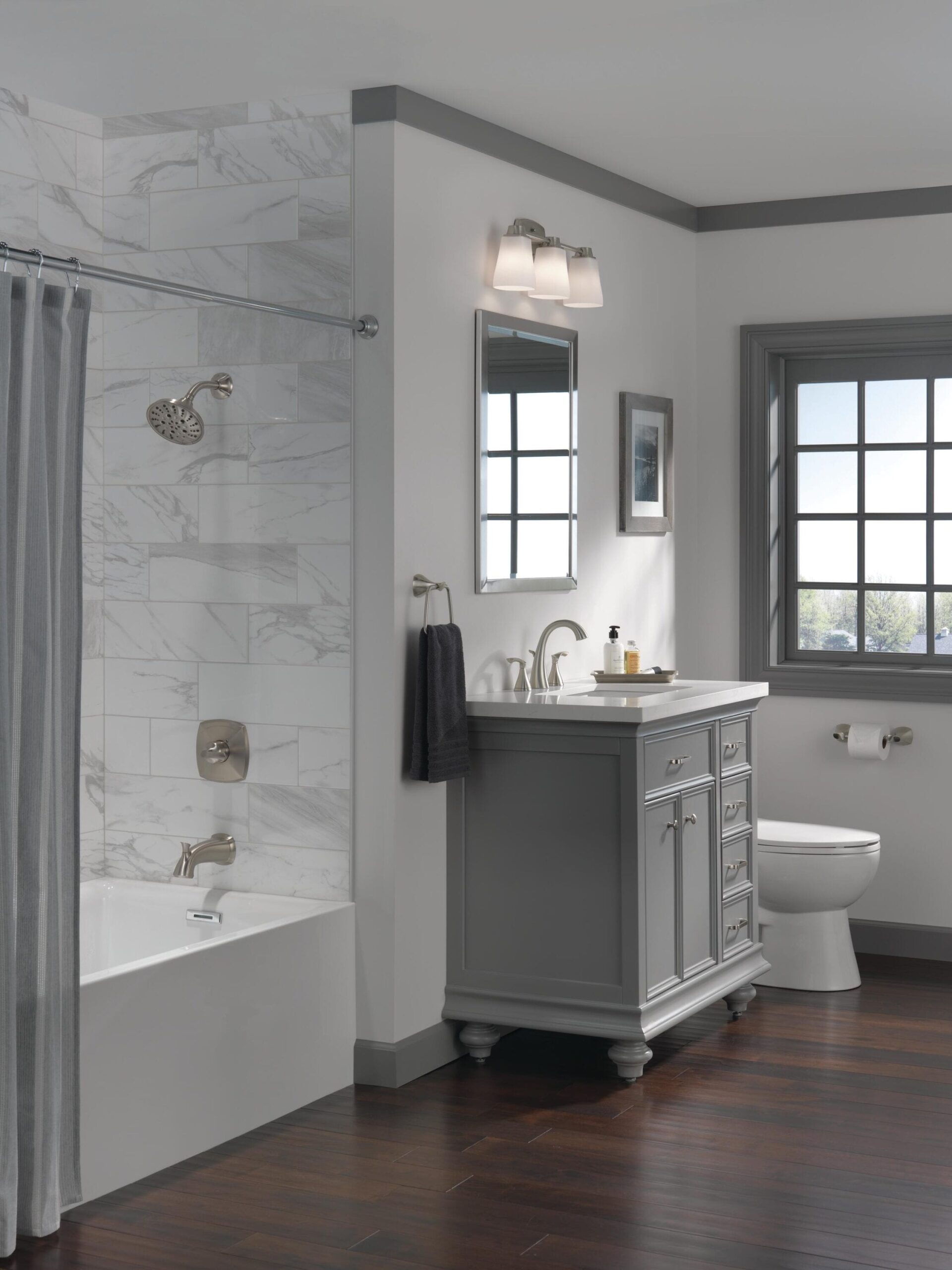Delta Sandover Spotshield Brushed Nickel 1-handle Multi-function Round Bathtub and Shower Faucet Valve Included