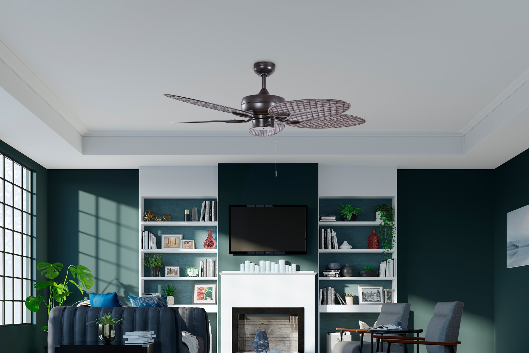 Harbor Breeze Tilghman II 52-in Bronze Indoor/Outdoor Downrod or Flush Mount Ceiling Fan (5-Blade)
