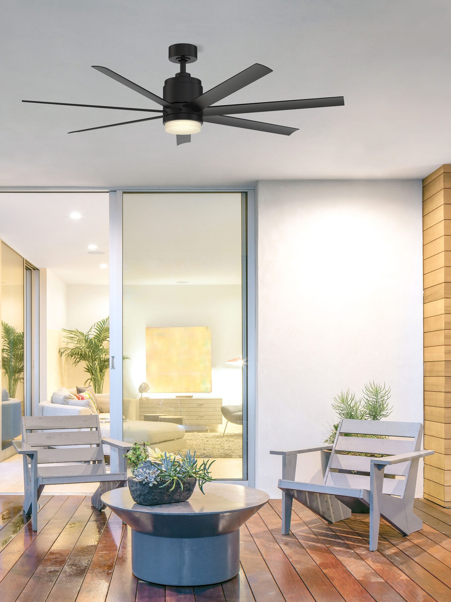 Fanimation Studio Collection Blitz 56-in Black Integrated LED Indoor/Outdoor Ceiling Fan with Light and Remote (7-Blade)