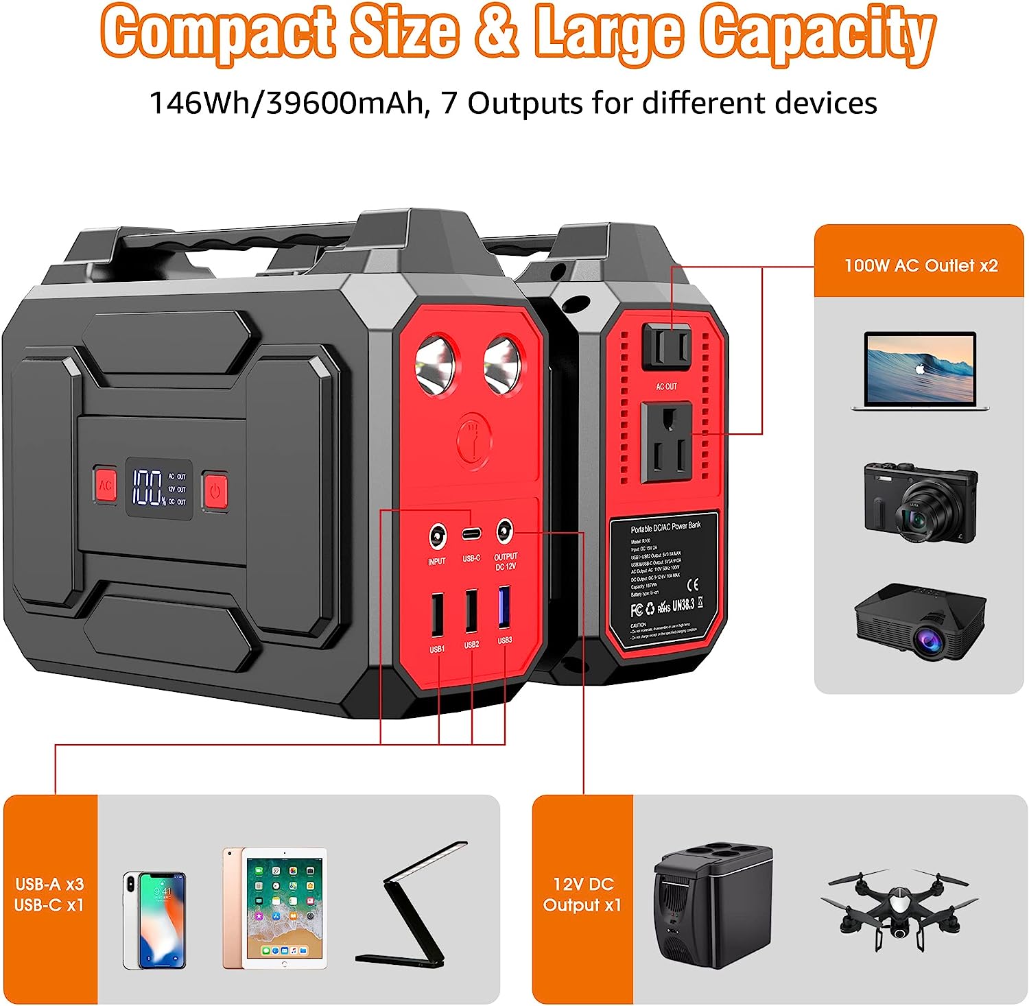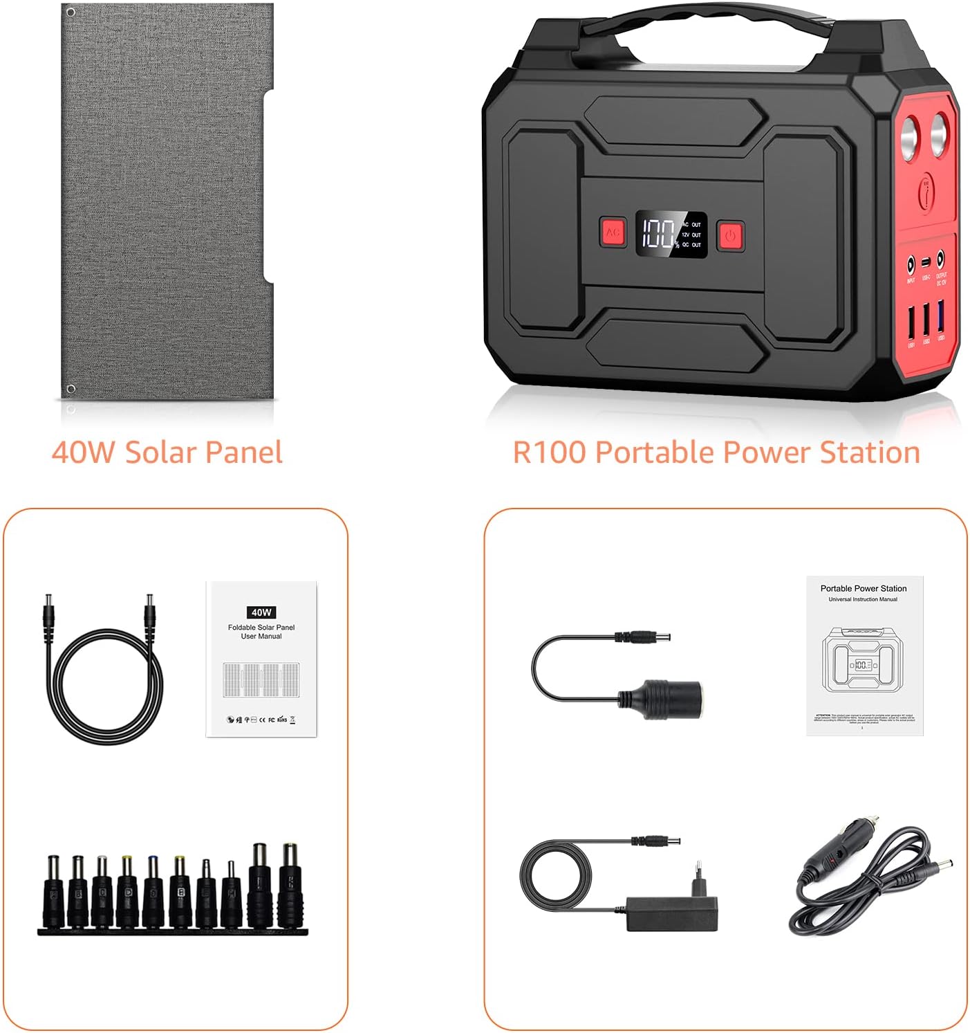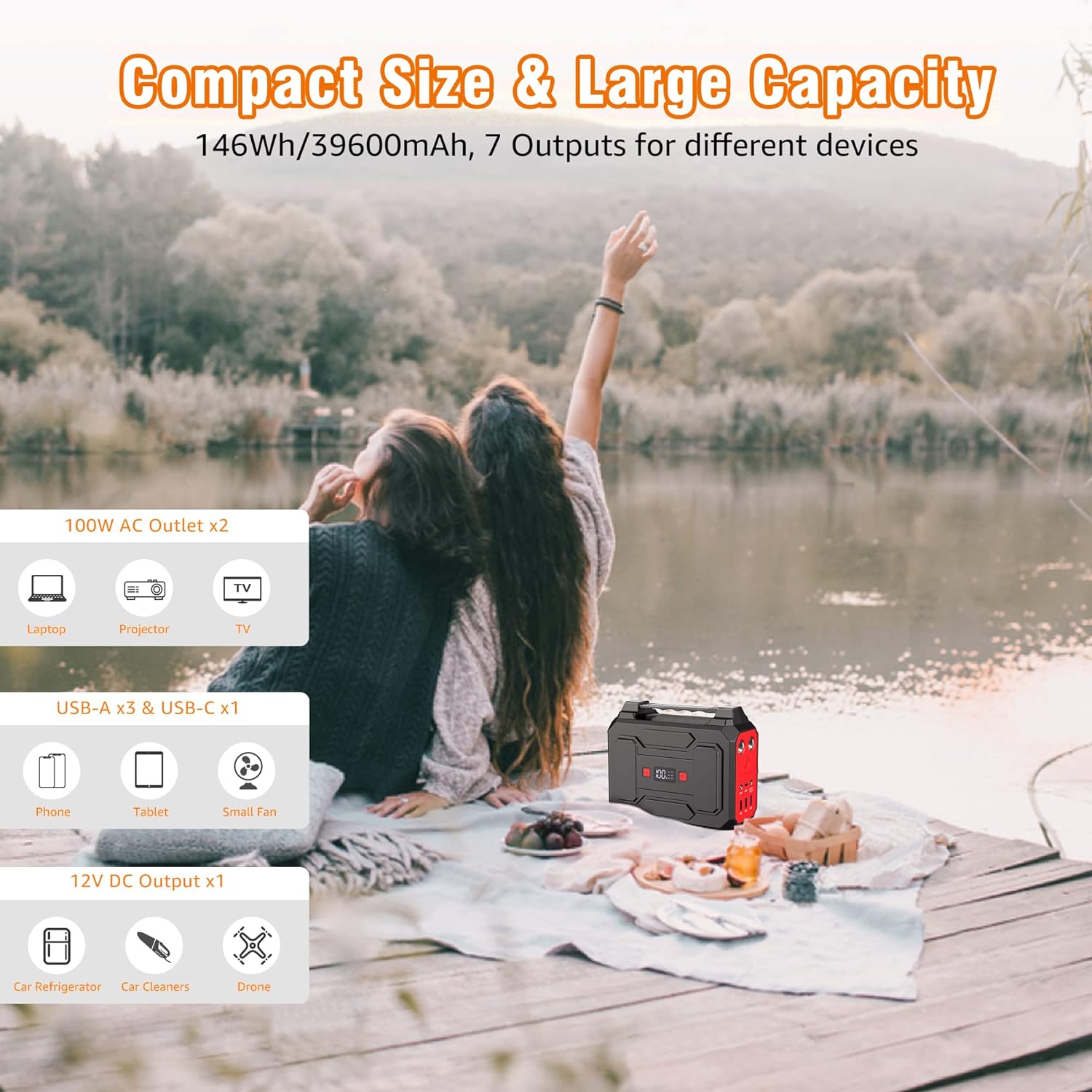 Apowking 146Wh Portable Power Bank with AC Outlet 40W Foldable Solar Panel