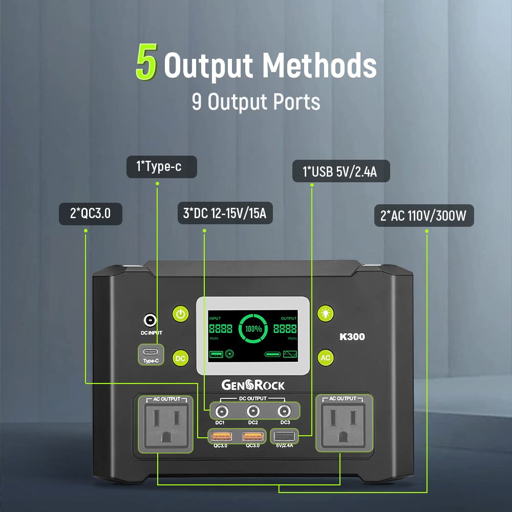 GENSROCK 300W Portable Power Station, 222Wh Solar Generator