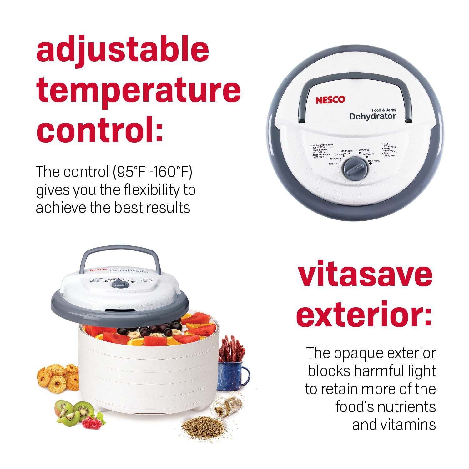 NESCO FD-75A Snackmaster Pro Food Dehydrator, For Snacks, Fruit, Beef Jerky, Gray