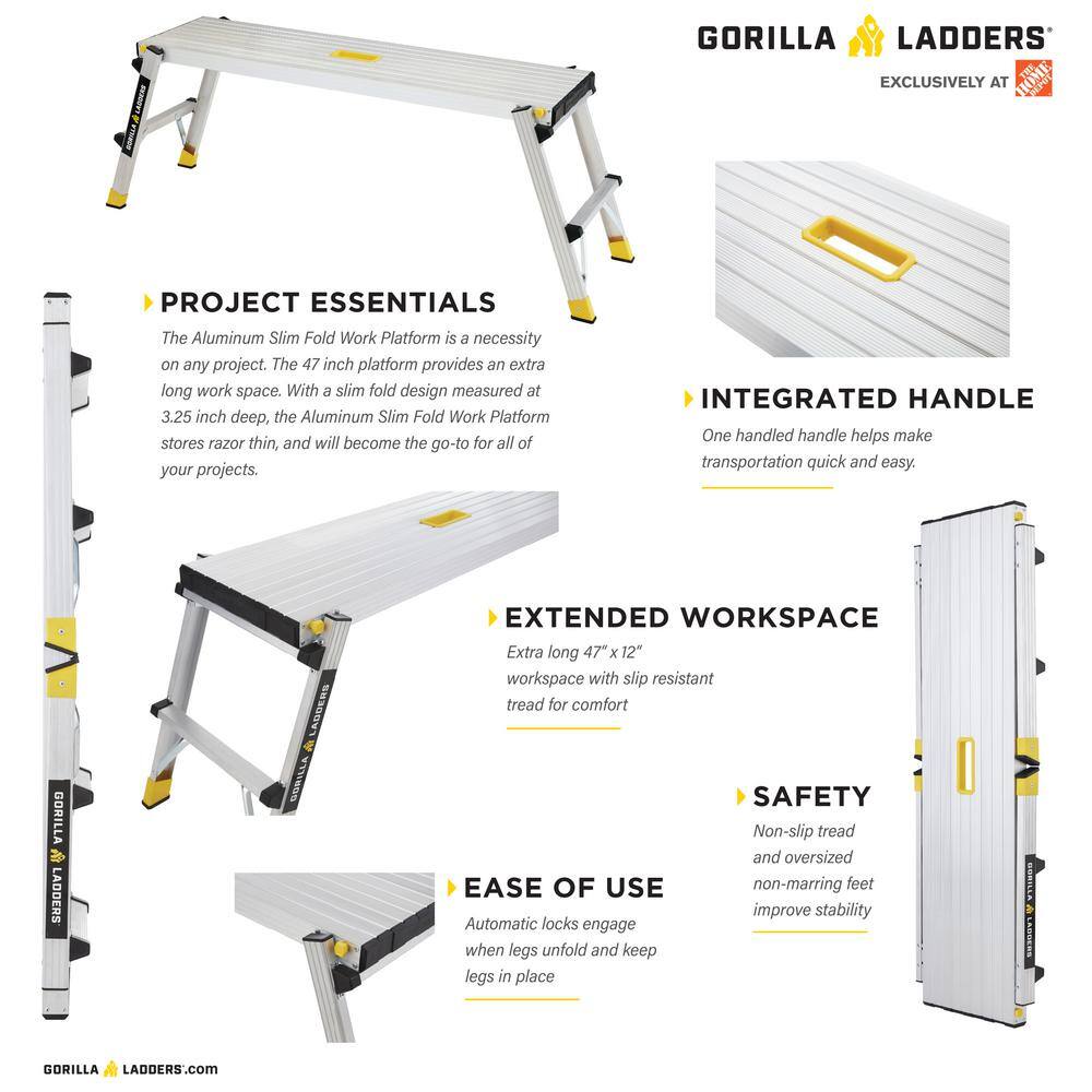 Gorilla Ladders 4 ft. x 12 in. x 20 in. Aluminum Slim-Fold Work Platform, 300 lbs. Load Capacity