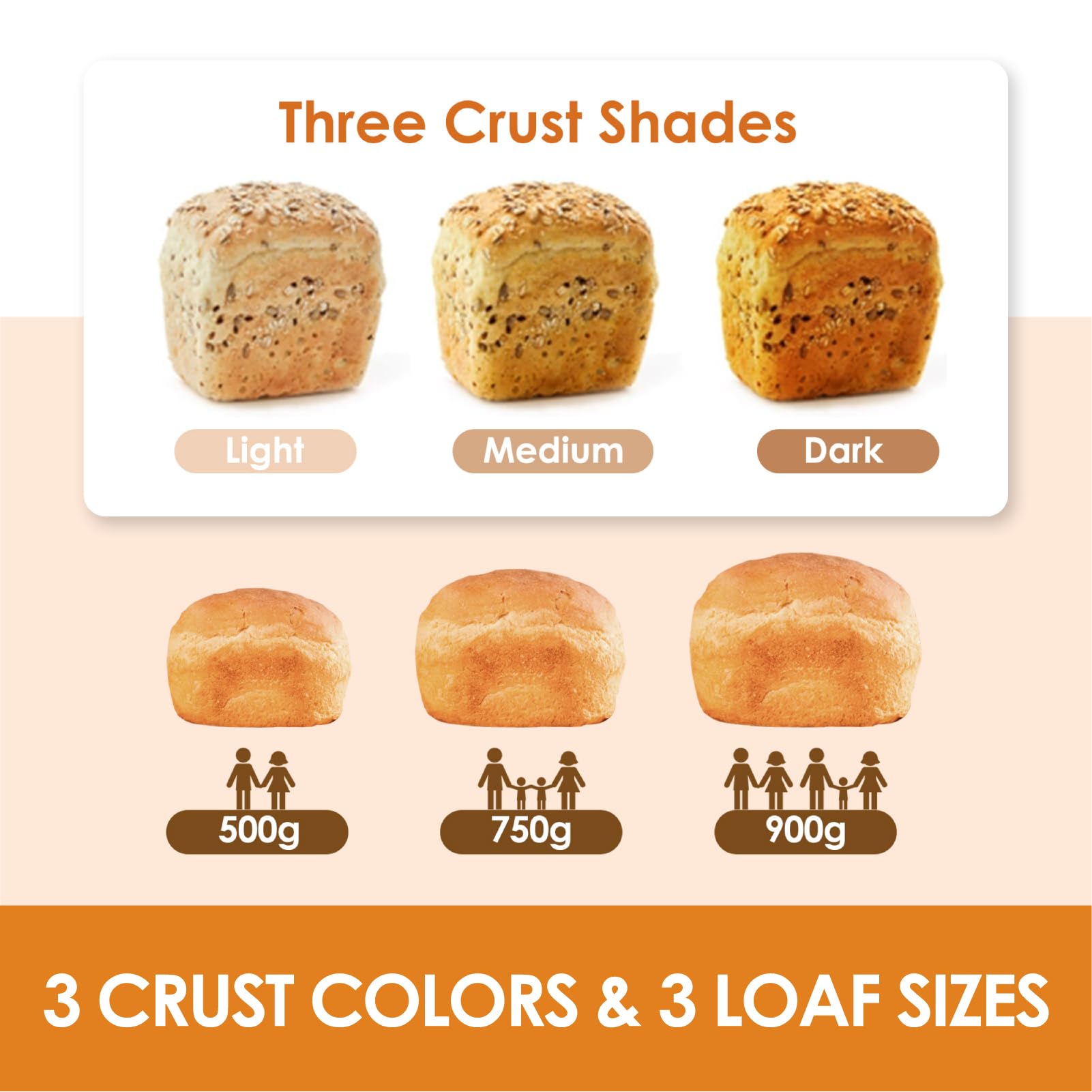 Kitchen in the box Bread Maker Machine with Gluten-Free Setting, 2LB 1.5LB 1LB Automatic Breadmaker with Homemade Cycle