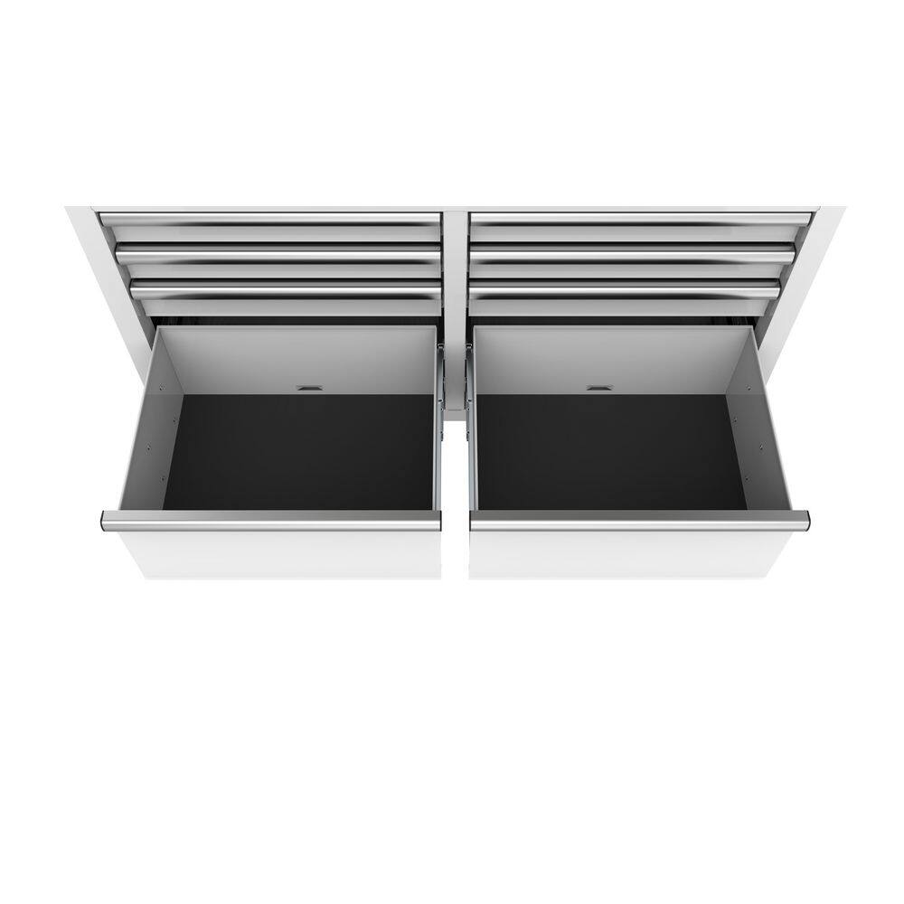 Husky H46X18MWC9WHT 46 in. W x 18 in. D 9-Drawer Gloss White Mobile Workbench Cabinet with Solid Wood Top
