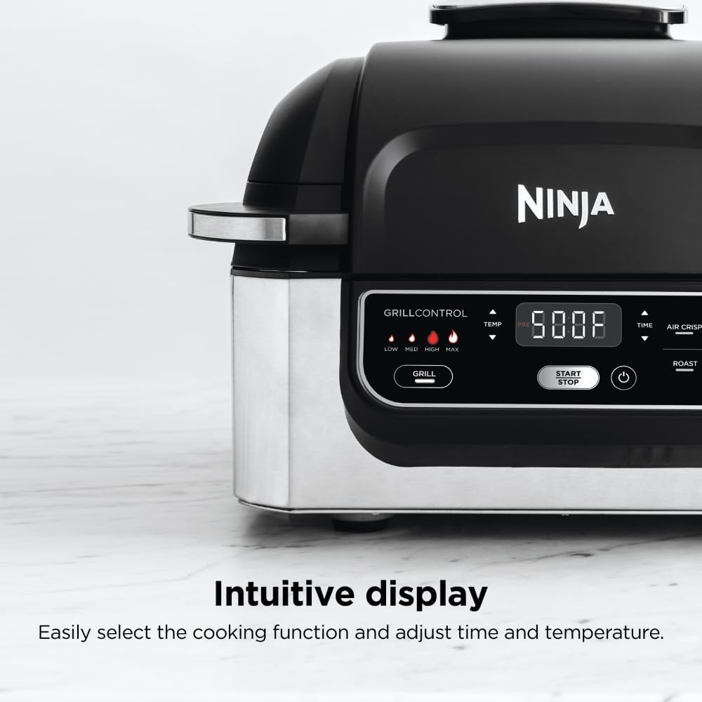 Ninja AG301 Foodi 5-in-1 Indoor Electric Grill with Air Fry, Roast, Bake Dehydrate Programmable, Black/Silver