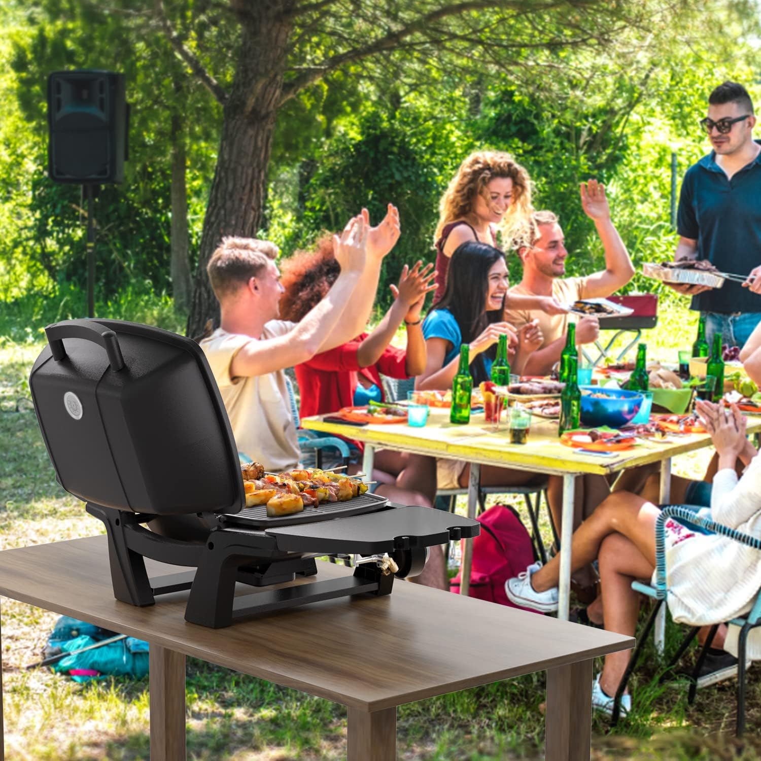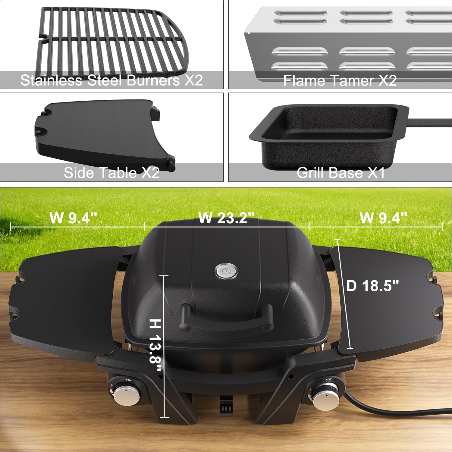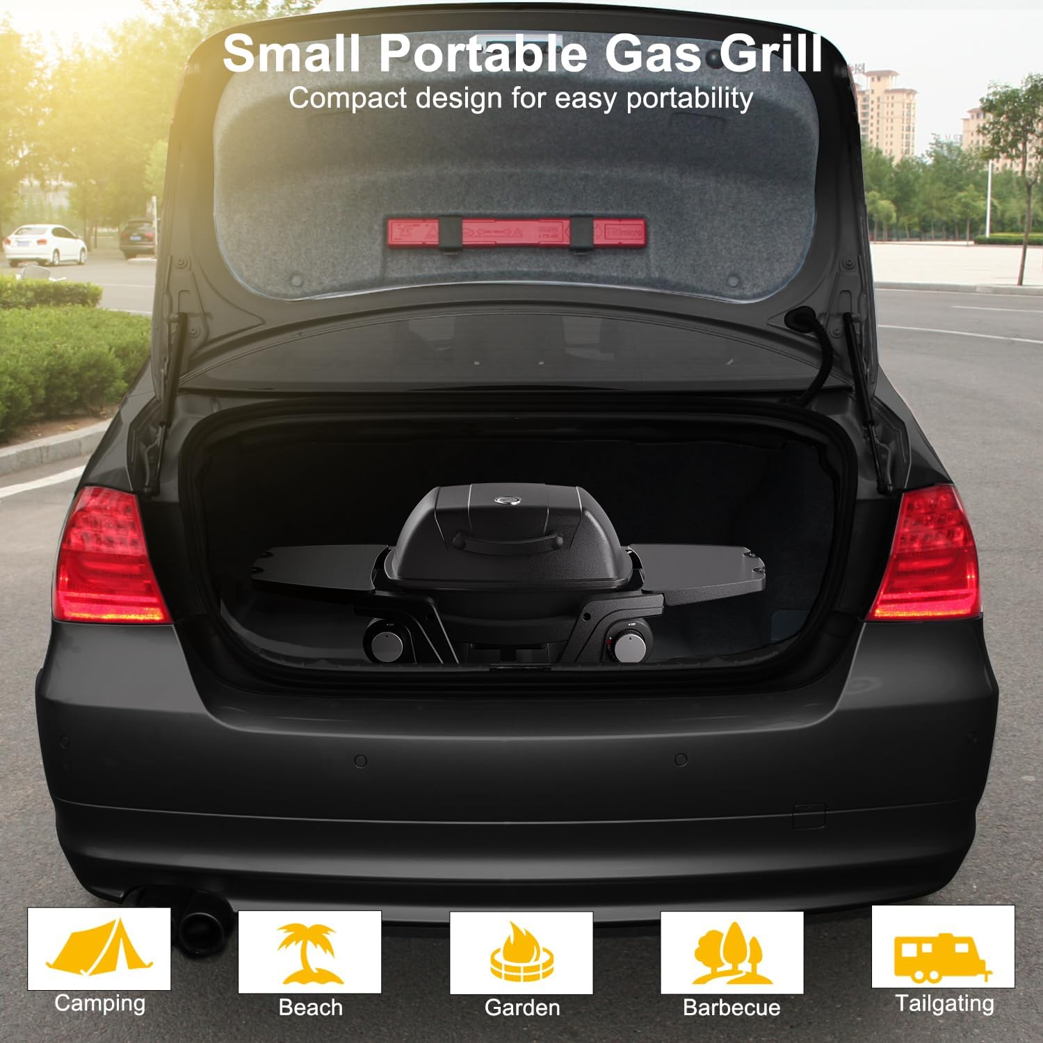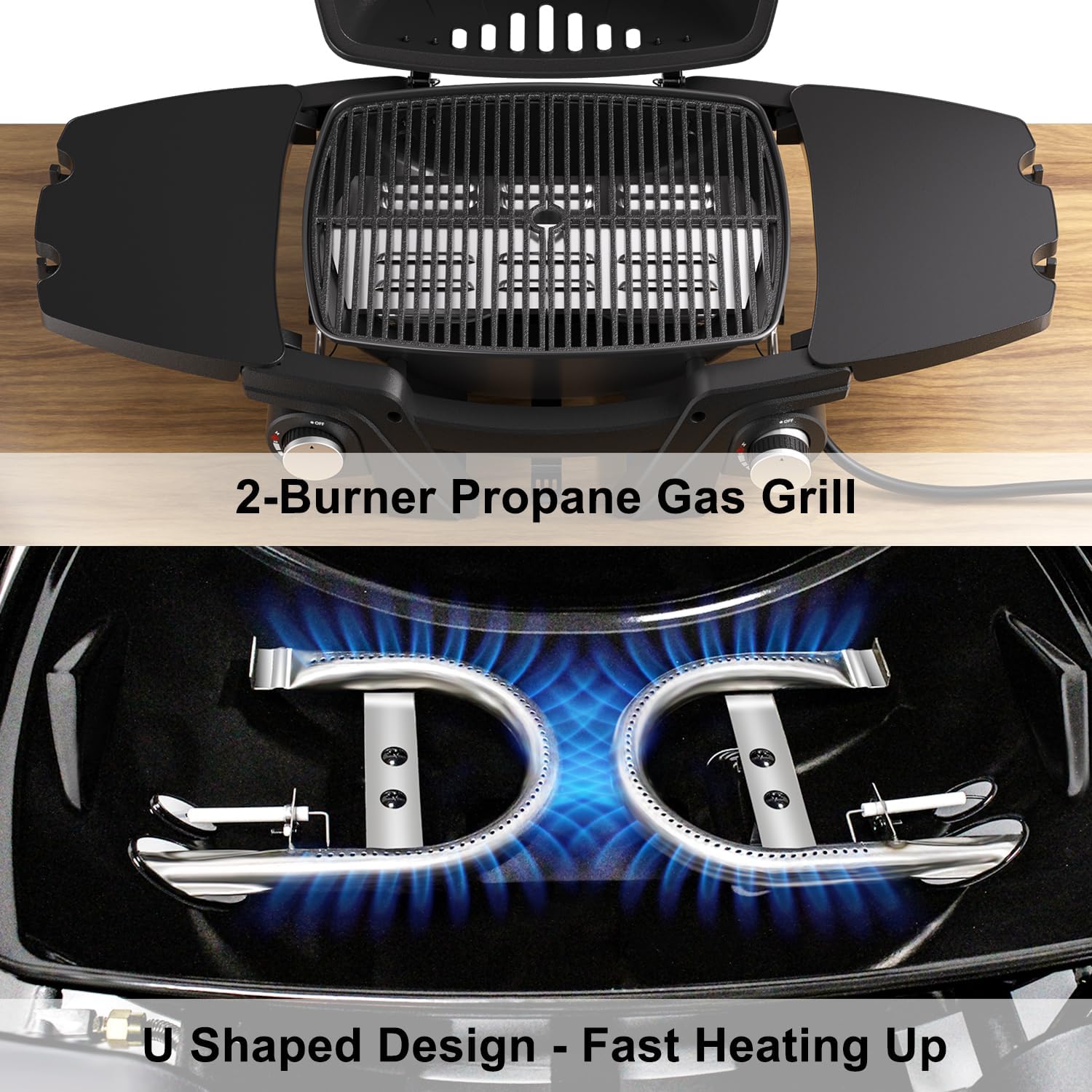 Portable Propane Gas Grill, 2-Burner Portable Gas Grill Small Tabletop Gas Grill, 24000BTU, Black