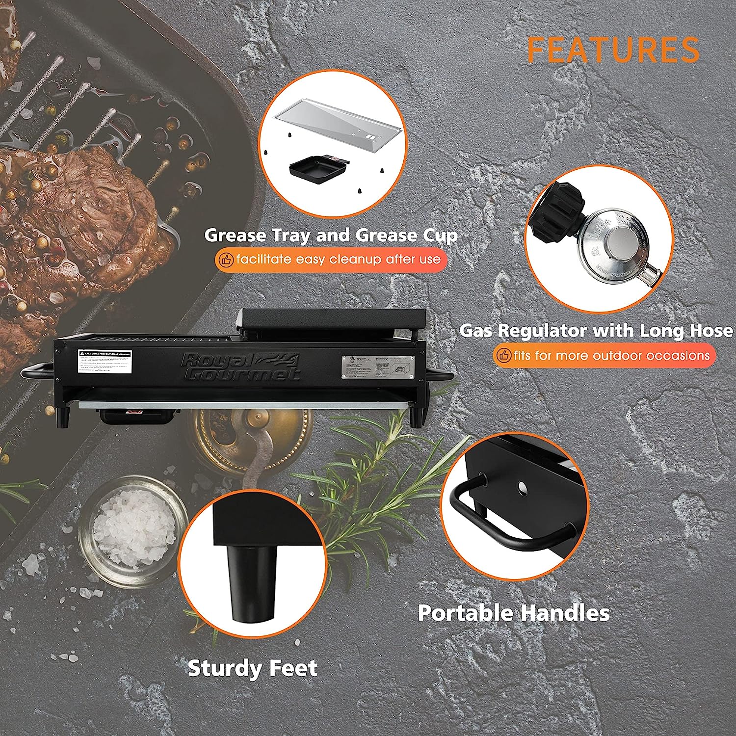 Royal Gourmet GD4002T Tailgater Tabletop Gas Grill Griddle, 4-Burner Portable Propane Grill Griddle Combo, 40 000 BTU, Black
