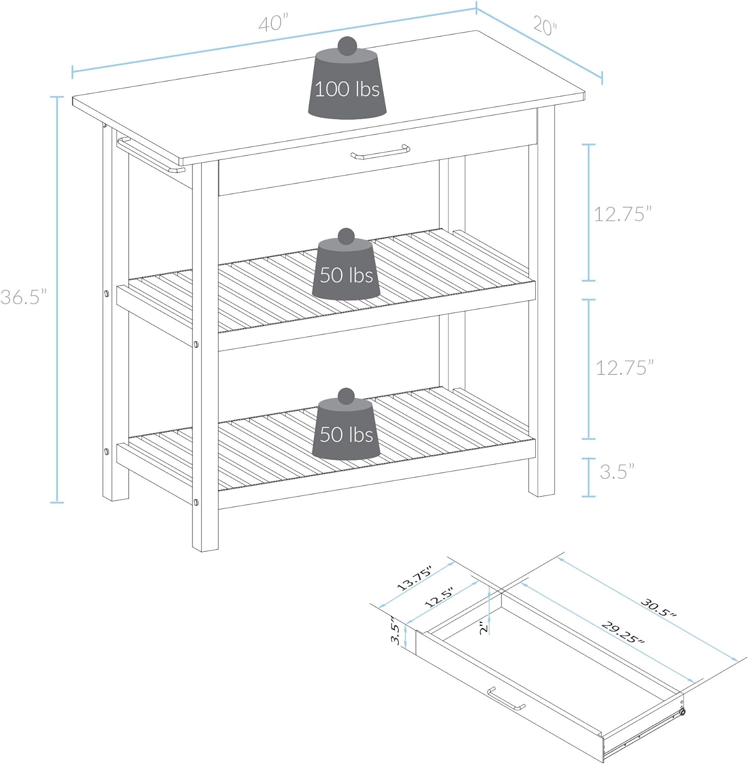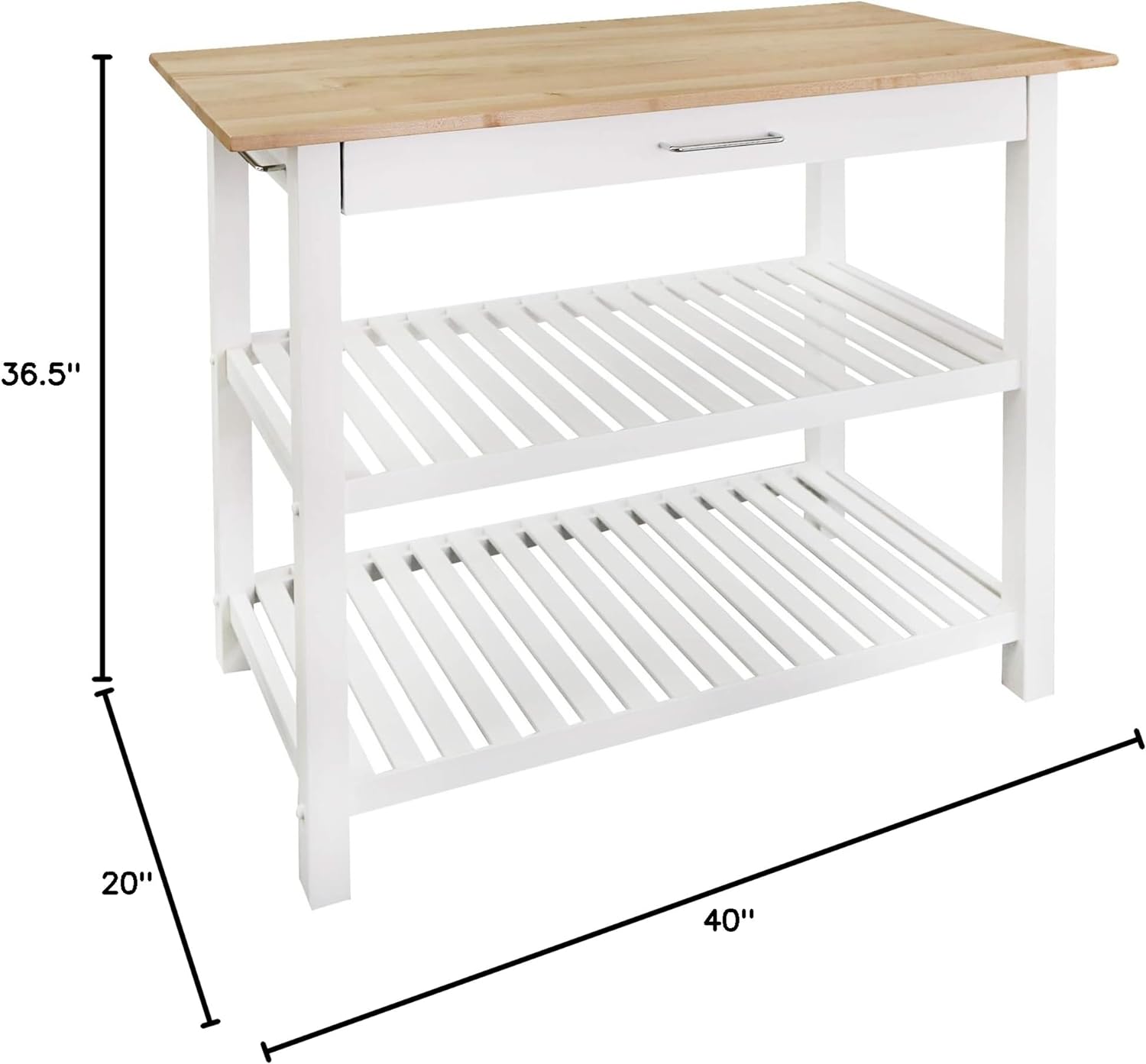 Casual Home Solid Hardwood Top, Natural/White, 40 W (373-91) Kitchen Island, Natural White