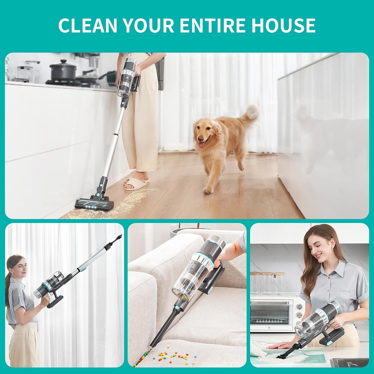 Belife BVC11 Cordless Vacuum Cleaner, 25Kpa Stick Vacuum Cleaners, LED Touch Display, Blue