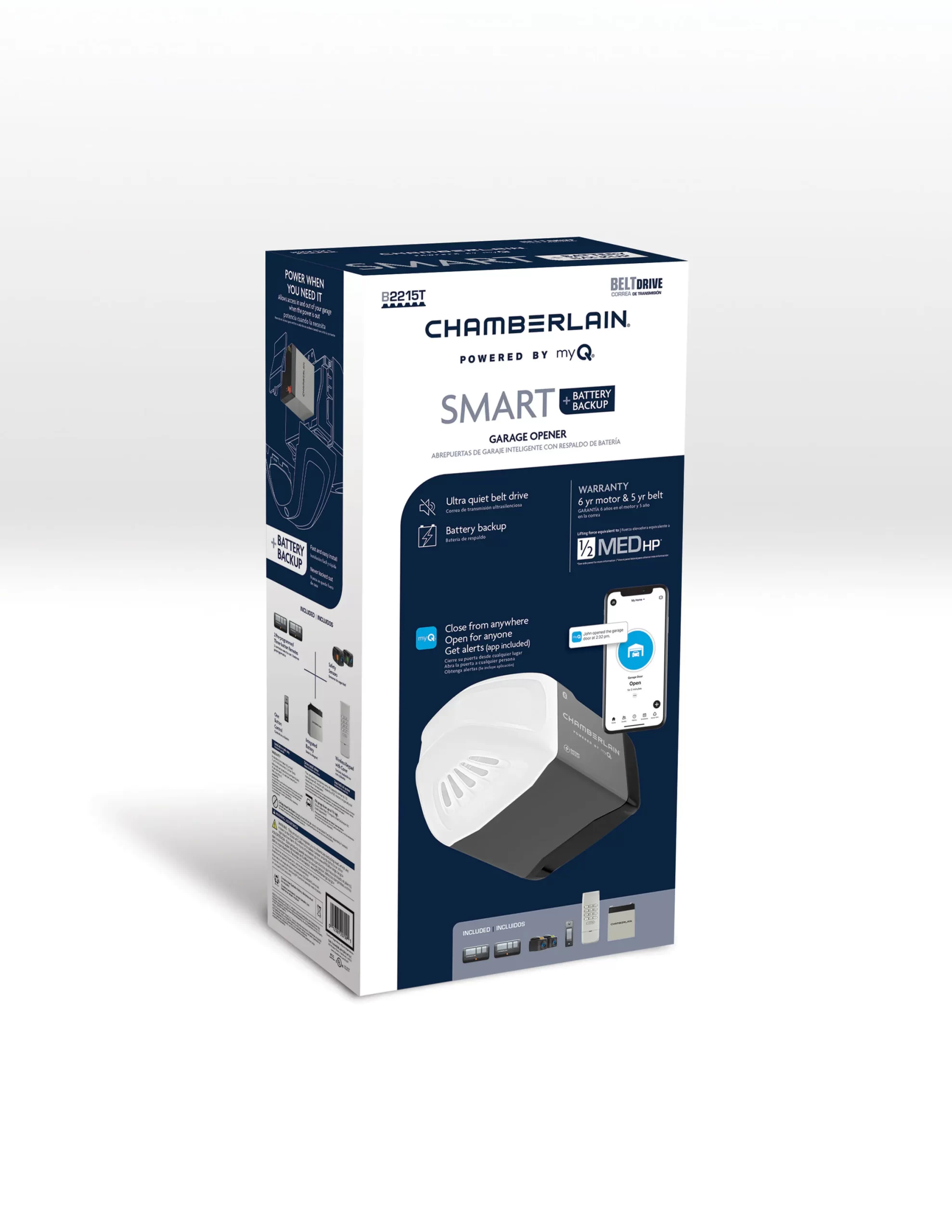 Chamberlain 1/2-HP Ultra-Quiet Smart Belt Drive Garage Door Opener Wi-fi Compatibility Battery Back-up
