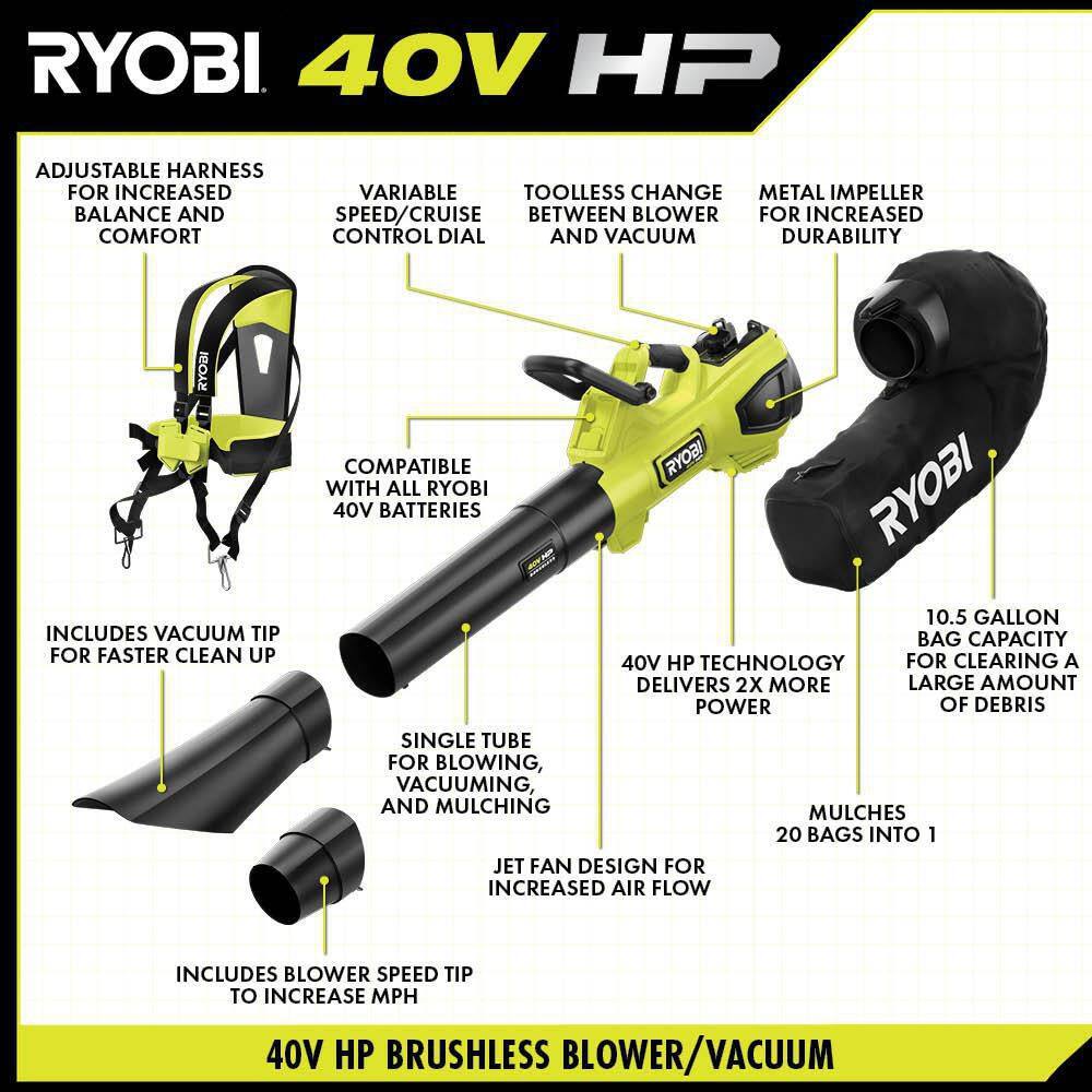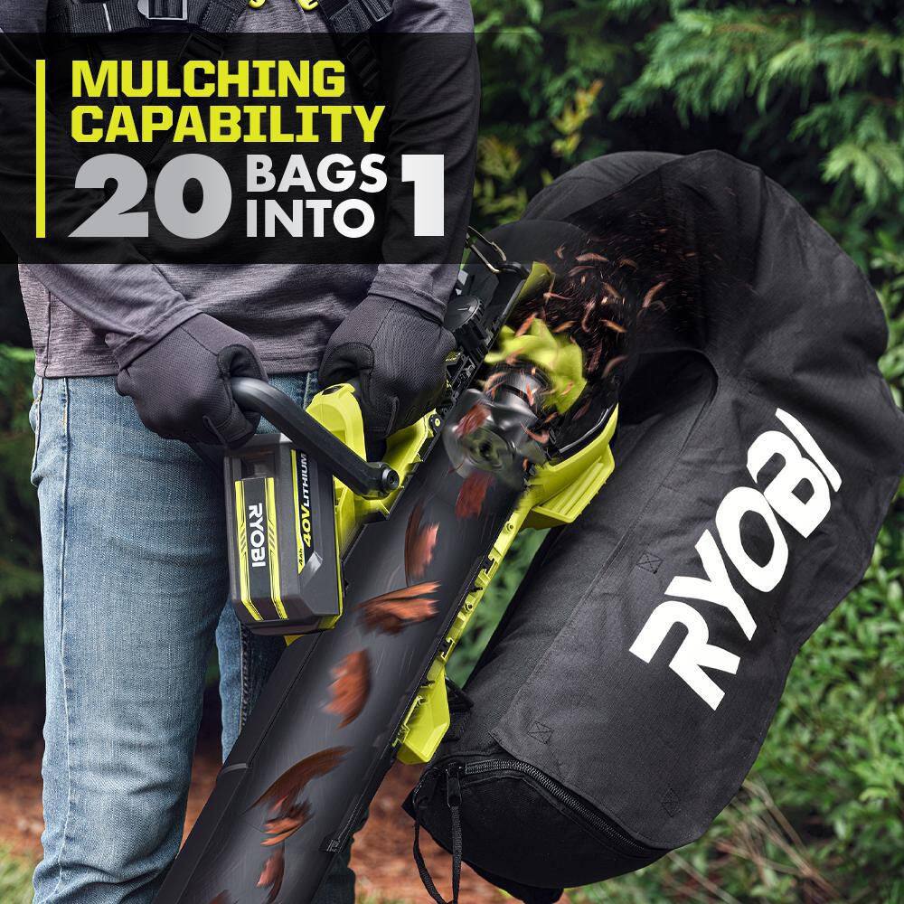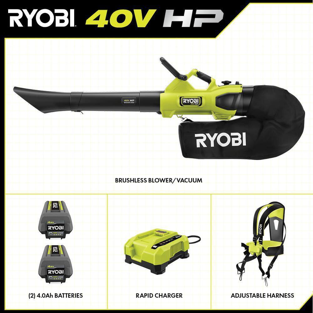 RYOBI RY404150 40V HP Brushless 100 MPH 600 CFM Cordless Leaf Blower/Mulcher/Vacuum with (2) 4.0 Ah Batteries and Charger