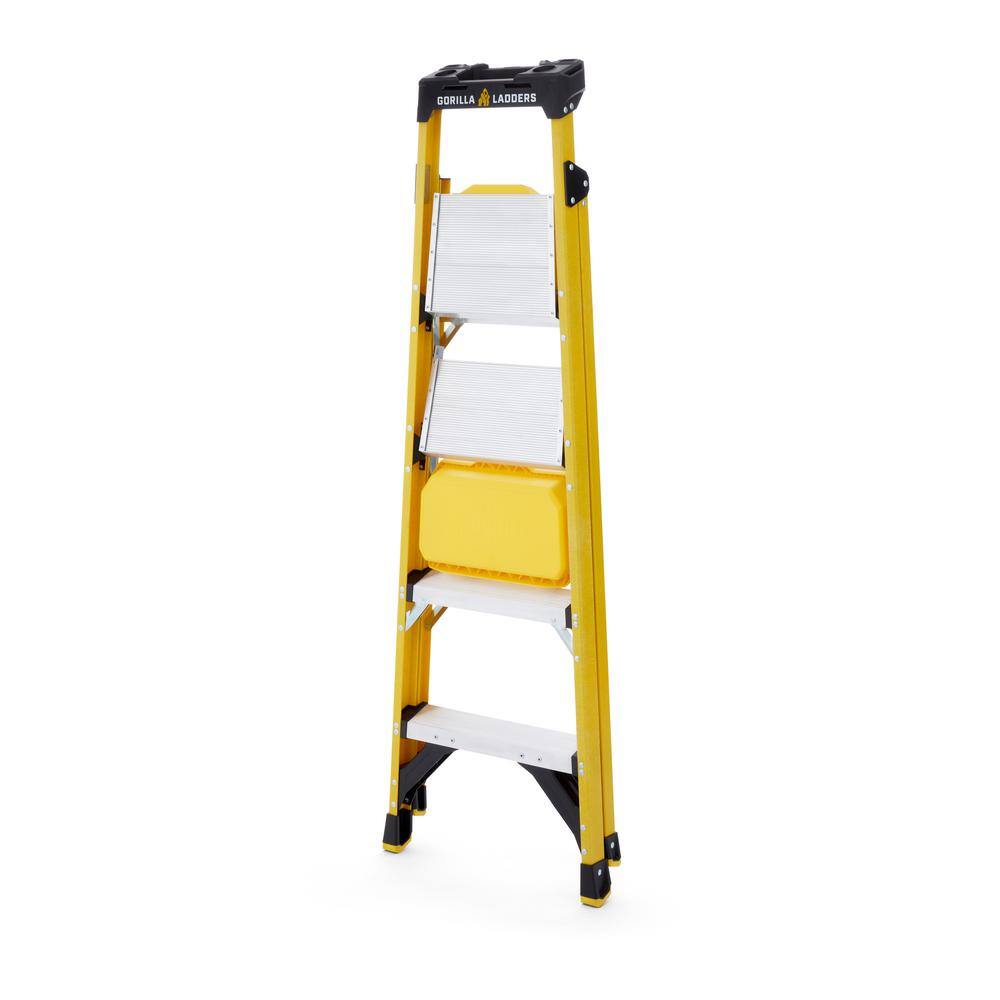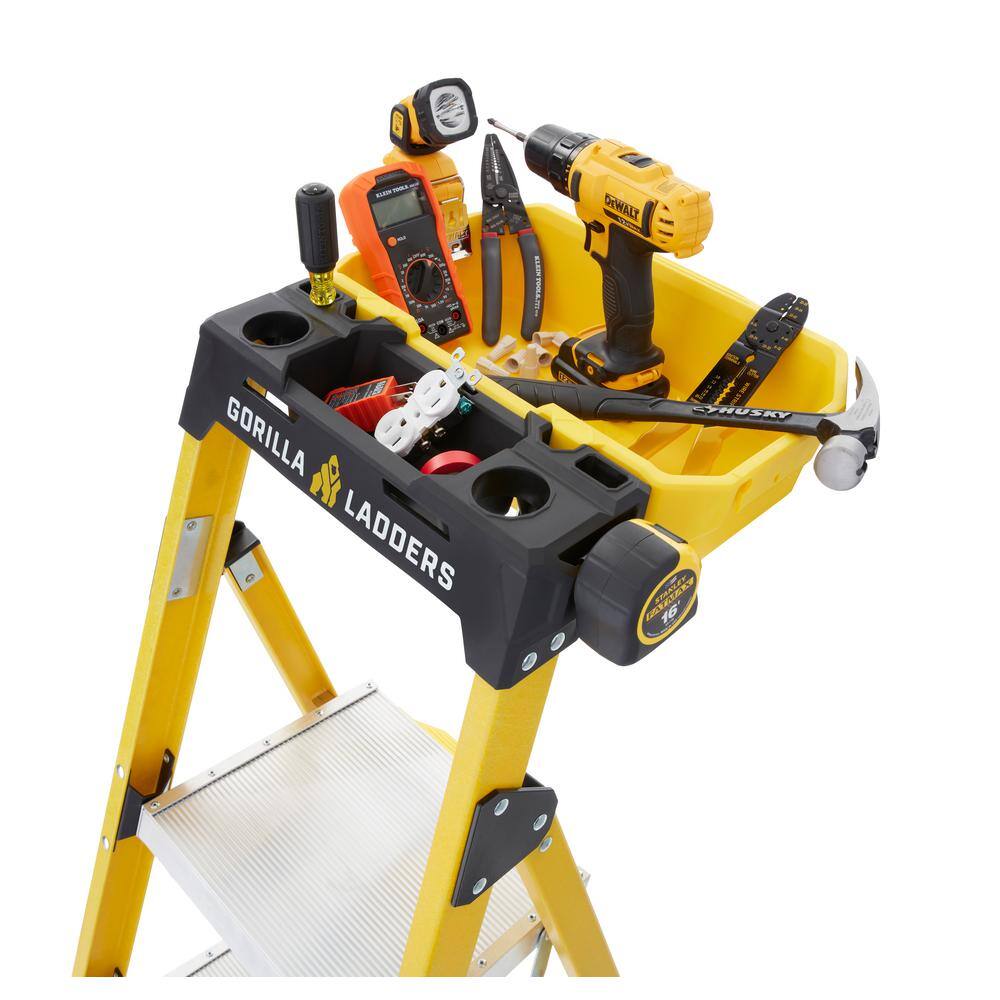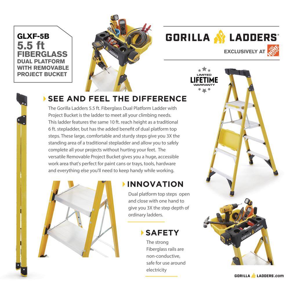 Gorilla Ladders GLXF-5B 5.5 ft. Fiberglass Dual Platform Step Ladder with Project Bucket (10 ft. Reach), 300 lbs. Capacity Type IA Duty Rating