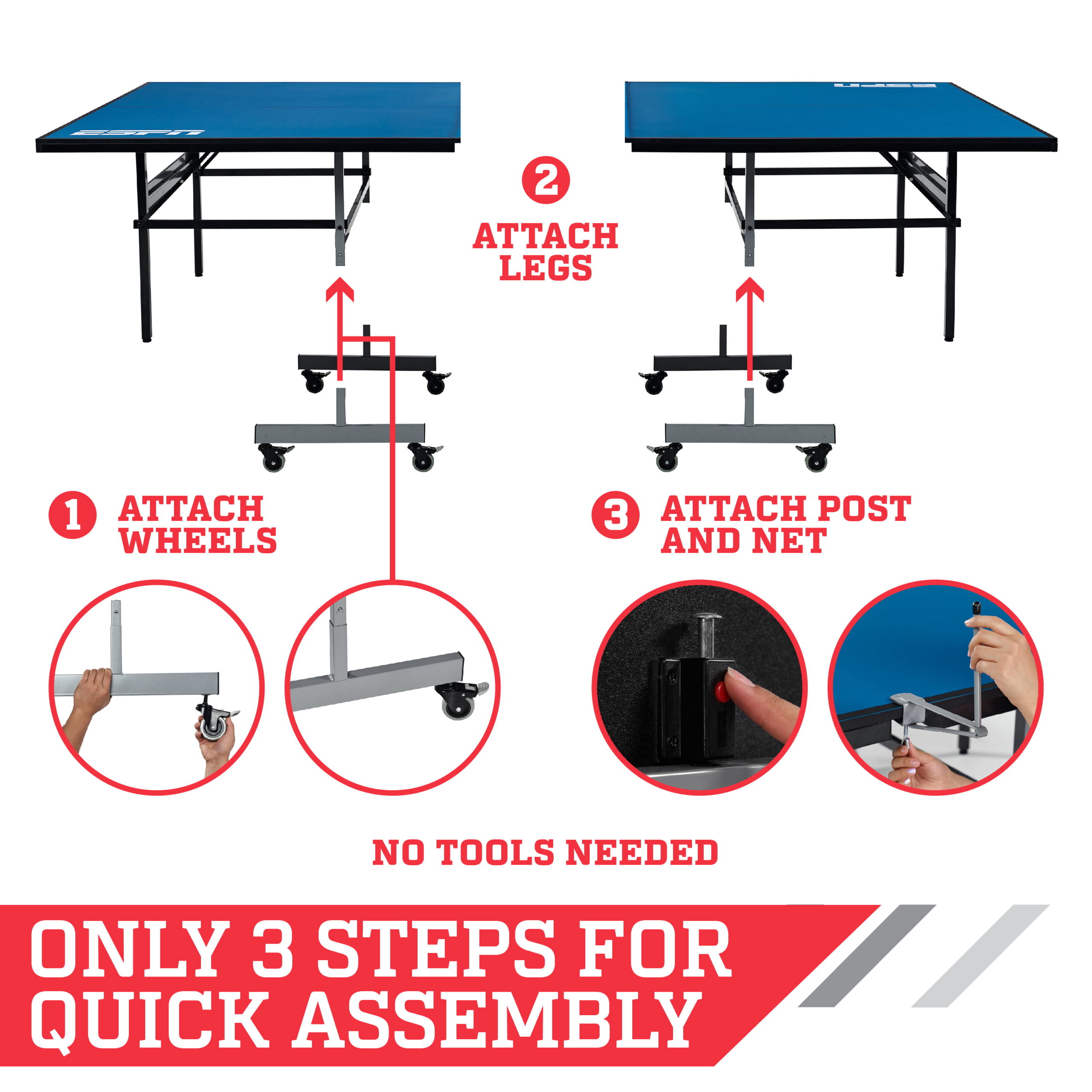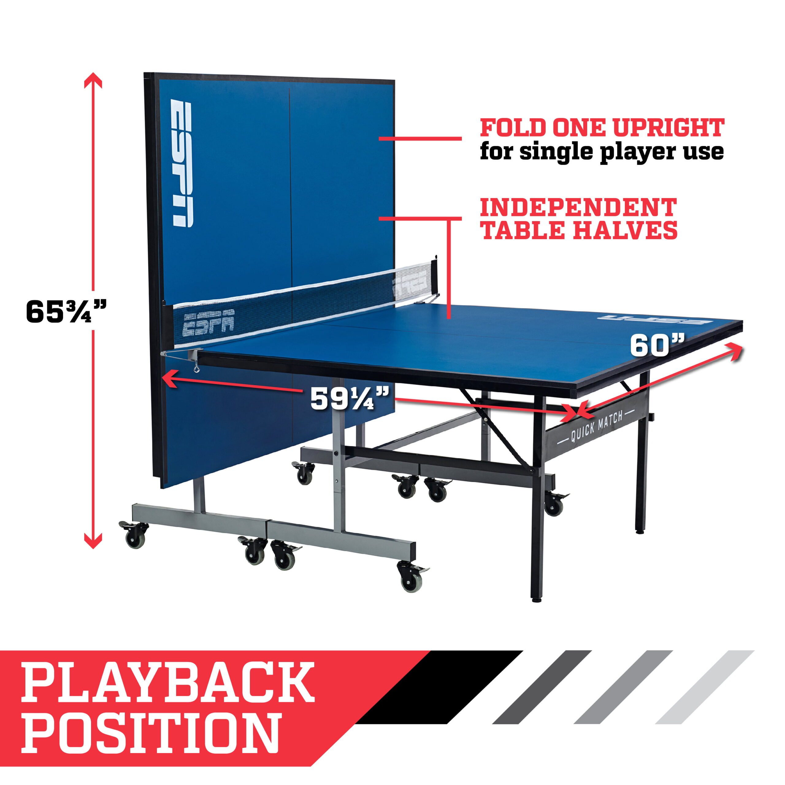 ESPN Official Size 2 Piece 15mm Indoor Quick Match Table Tennis Table, Blue