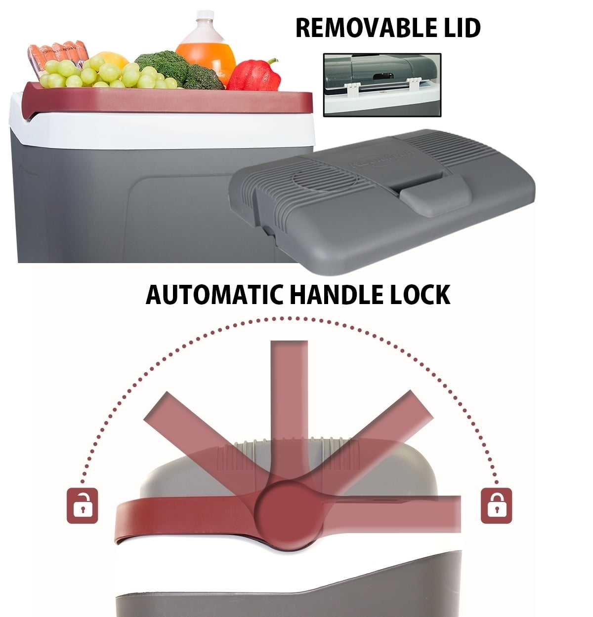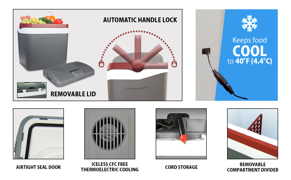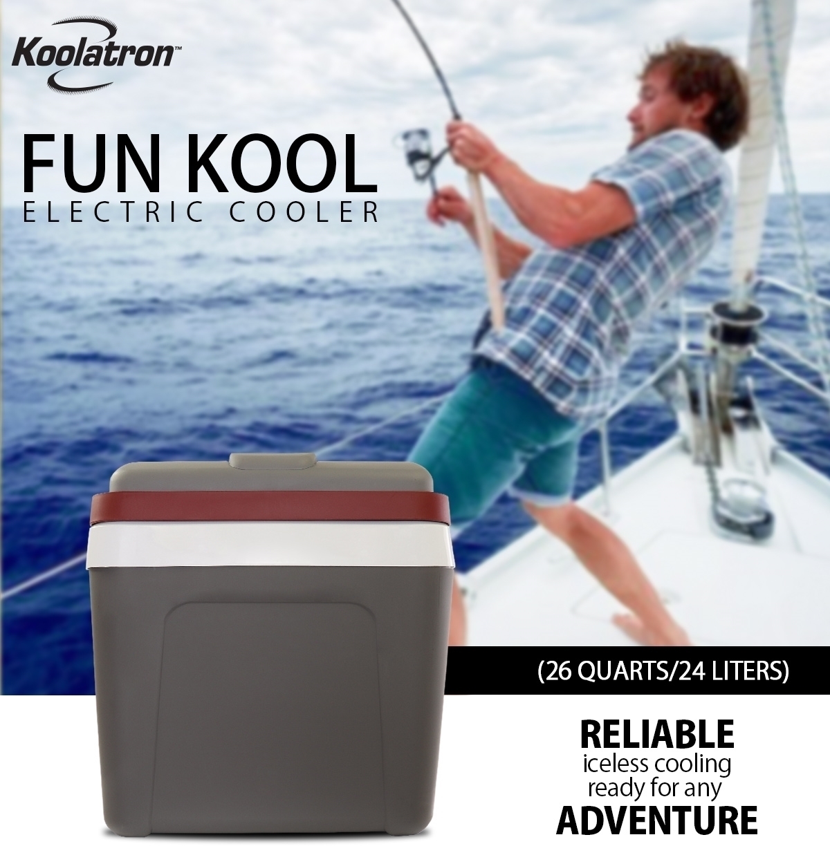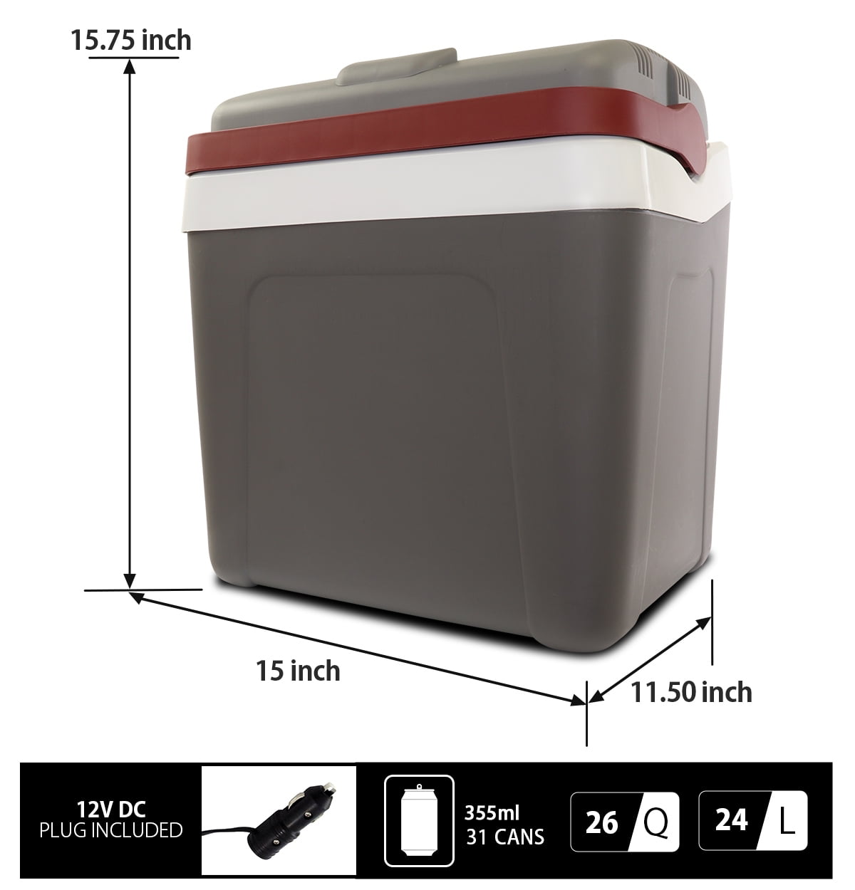 Koolatron P25 Iceless Electric Cooler 12V 24L / 26 qt Portable Ice Chest Fridge Grey and Red