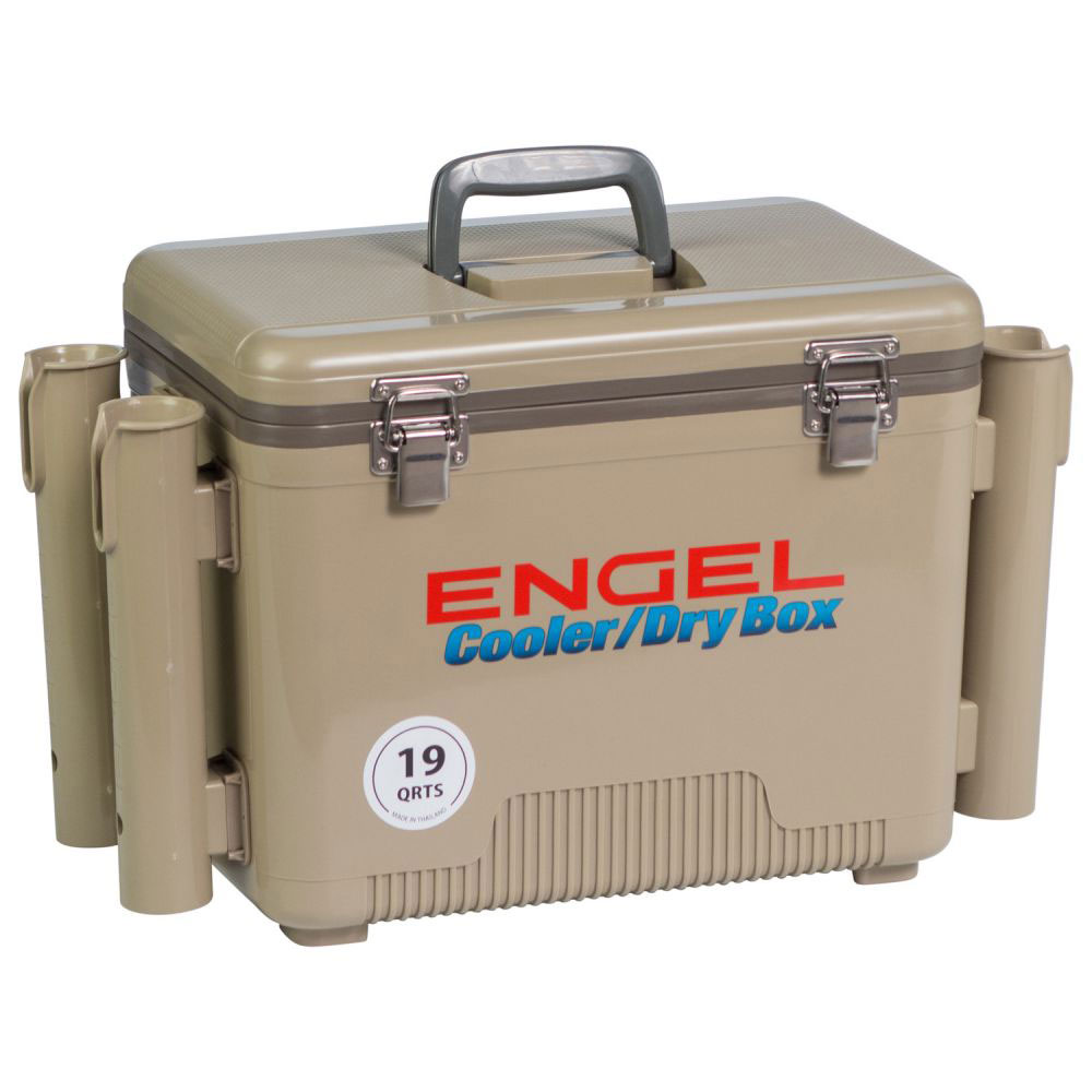 Engel 19 Quart Fishing Rod Holder Attachment Insulated Dry Box Ice Cooler, Tan