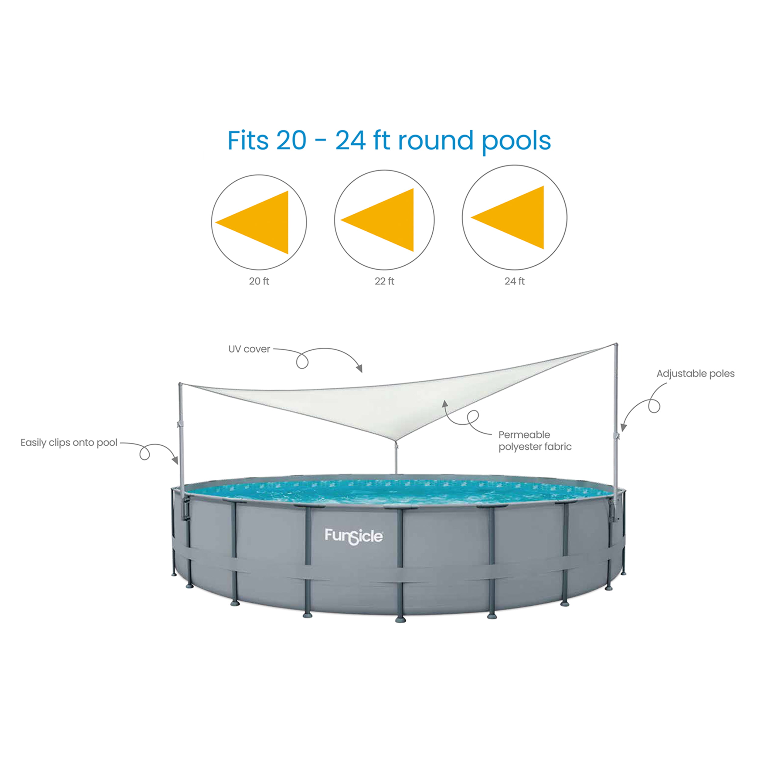Funsicle Above Ground Swimming Pool Canopy, Sun Shade, White, Triangular, Adults, Unisex