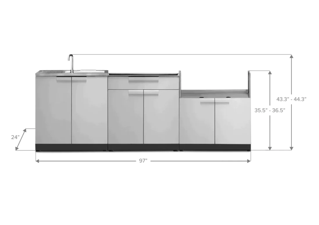 NewAge Outdoor Kitchen 3-Piece Cabinet Set with Sink, Bar and 36in Grill Cabinet