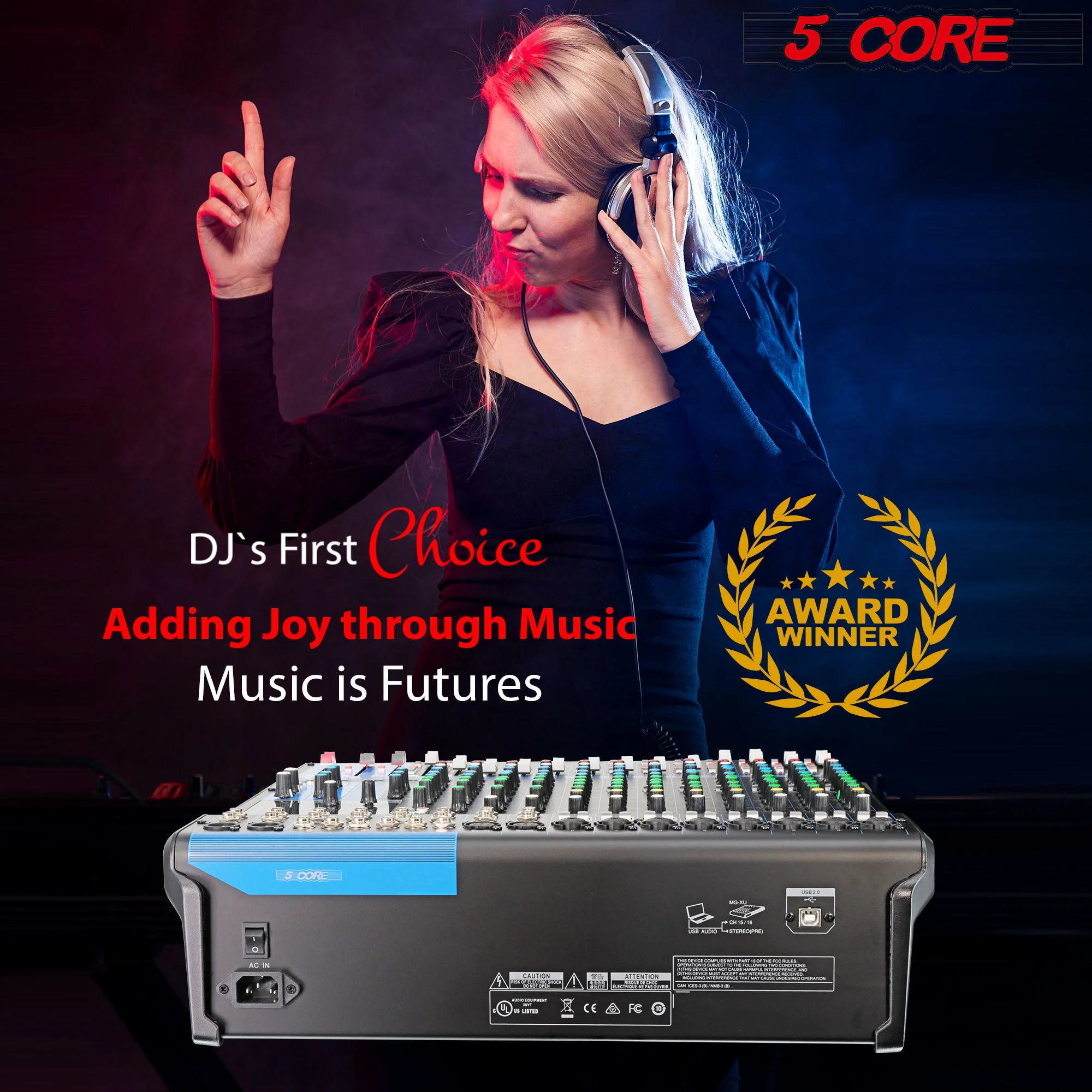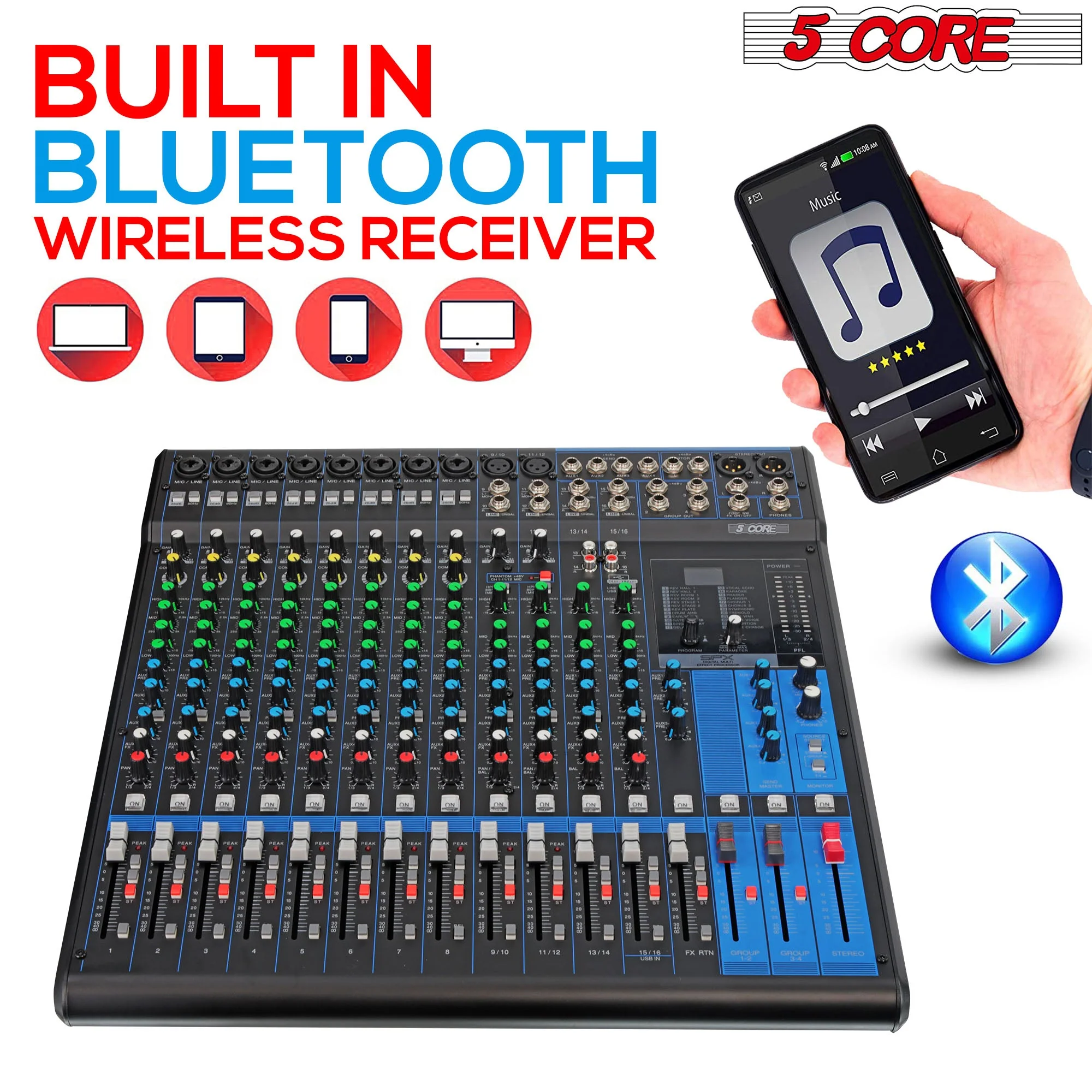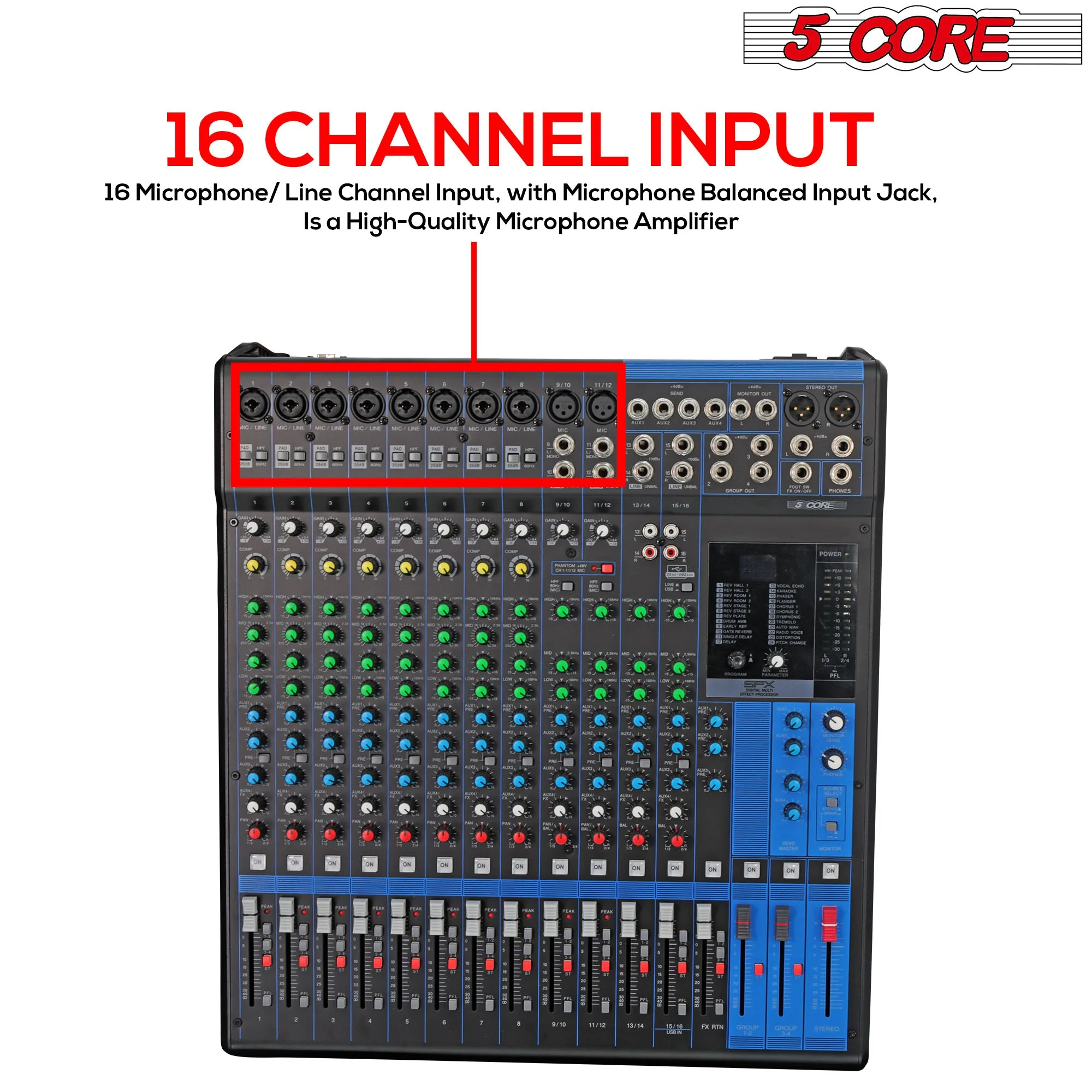 5 Core Audio Mixer DJ Equipment Digital Sound Board MX 16CH XU