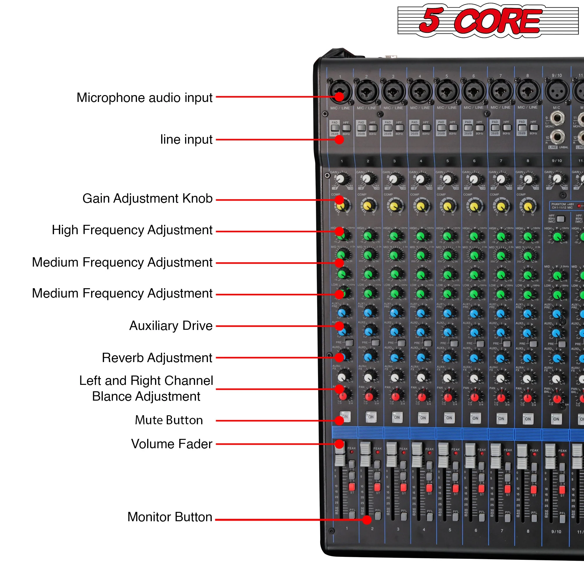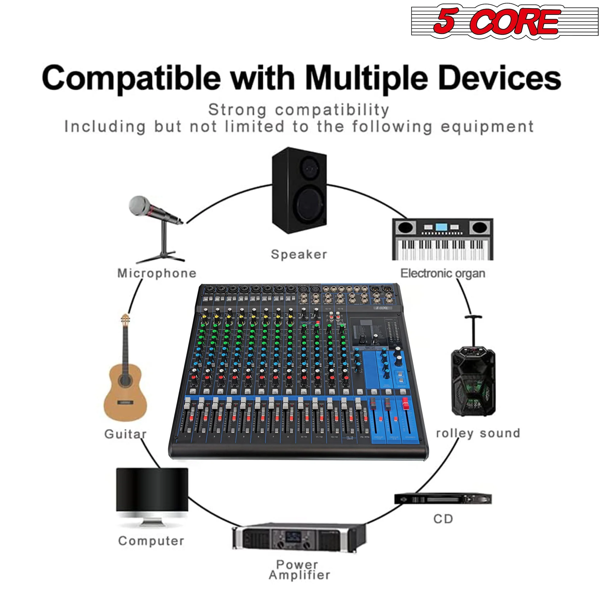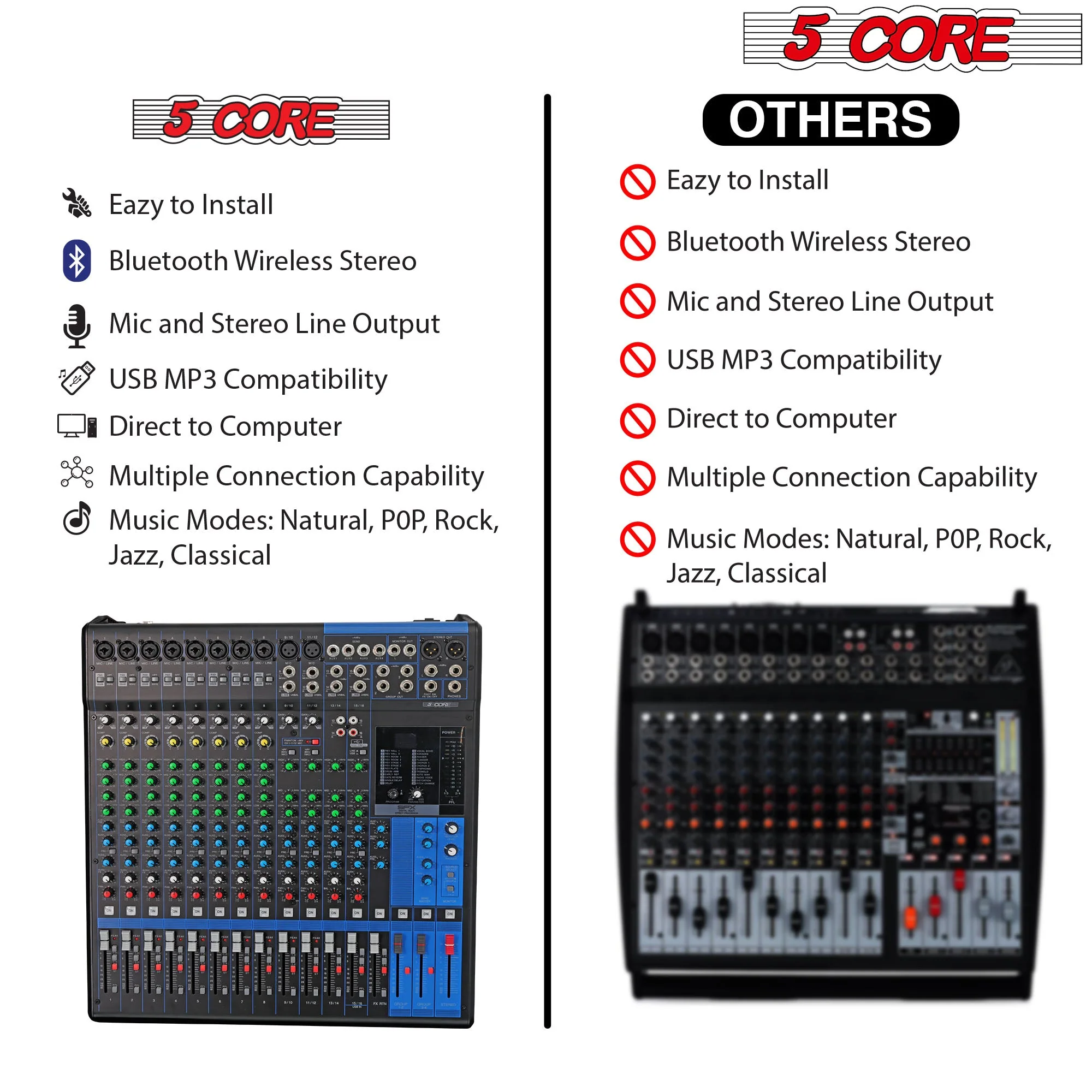 5 Core Audio Mixer DJ Equipment Digital Sound Board MX 16CH XU