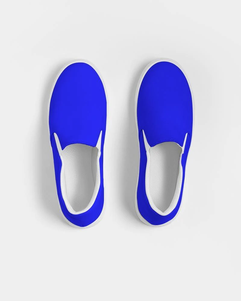 Casual Sneakers, Royal Blue Low Top Canvas Slip-on Sports Shoes