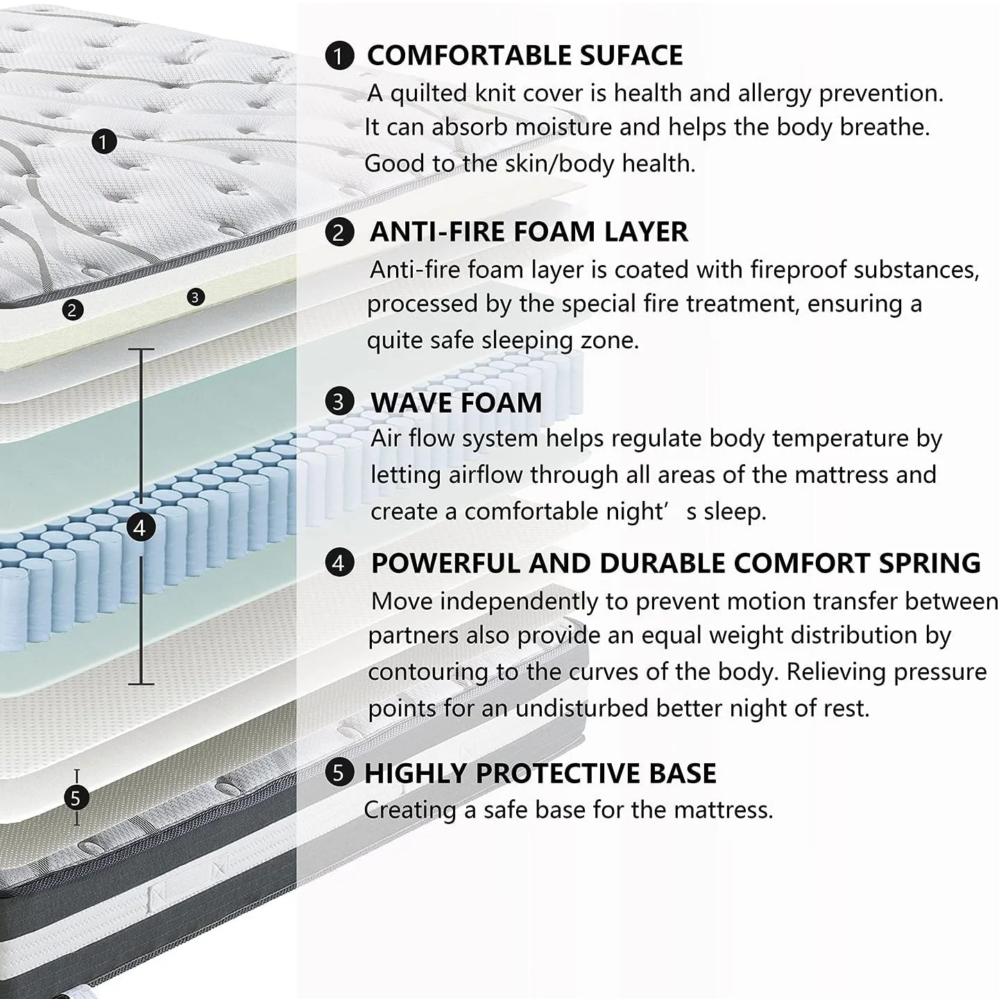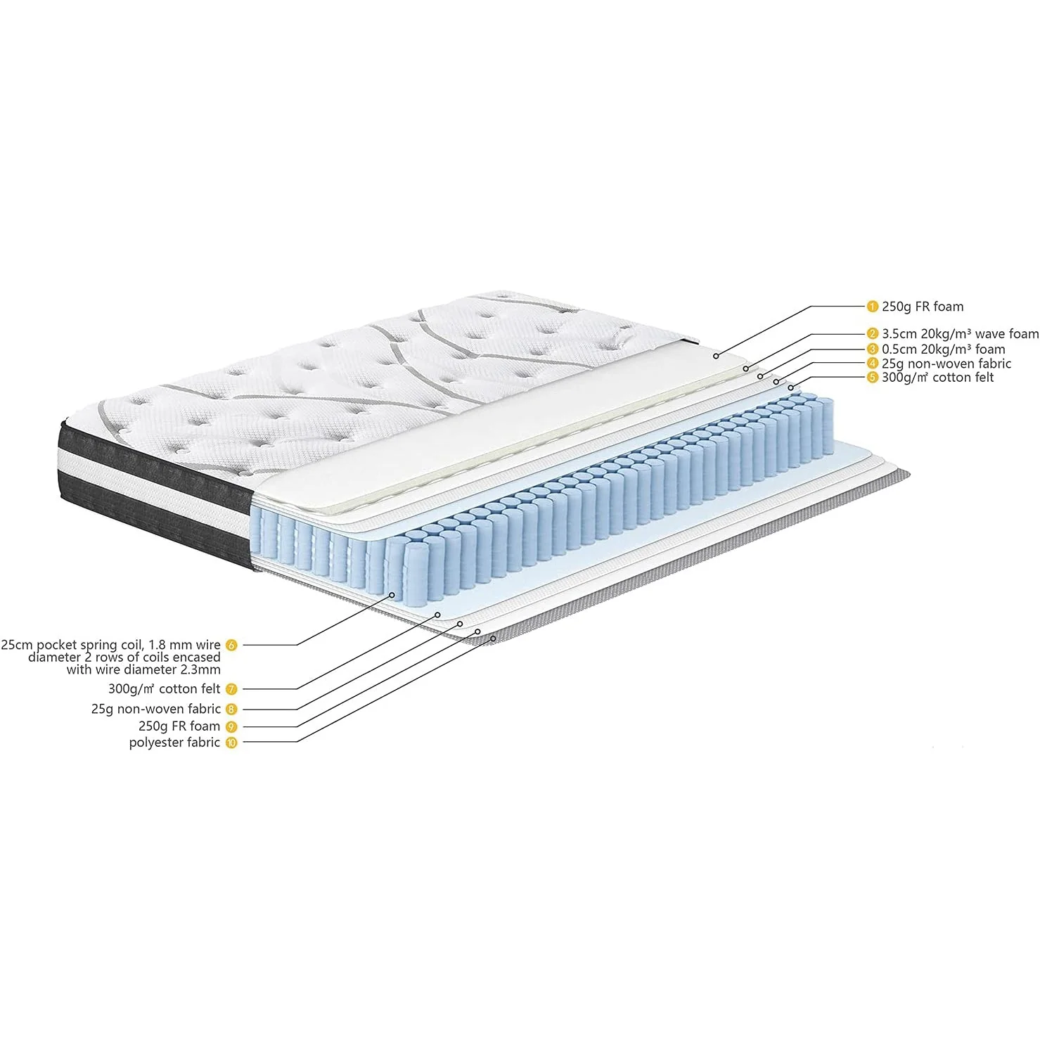 12" Hybrid Pocket Spring Mattress