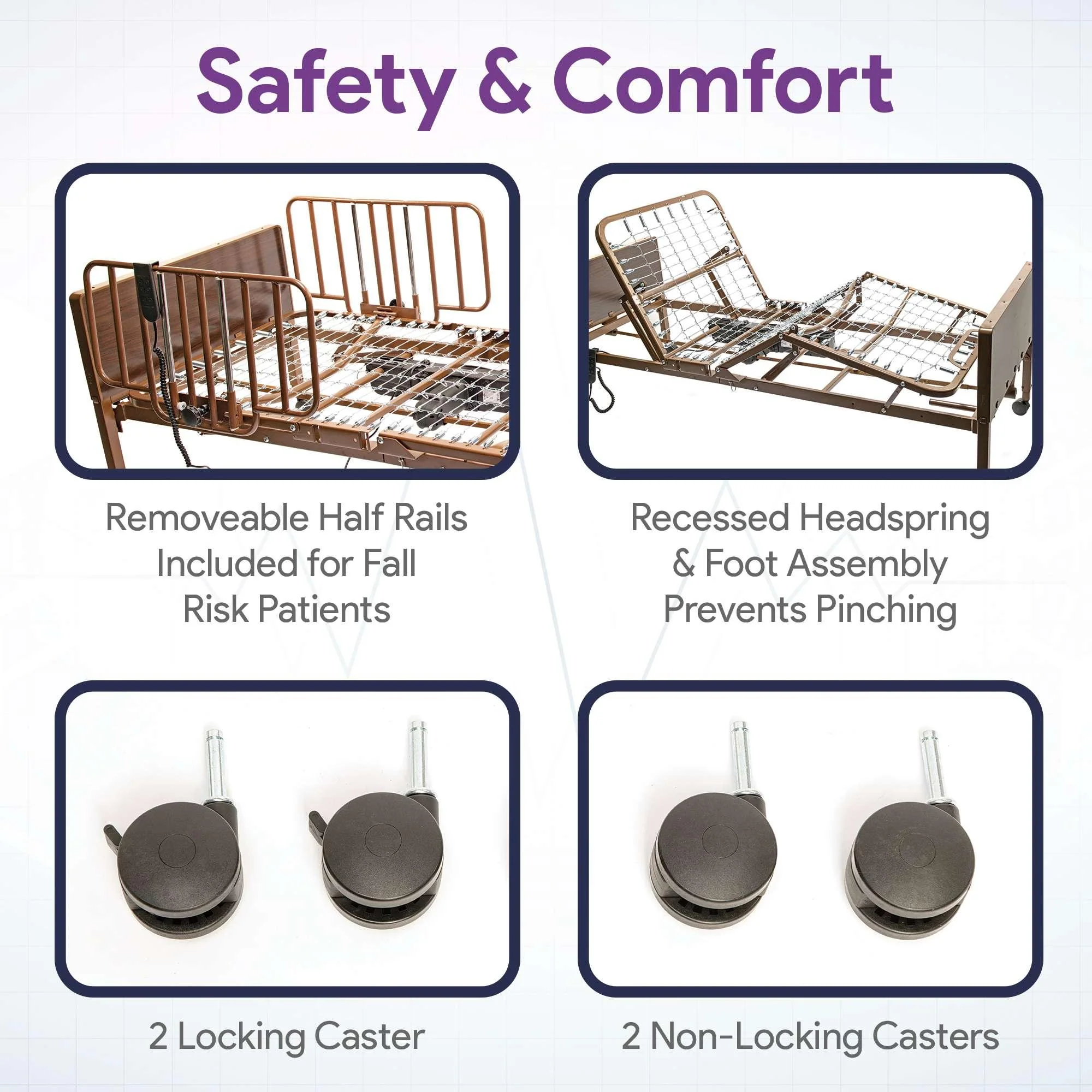 Full Electric Hospital Bed Foam Mattress - Half Rails - 36x80 Adjustable Height