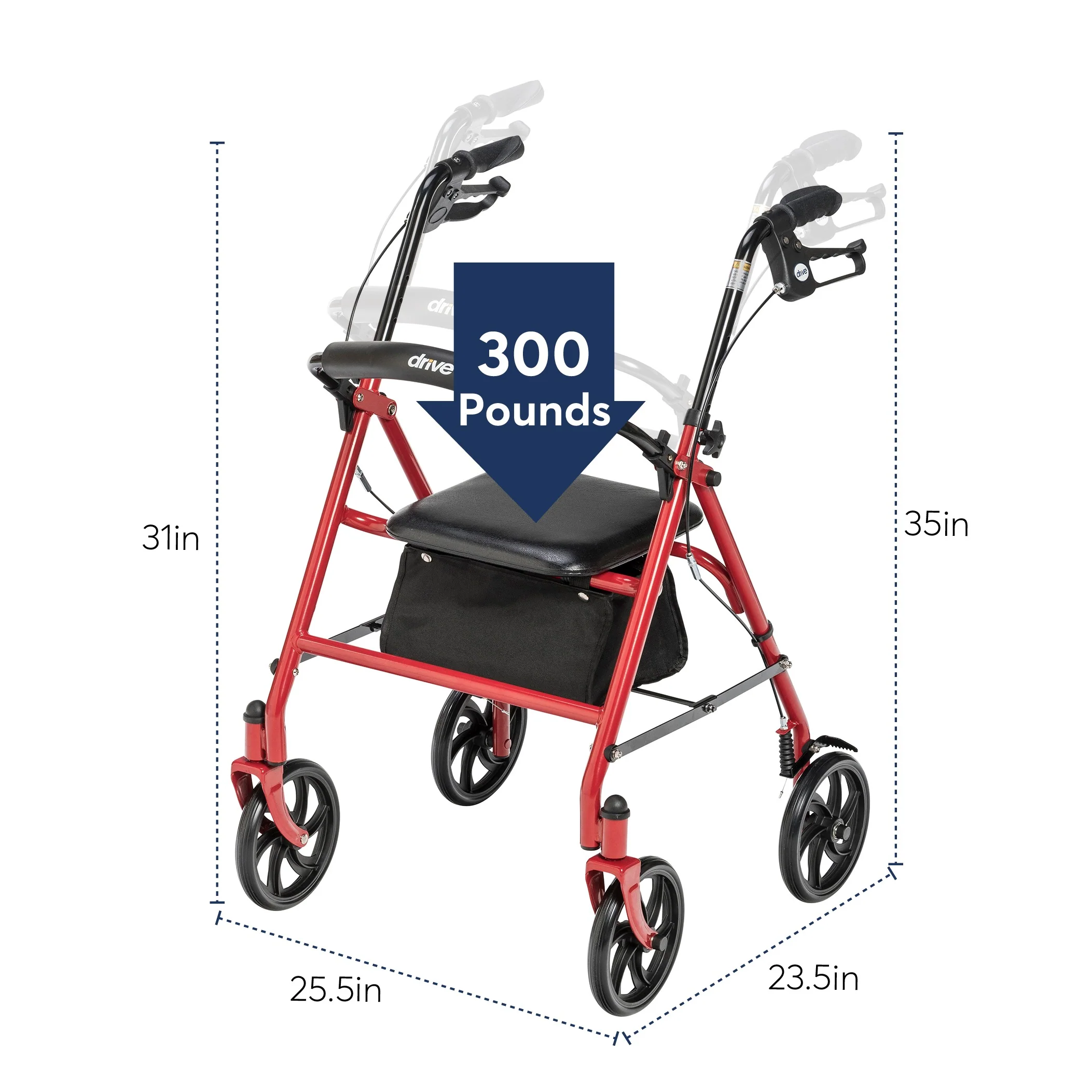 Four Wheel Rollator Rolling Walker with Fold Up Removable Back Support