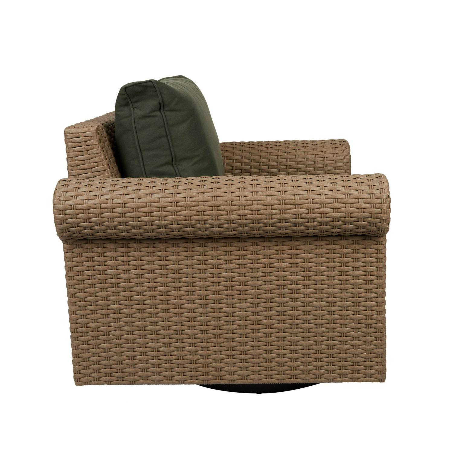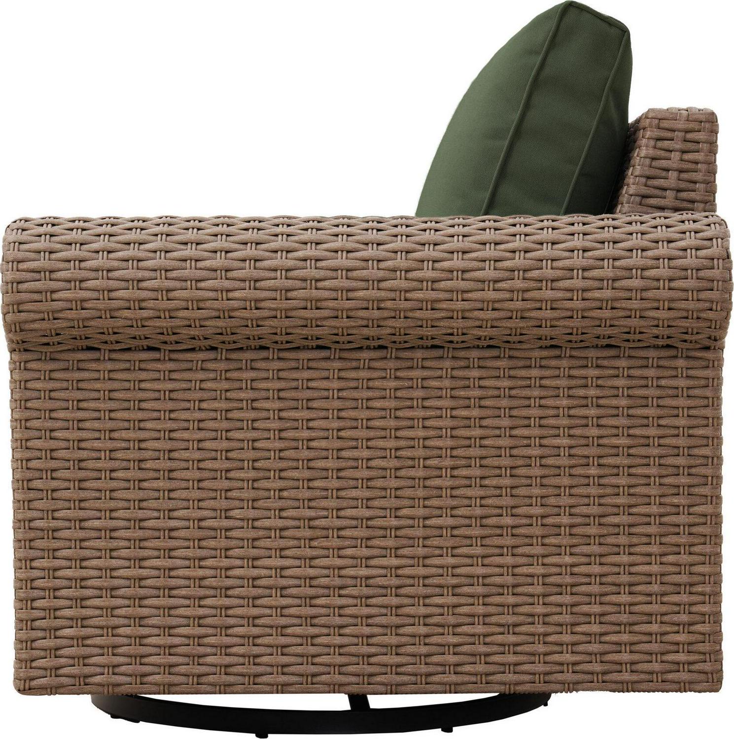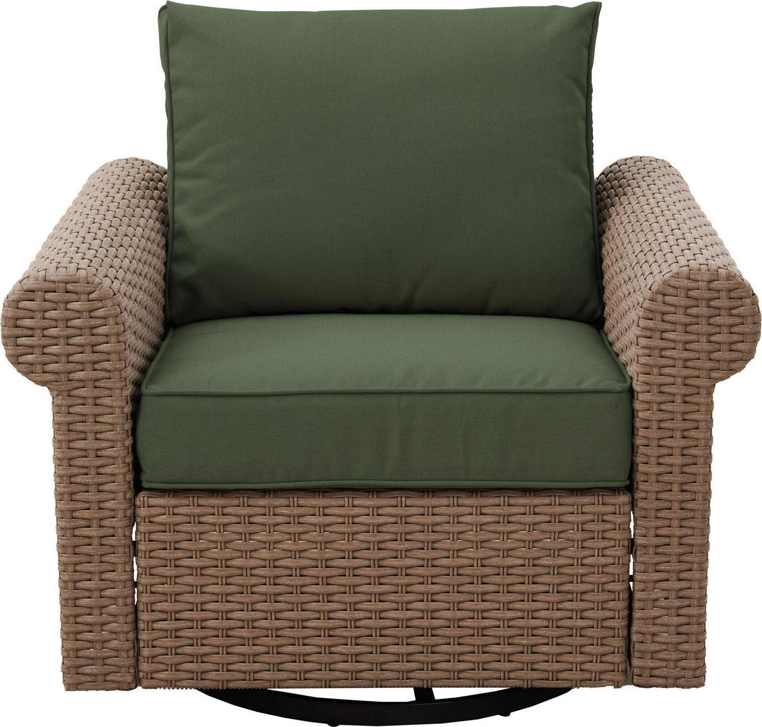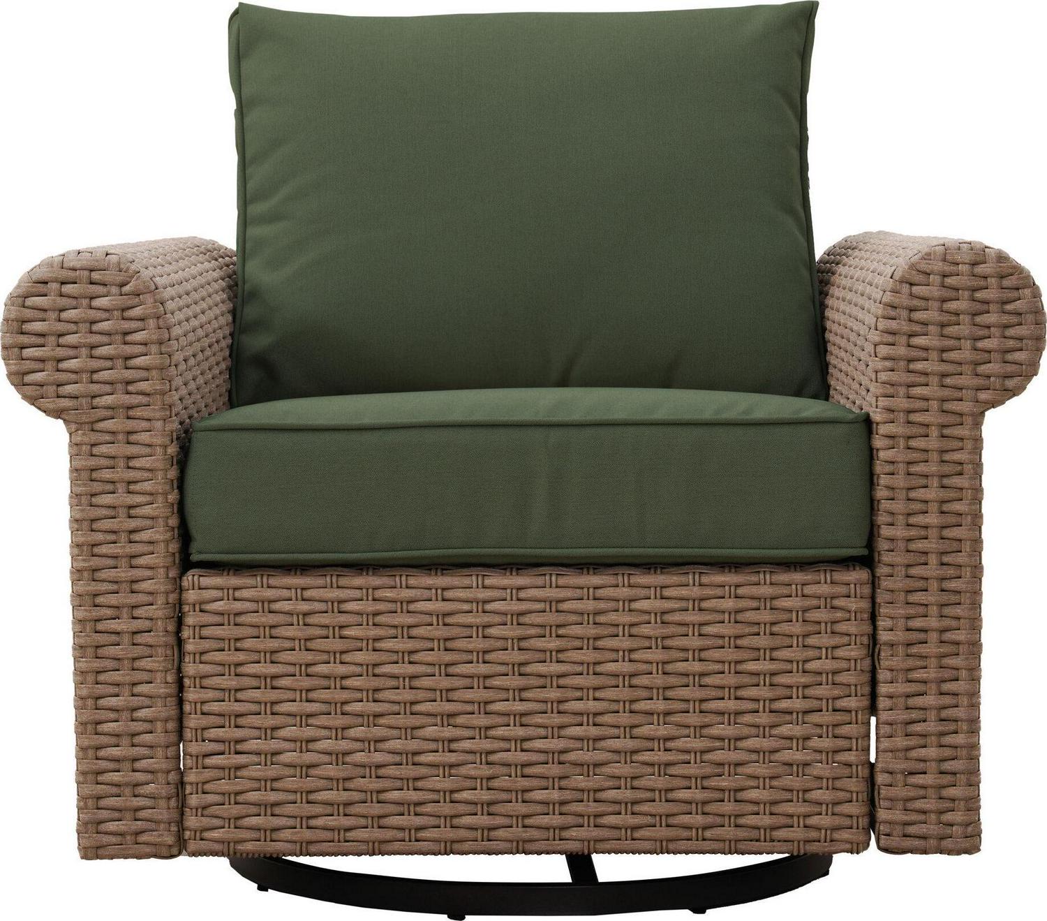 allen + roth Emerald Cove Wicker Brown Steel Frame Swivel Glider Conversation Chair with Green Cushioned Seat