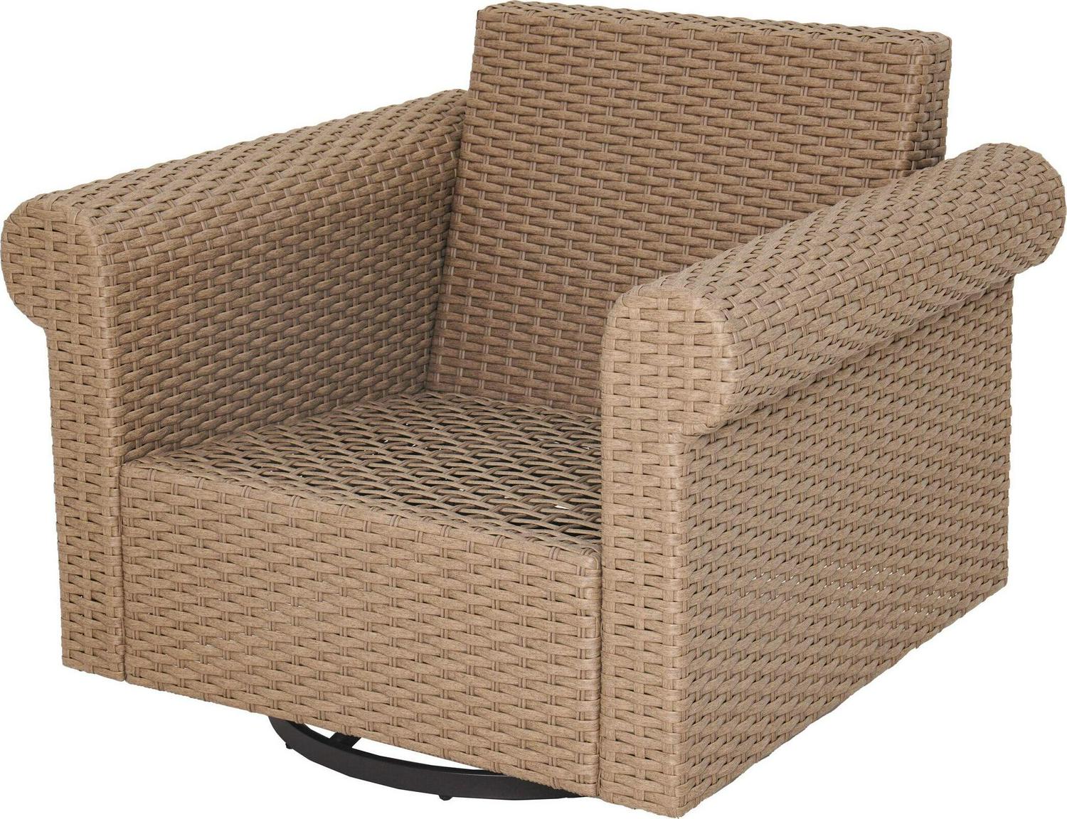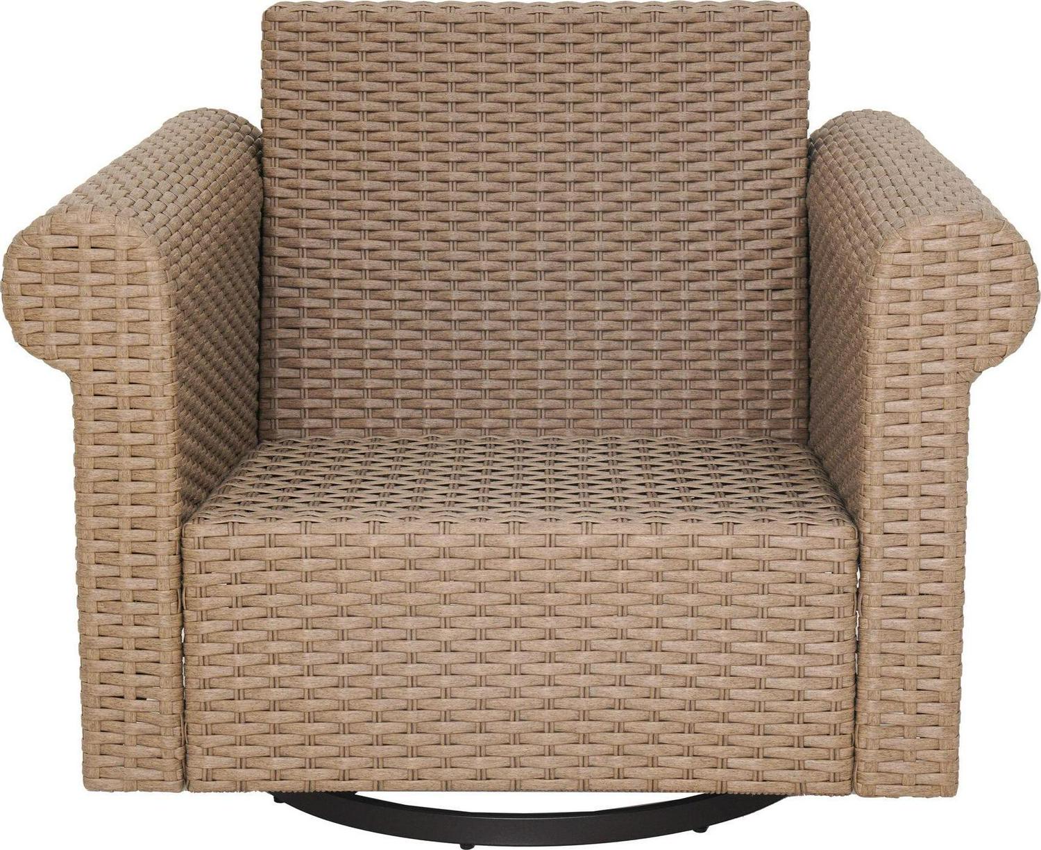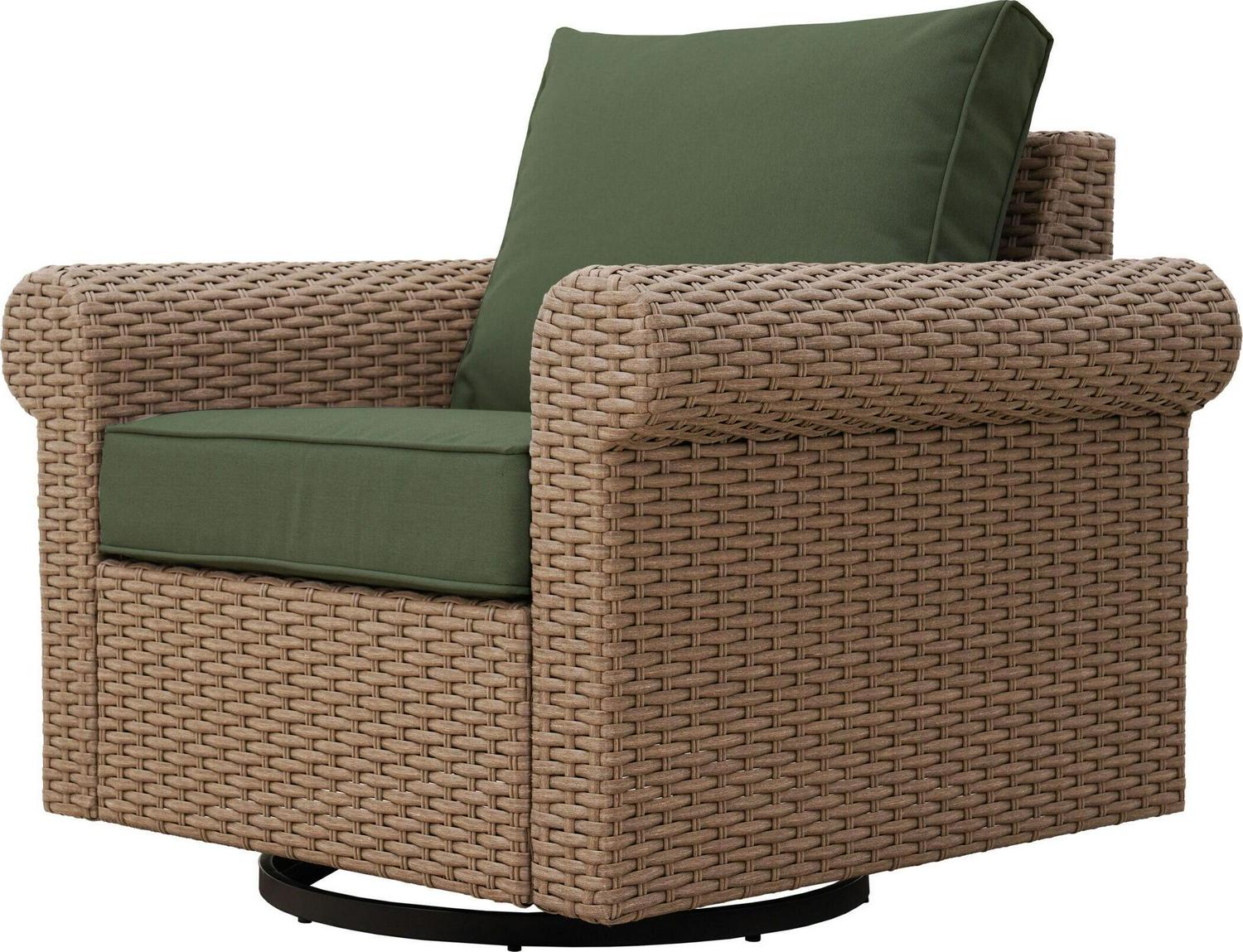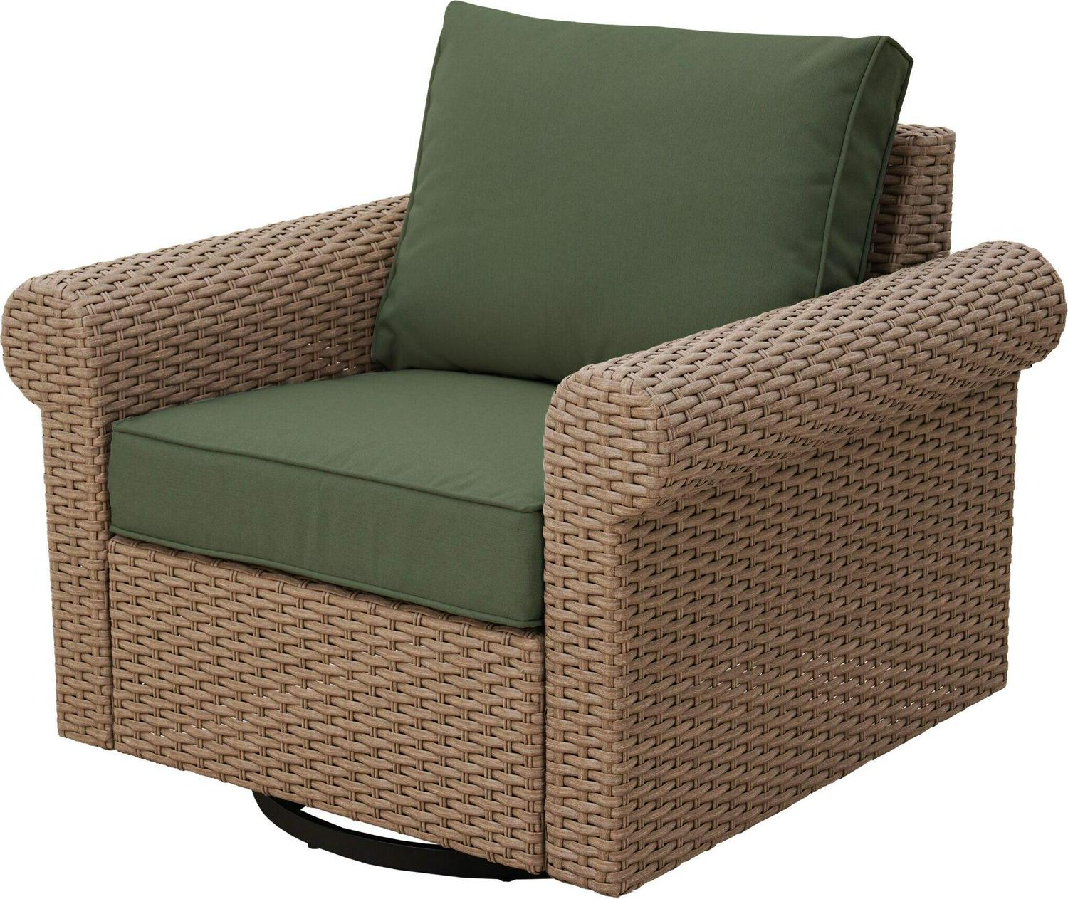 allen + roth Emerald Cove Wicker Brown Steel Frame Swivel Glider Conversation Chair with Green Cushioned Seat