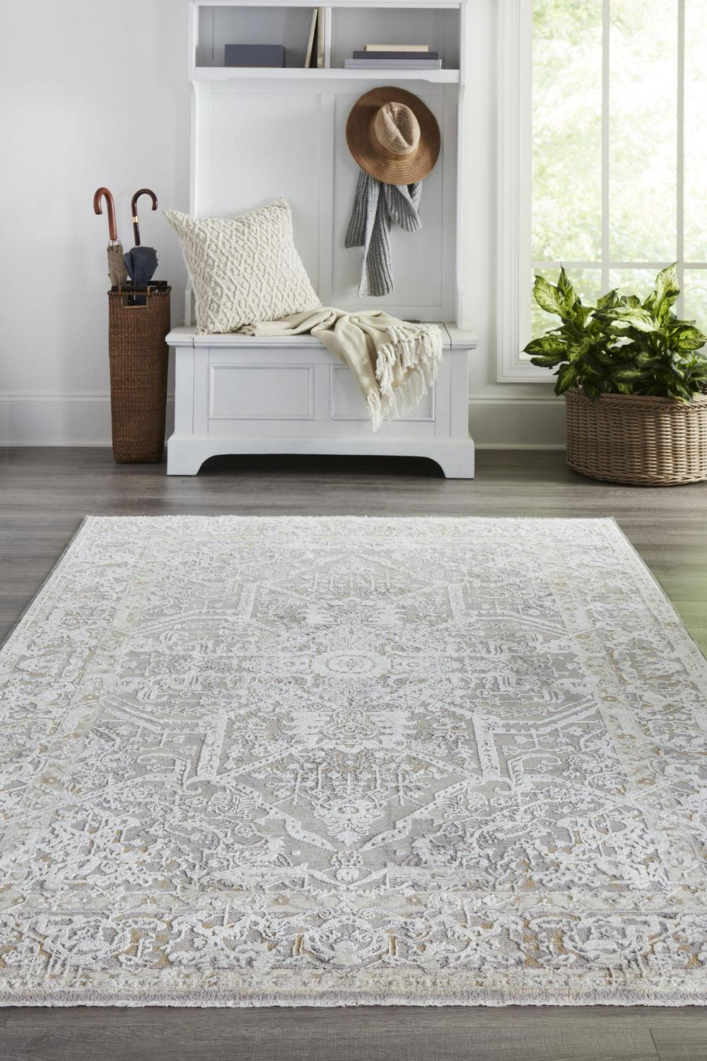 allen + roth Gracen 8 X 10 (ft) Ivory/Light Gray Indoor Distressed/Overdyed Vintage Area Rug