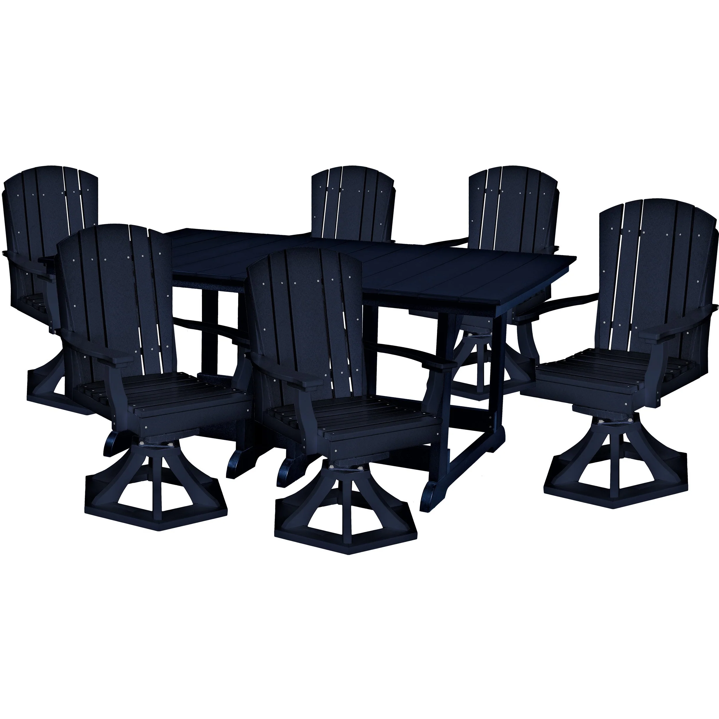 7 pc. Plantation 72x44" Inch Rectangular Dining Table Set With All Swivel Rockers