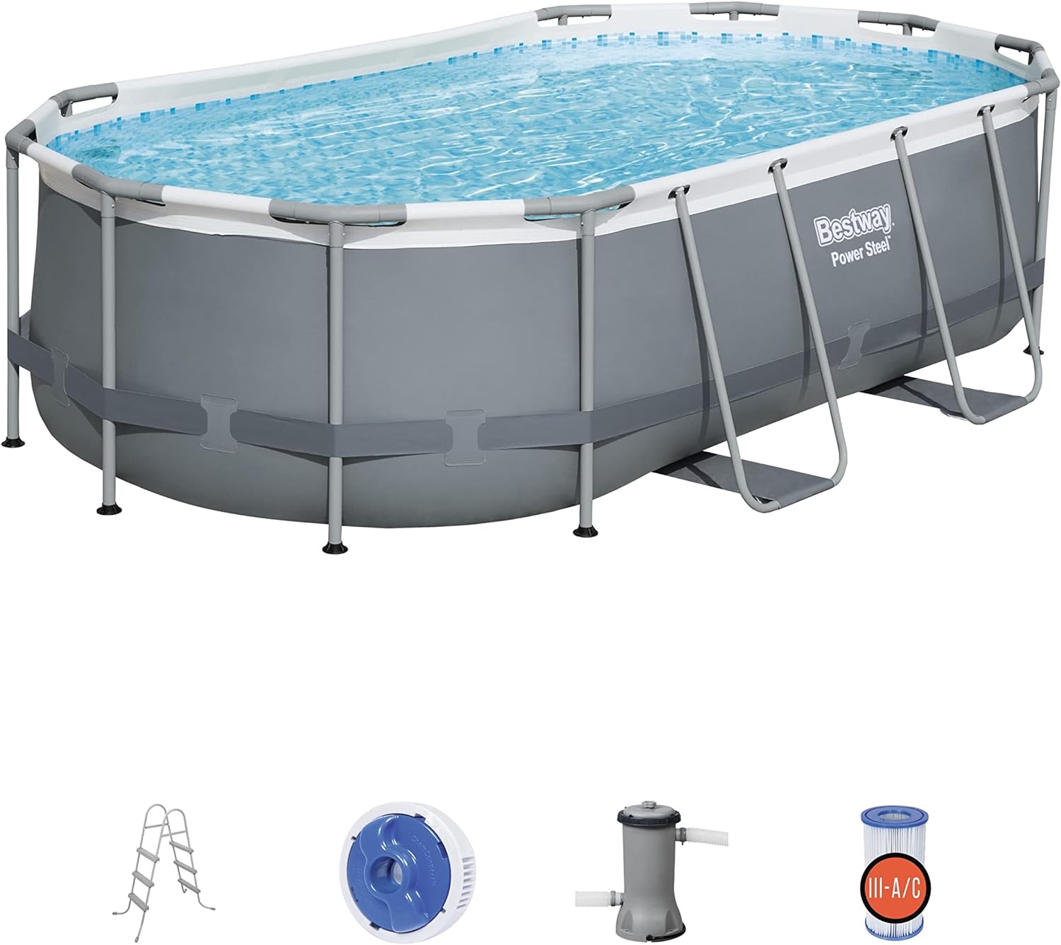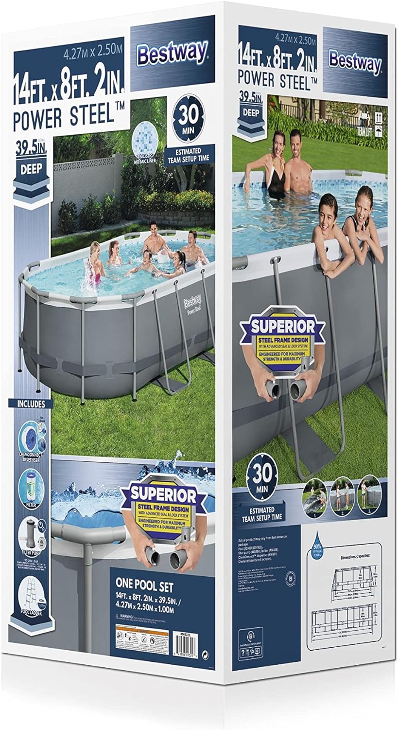 Bestway Power Steel 14 x 8 2 x 39.5 Oval Above Ground Pool Set | Includes 530gal Filter Pump, Ladder, ChemConnect Dispener