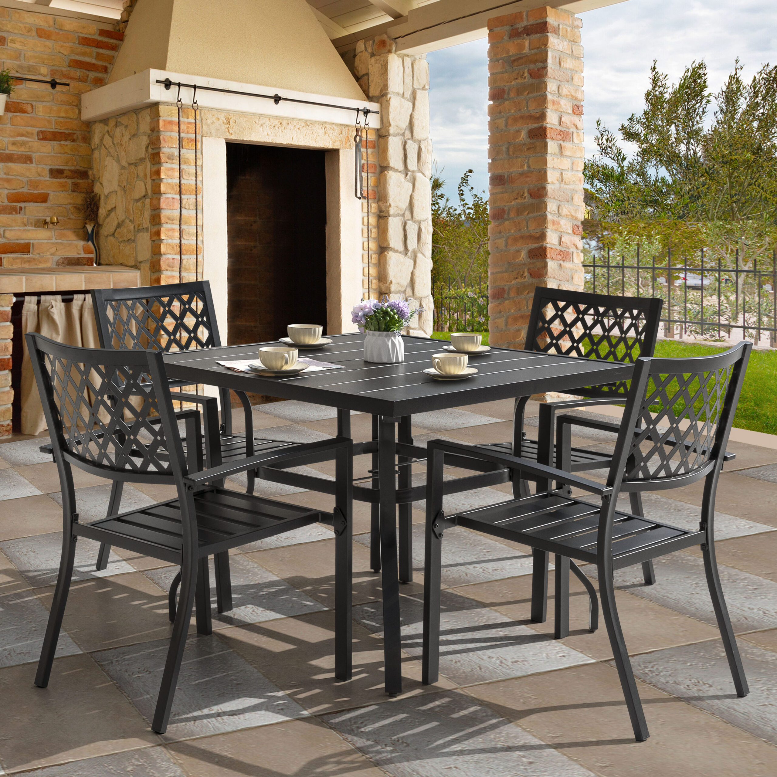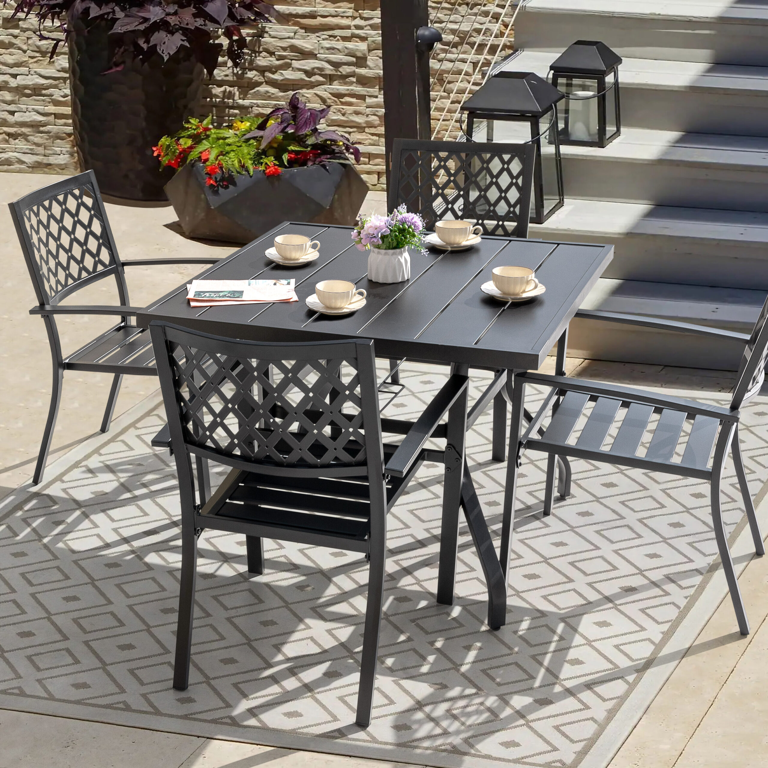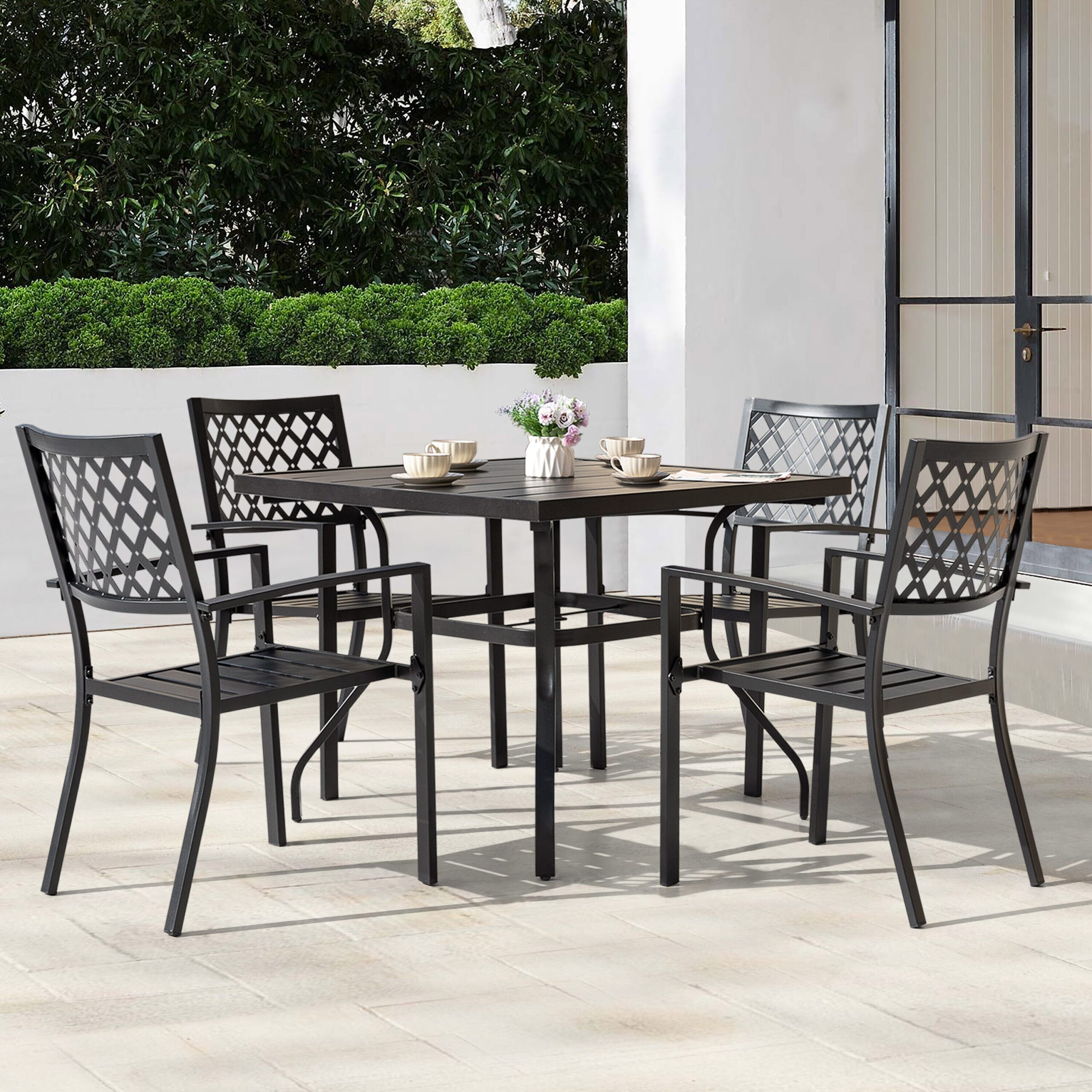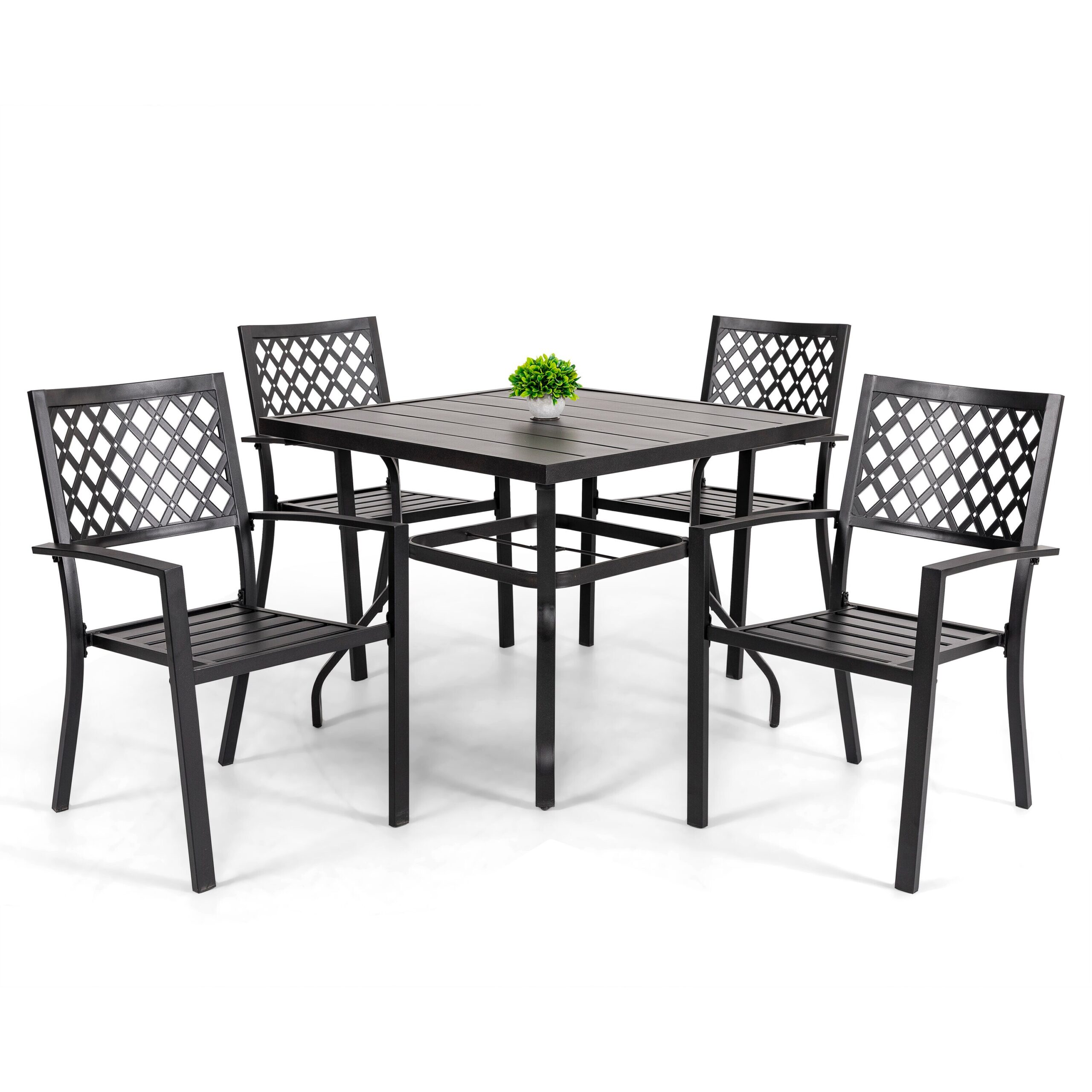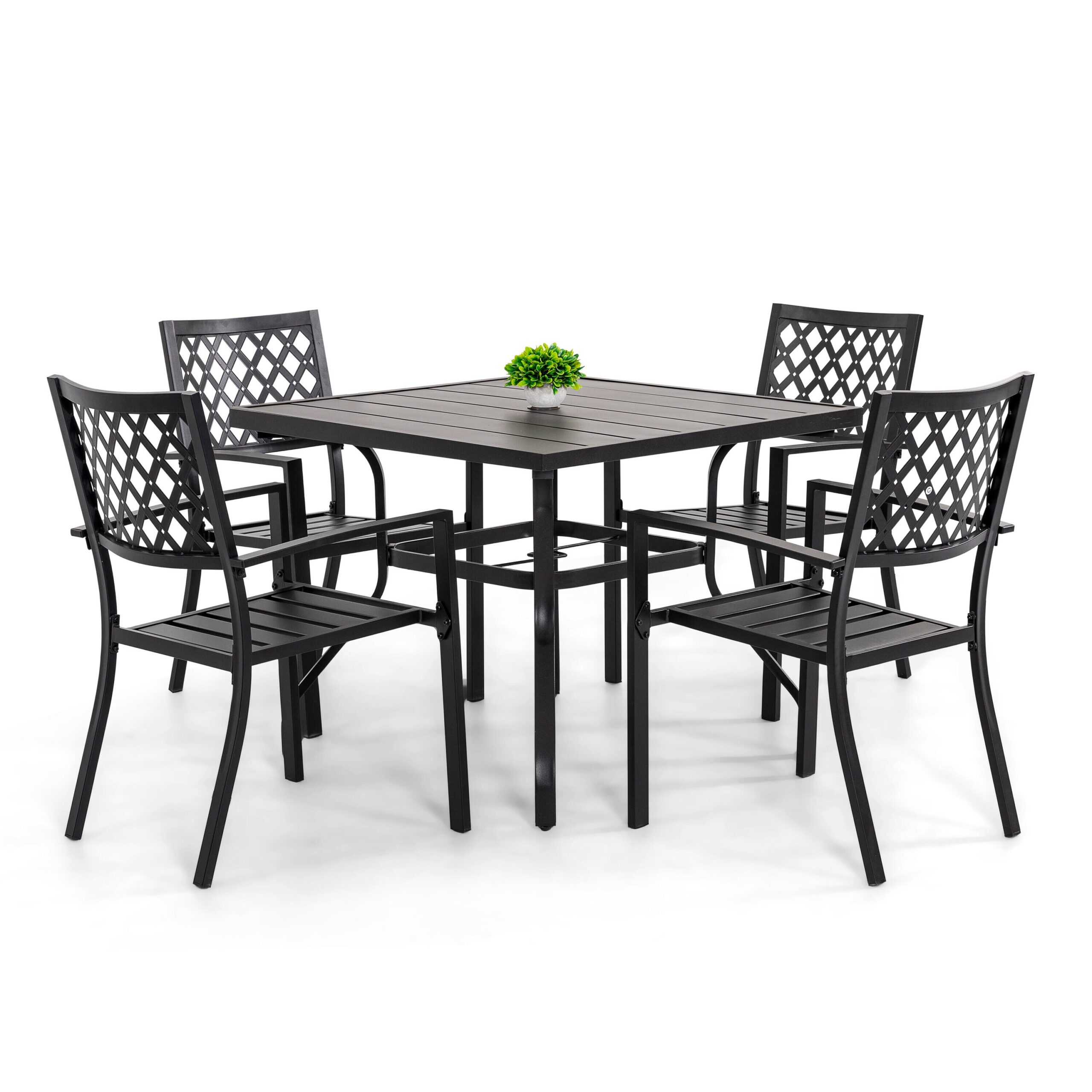 Nuu Garden Black Iron 5-Piece Patio Dining Set with Square Table and Stackable Chairs