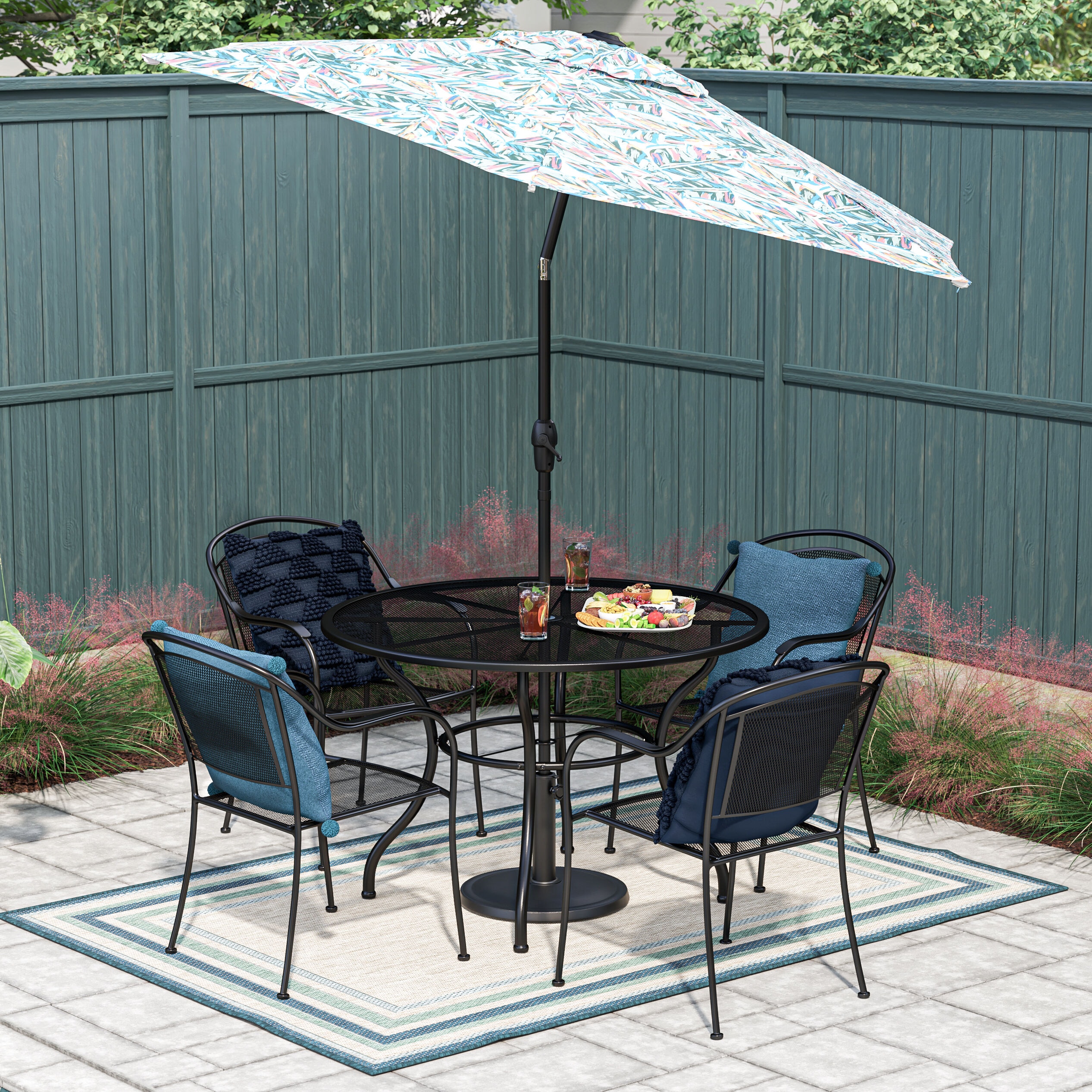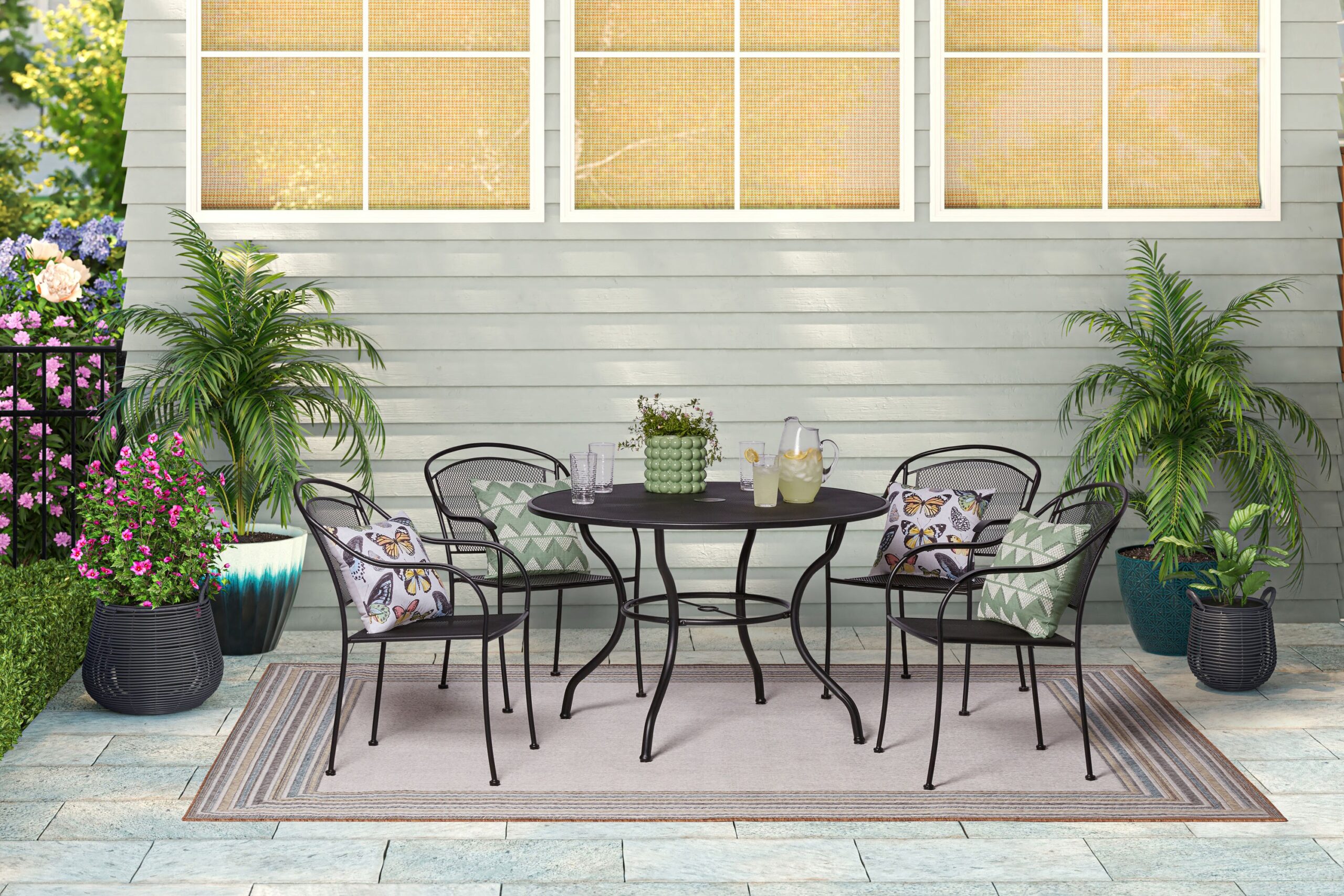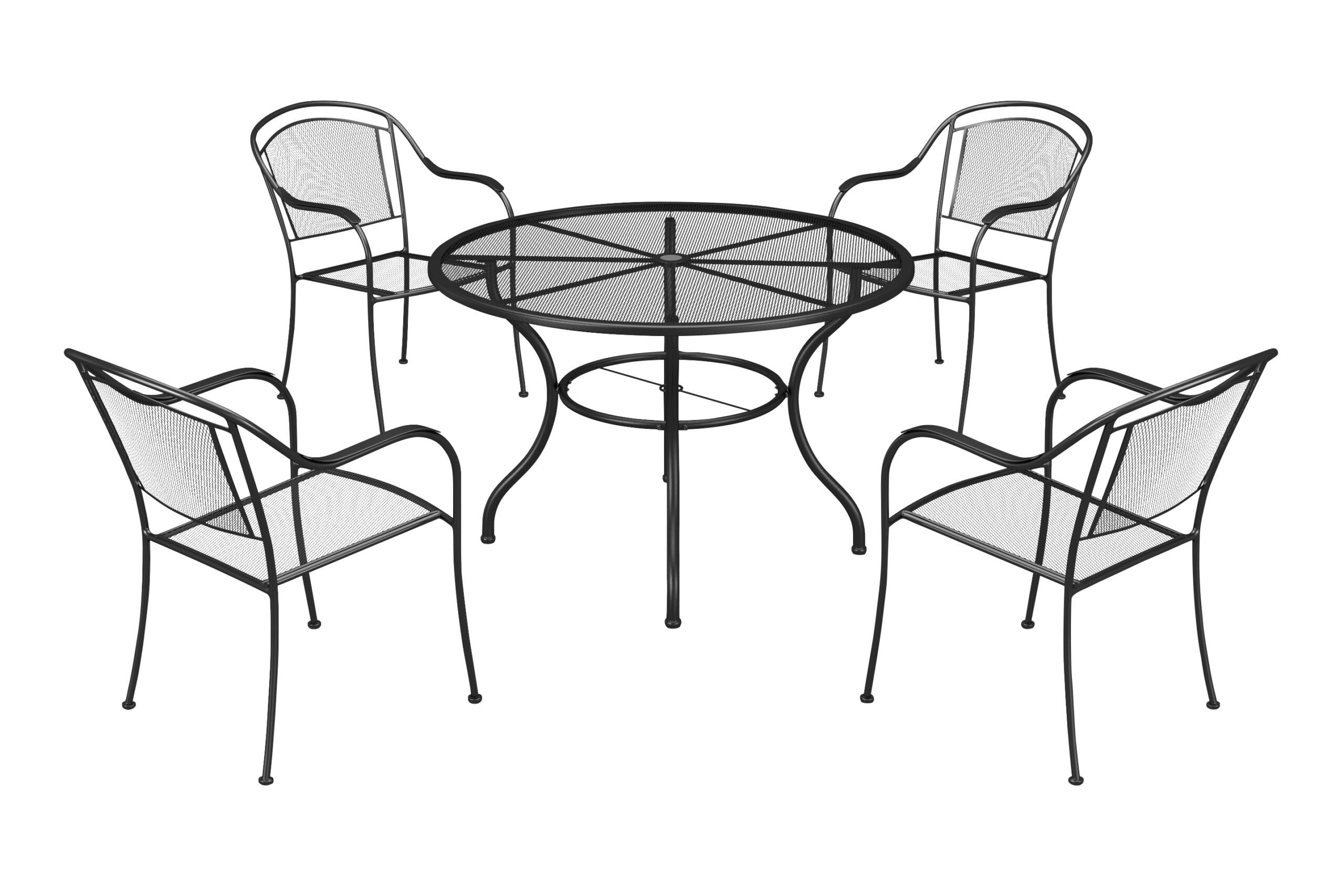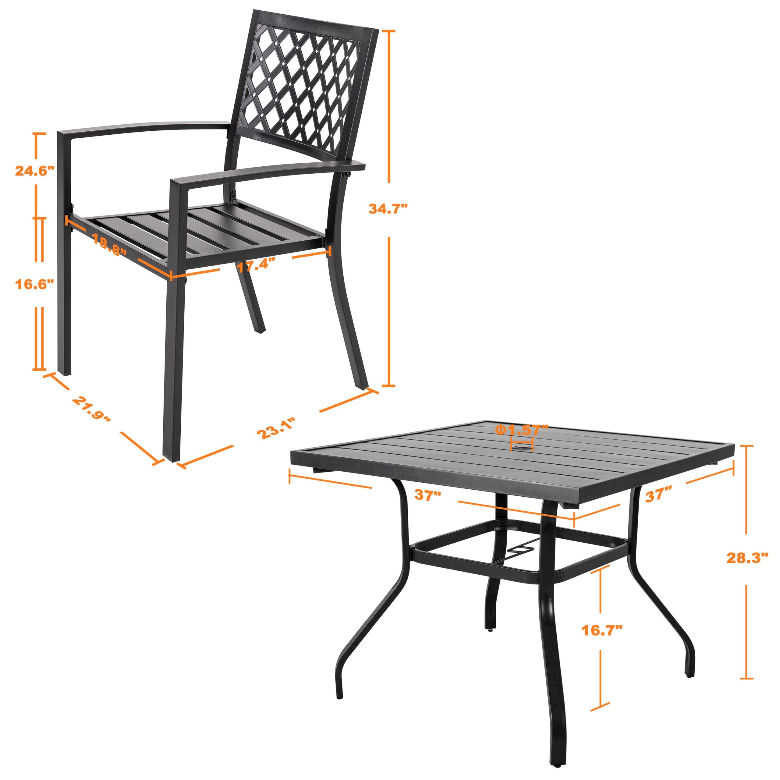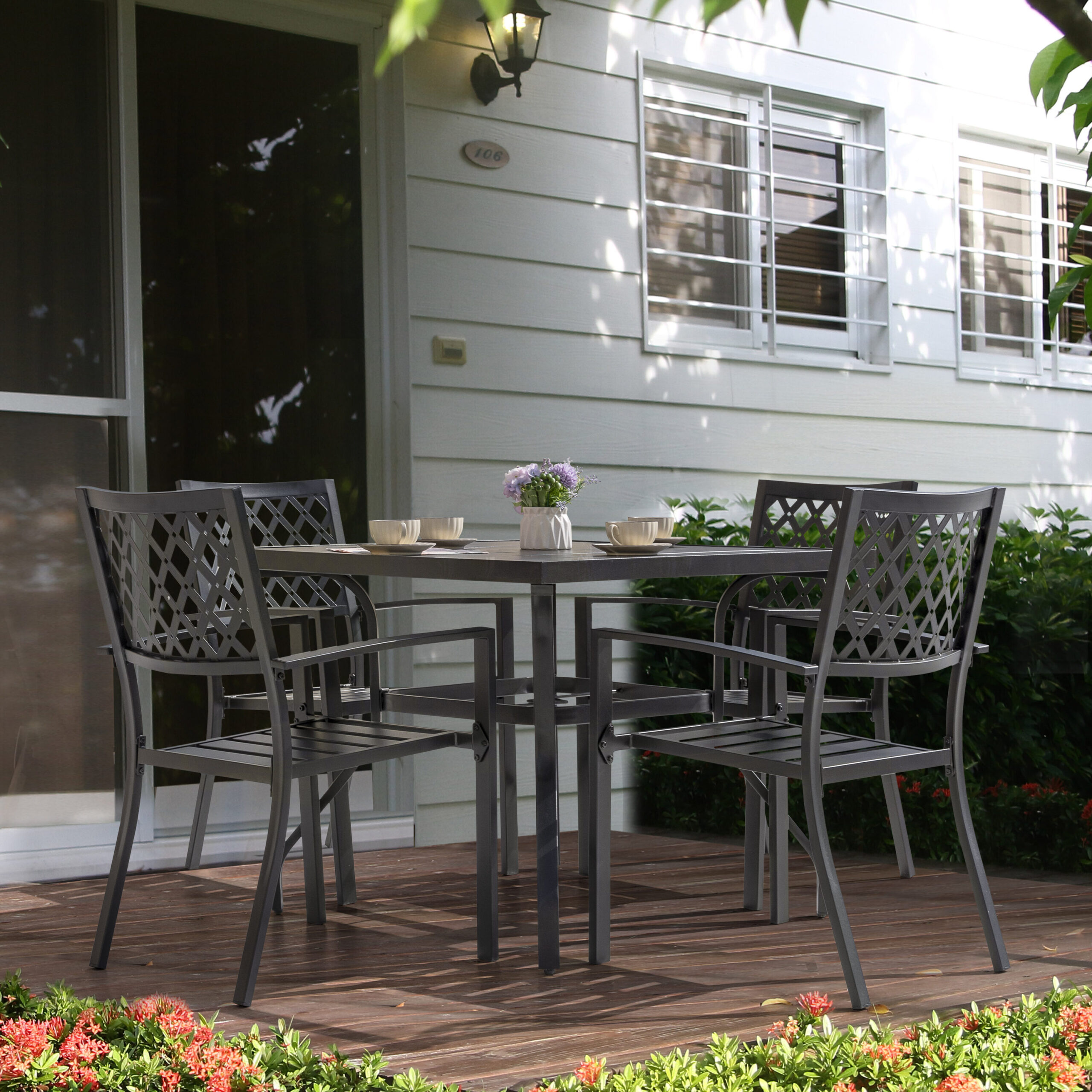 Nuu Garden Black Iron 5-Piece Patio Dining Set with Square Table and Stackable Chairs