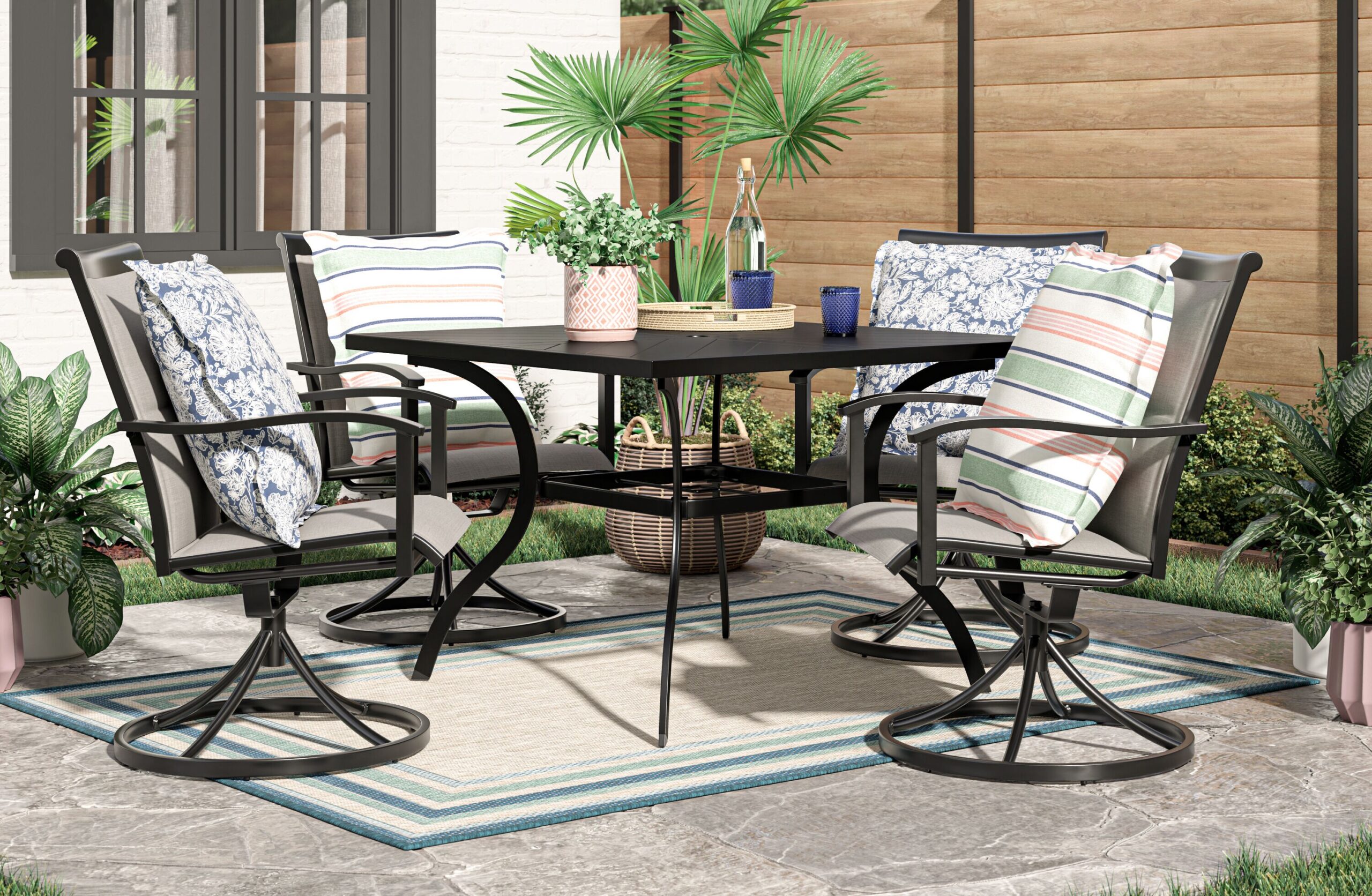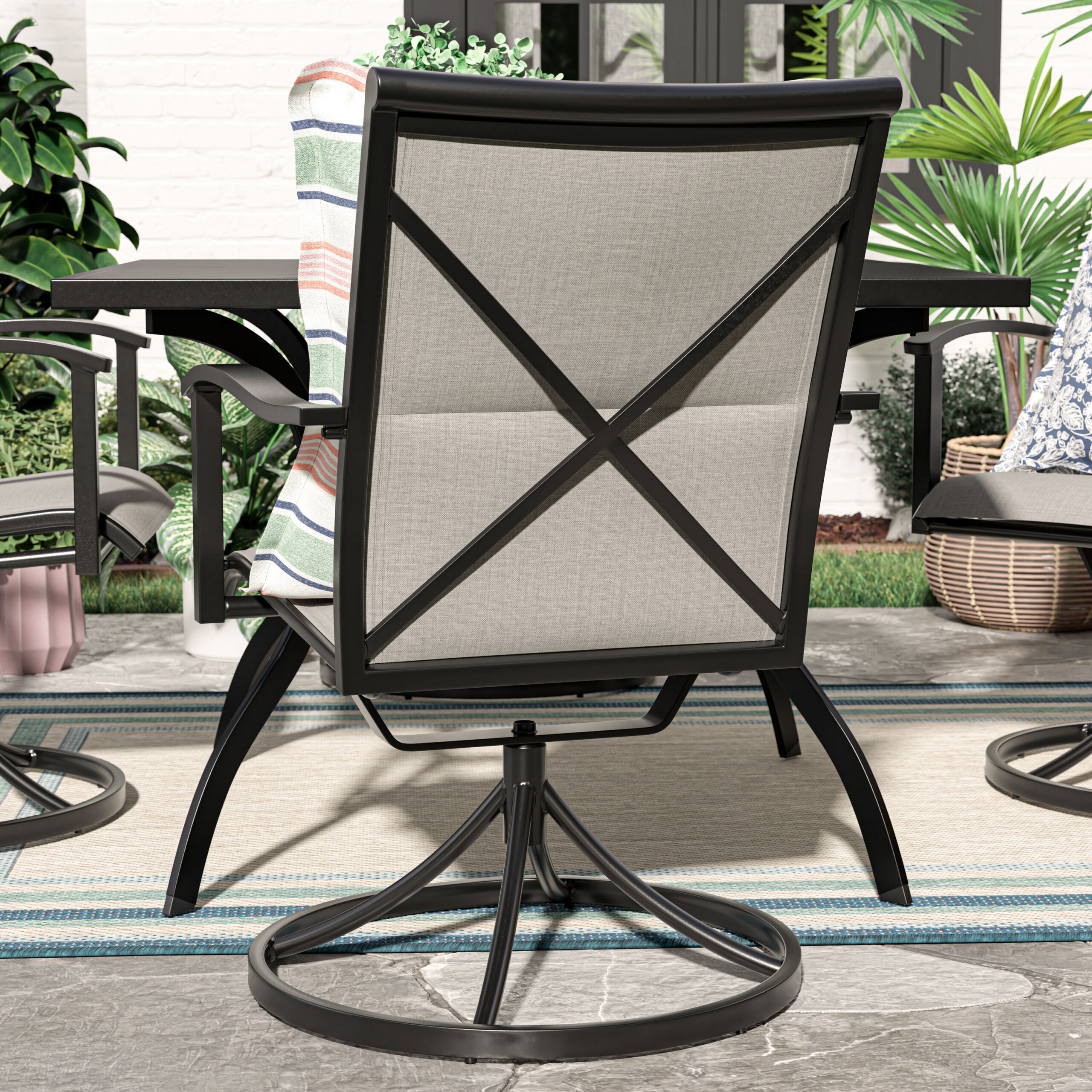 Style Selections Melrose Set of 2 Wicker Black Steel Frame Swivel Dining Chair with Gray Sling Seat