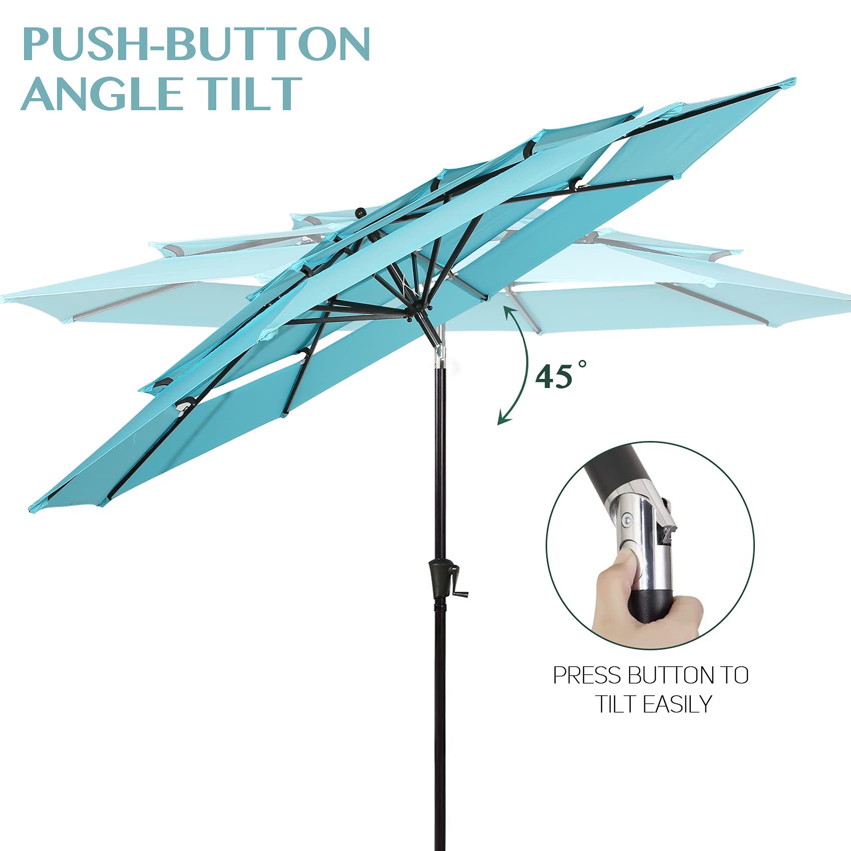 10 Ft 3 Tier Outdoor Umbrella Patio Table Umbrella with Aluminum Pole and 8 Sturdy Ribs