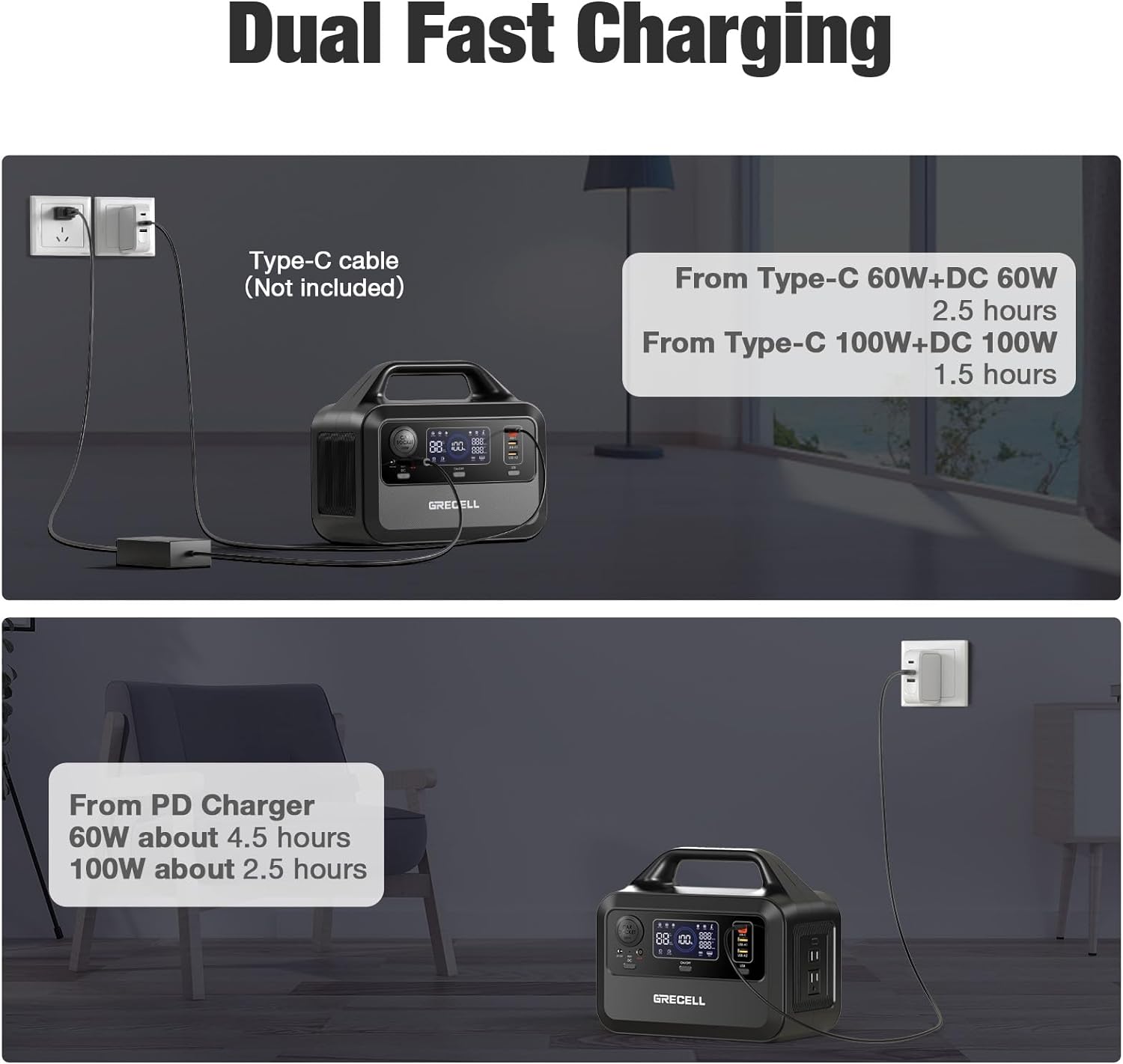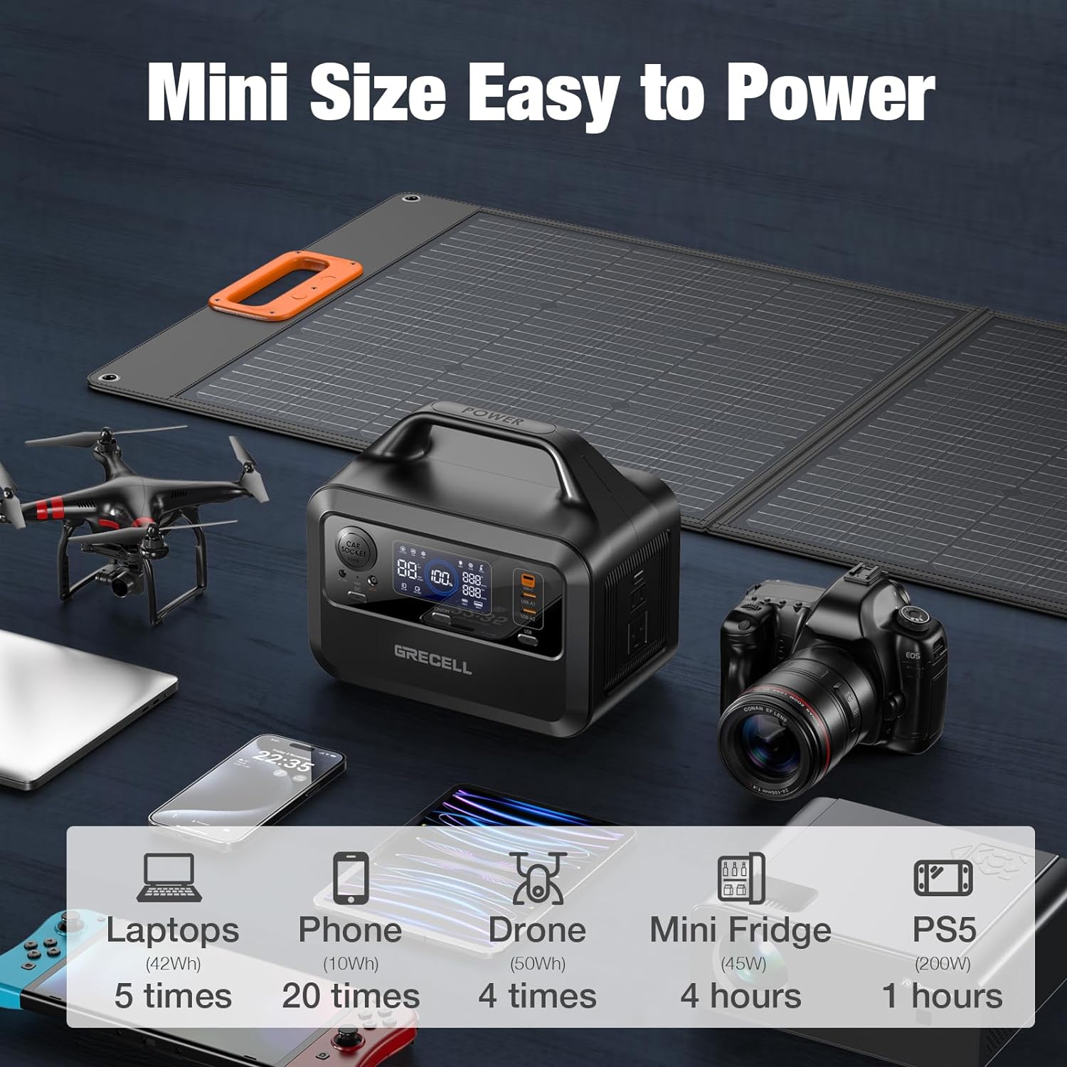 GRECELL Portable Power Station 300W, 230Wh LiFePO4 (LFP) Battery