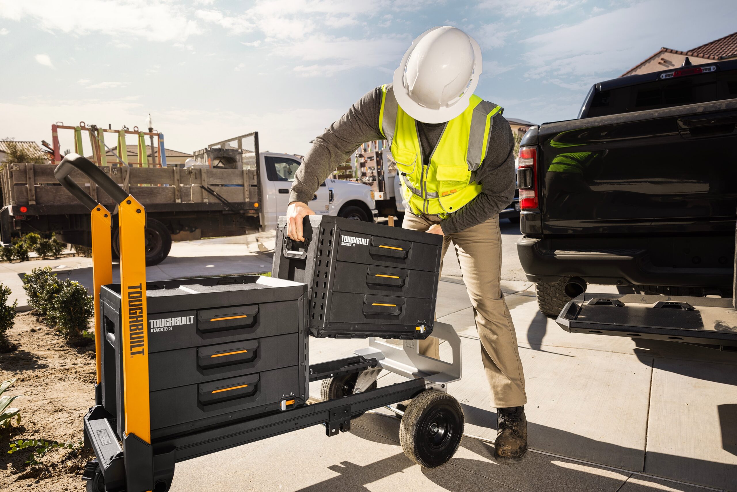 TOUGHBUILT STACKTECH XL 21-in Ball-bearing 3-Drawer Black Plastic Tool Box