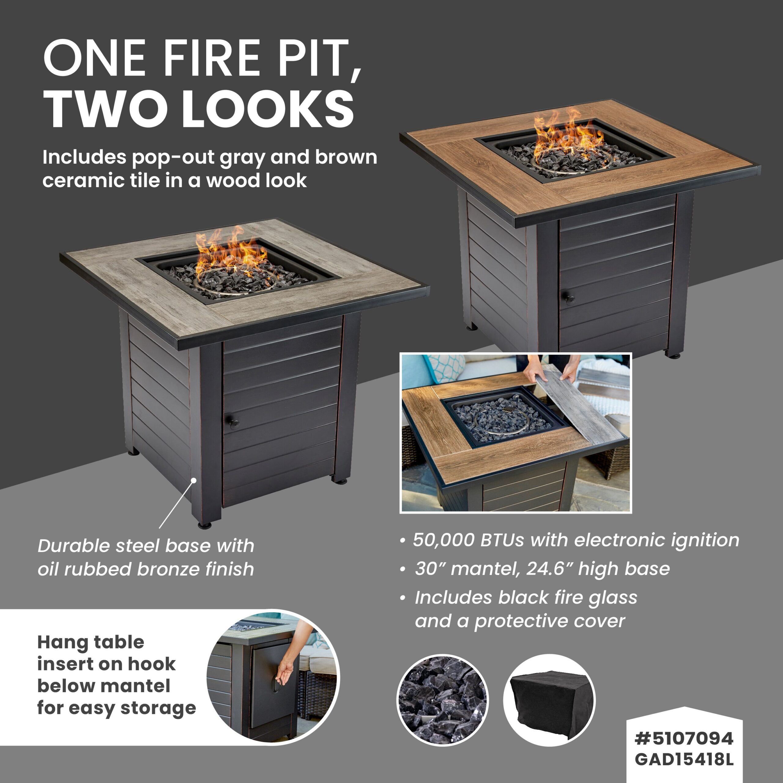 Style Selections 30-in W 50000-BTU Black/Brown/Gray Steel Propane Gas Fire Pit Table